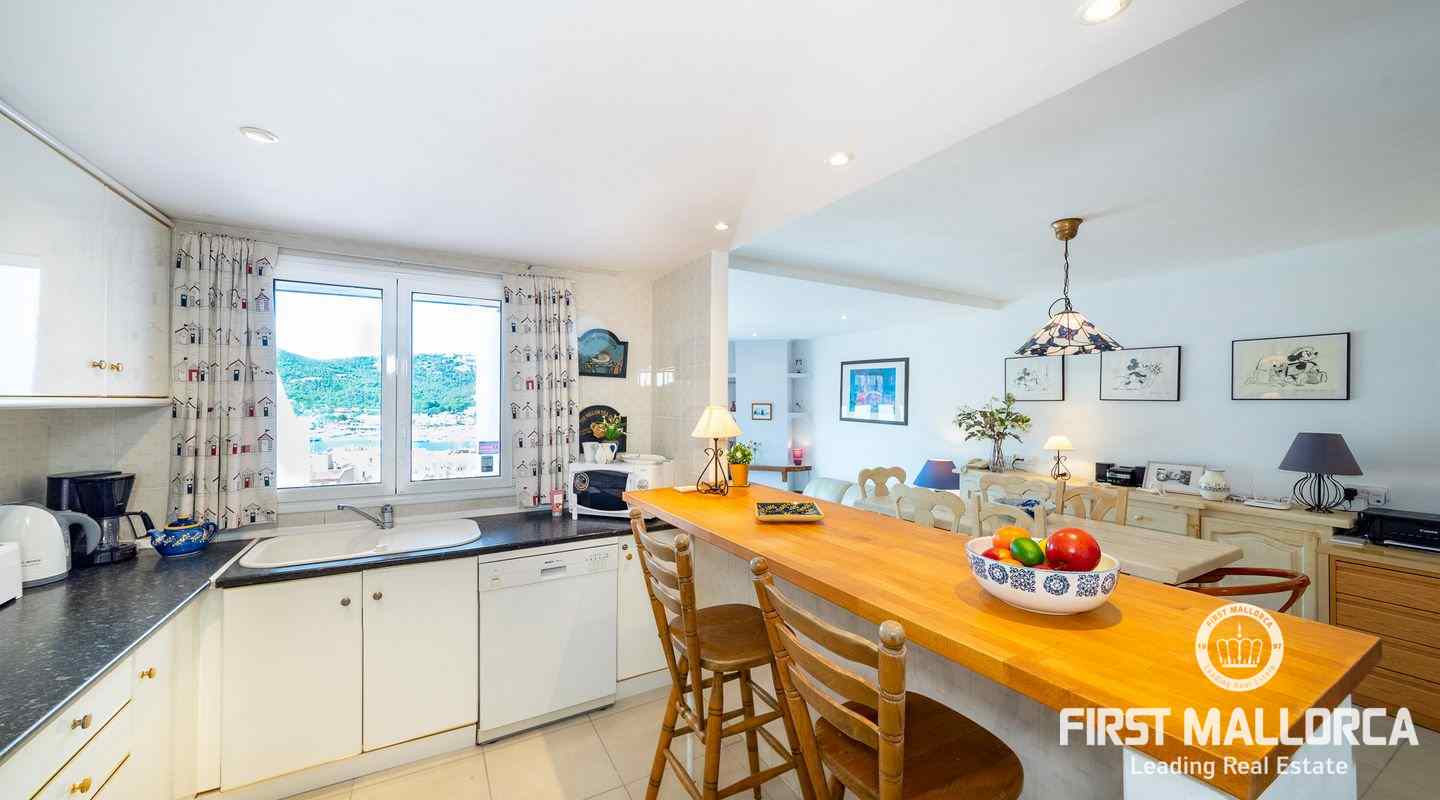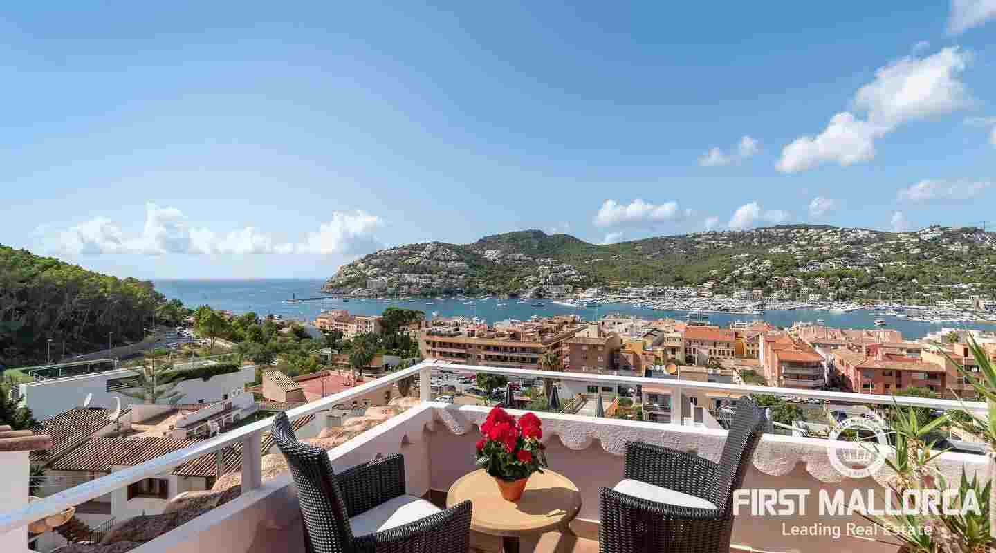 Esta luminosa propiedad de 4 dormitorios se beneficia de impresionantes vistas al Puerto de Andratx. Una fantástica oportunidad de inversión para alguien que esté buscando una casa de vacaciones o una residencia permanente en el puerto más codiciado del suroeste de Mallorca. Amplia terraza que ofrece las mejores vistas de la puesta de sol debido a su posición elevada, a sólo 2 minutos a pie del paseo portuario con todos los restaurantes, tiendas y galerías. El Puerto de Andratx está a sólo 25 minutos en coche de la histórica capital balear, Palma de Mallorca.