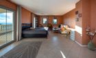 Una escalera de madera conduce a la planta superior, que incluye dos dormitorios adicionales y un baño. Un amplio y luminoso salón da acceso a una gran terraza con vistas al mar – esta zona también puede utilizarse como un apartamento independiente, ideal para invitados o estancias prolongadas.