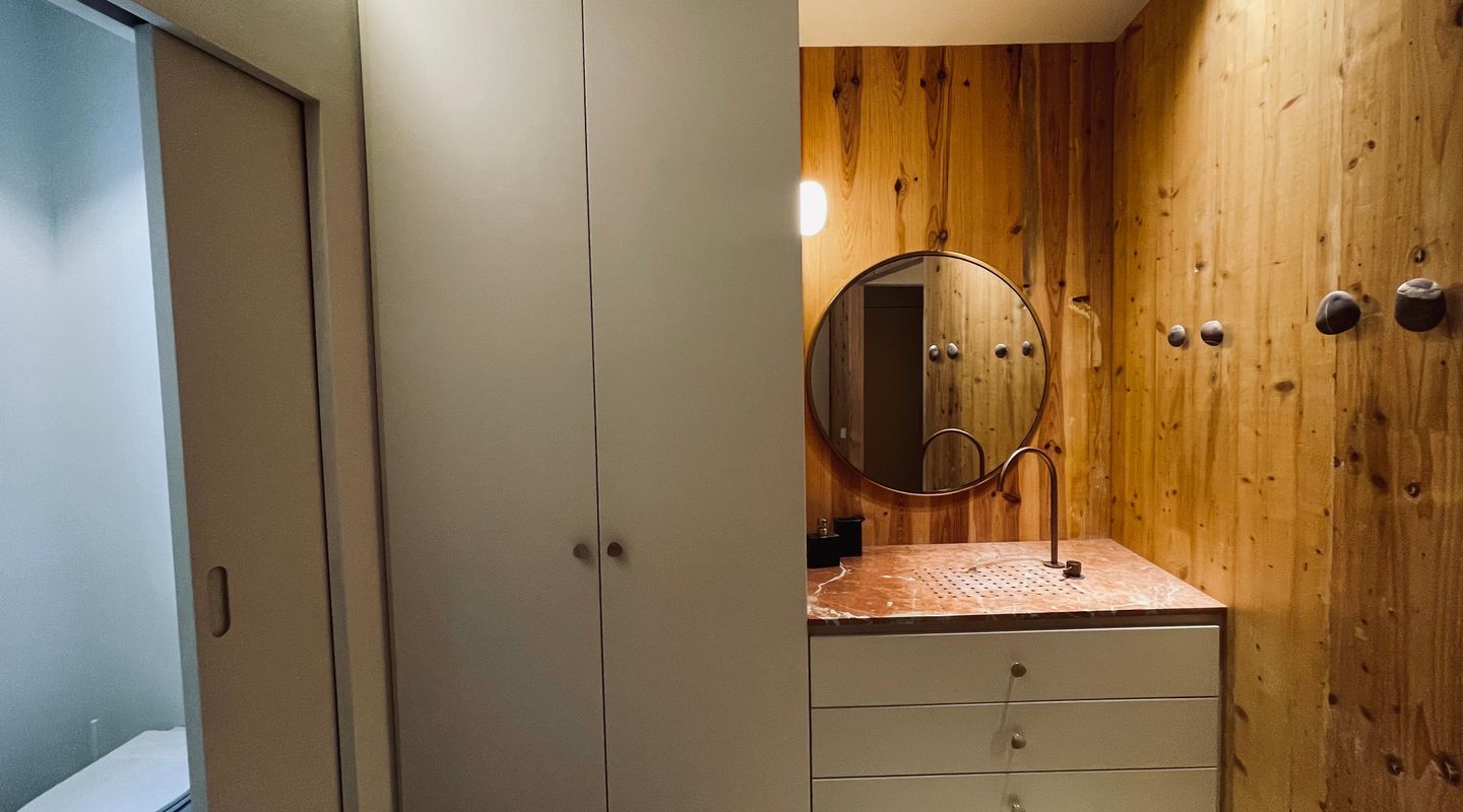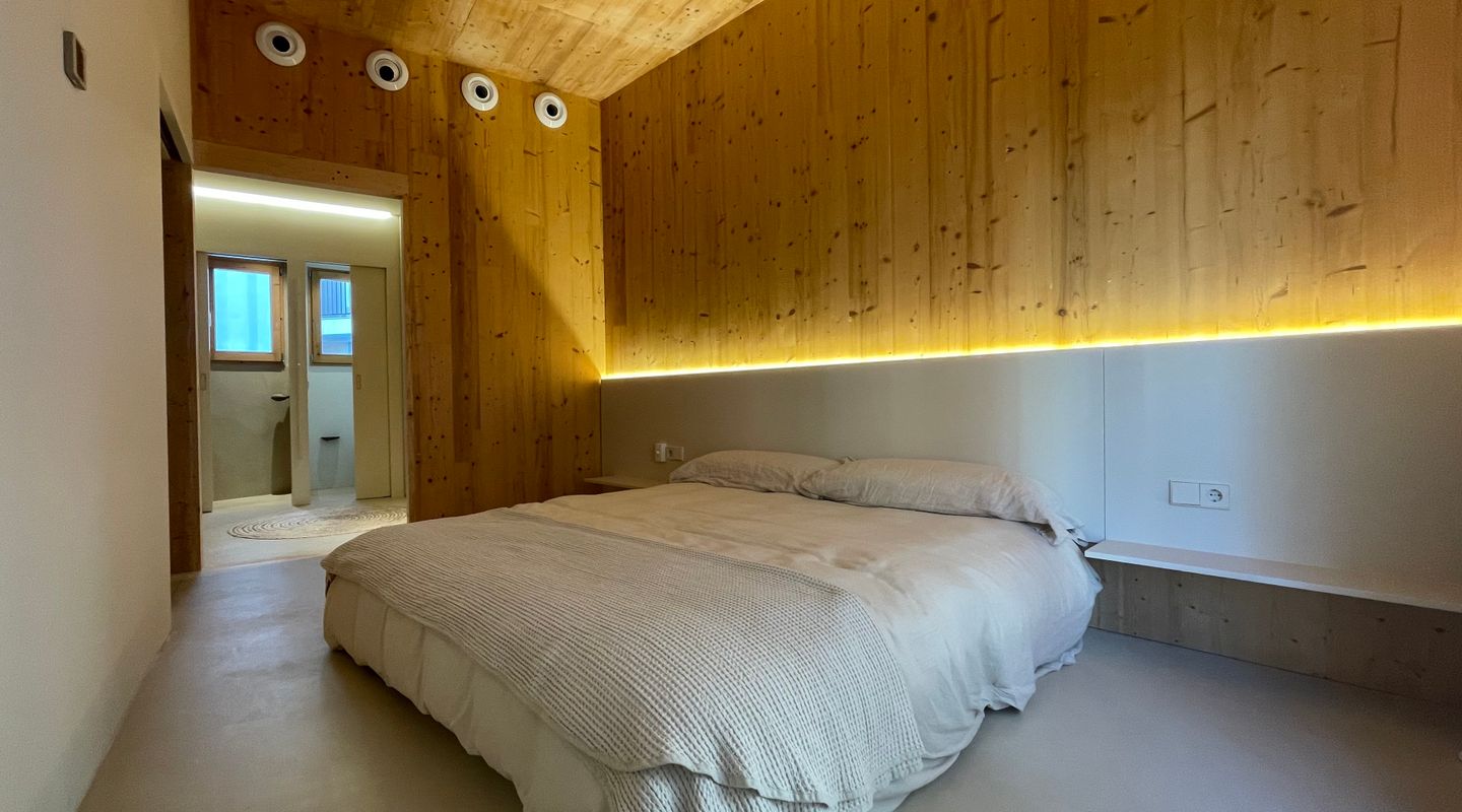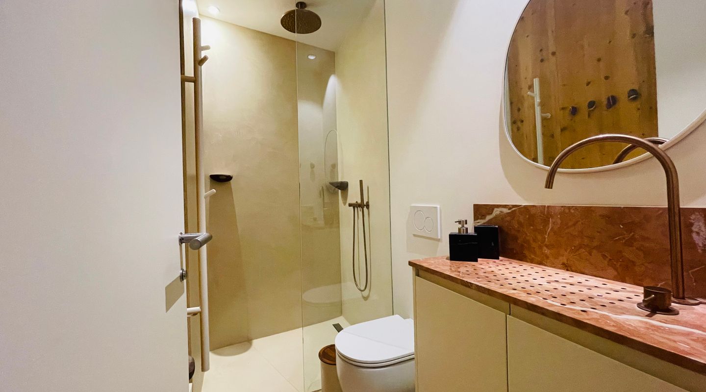 La planta principal está dedicada a la suite principal, con un amplio dormitorio, vestidor a medida y un baño en suite inteligentemente diseñado que aprovecha el espacio de forma impecable. En el nivel superior se encuentra un segundo dormitorio doble y un baño para invitados, junto a una estancia flexible que puede utilizarse como dormitorio adicional, oficina privada o vestidor complementario. Una lavandería independiente completa esta planta para mayor comodidad.