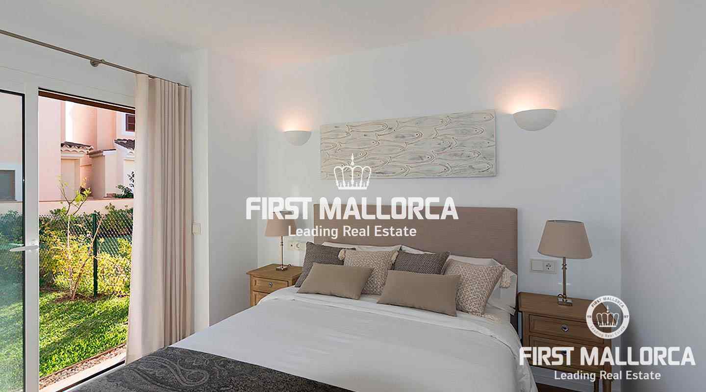 Casa adosada moderna en un nuevo complejo comunitario adyacente al campo de golf de Santa Ponsa con jardín privado y una gran piscina comunitaria con zona de descanso.