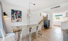 Situada en una parcela de 382 m², con una superficie construida de aproximadamente 187 m², la propiedad se distribuye en dos niveles. La planta baja cuenta con un diseño diáfano y luminoso que incluye una cocina moderna totalmente equipada, comedor, aseo de invitados y un amplio salón con acceso directo al jardín privado y vistas al campo de golf. La suite principal también se encuentra en este nivel, ofreciendo comodidad y fácil acceso a las zonas exteriores. En la planta superior hay dos dormitorios adicionales en suite, cada uno con su propia terraza con vistas al campo.