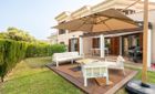 El área exterior incluye un jardín privado diseñado para disfrutar durante todo el año, complementado con acceso a una gran piscina comunitaria con vestuarios, duchas y zonas para tomar el sol, rodeada de exuberantes jardines y vistas al golf.