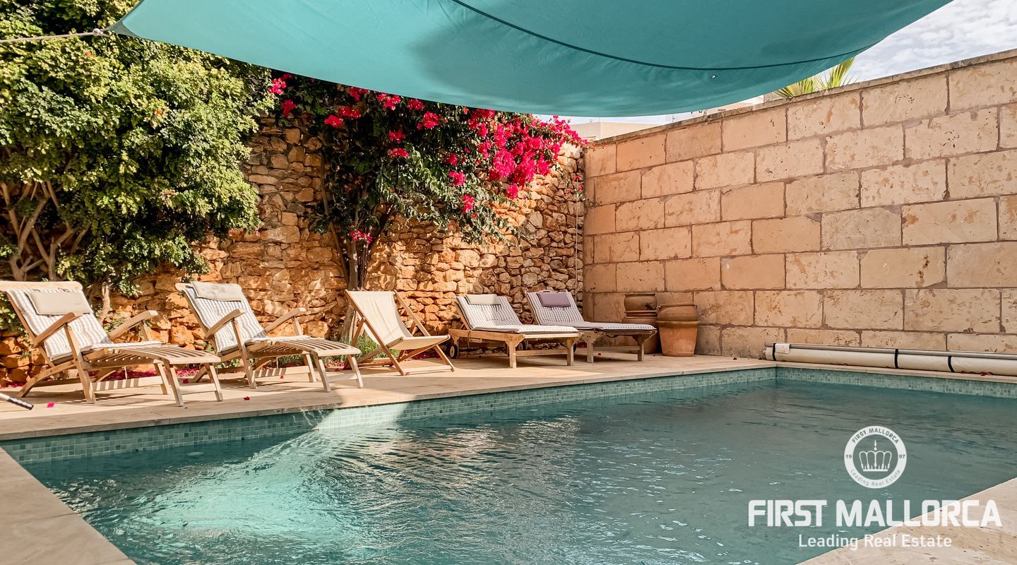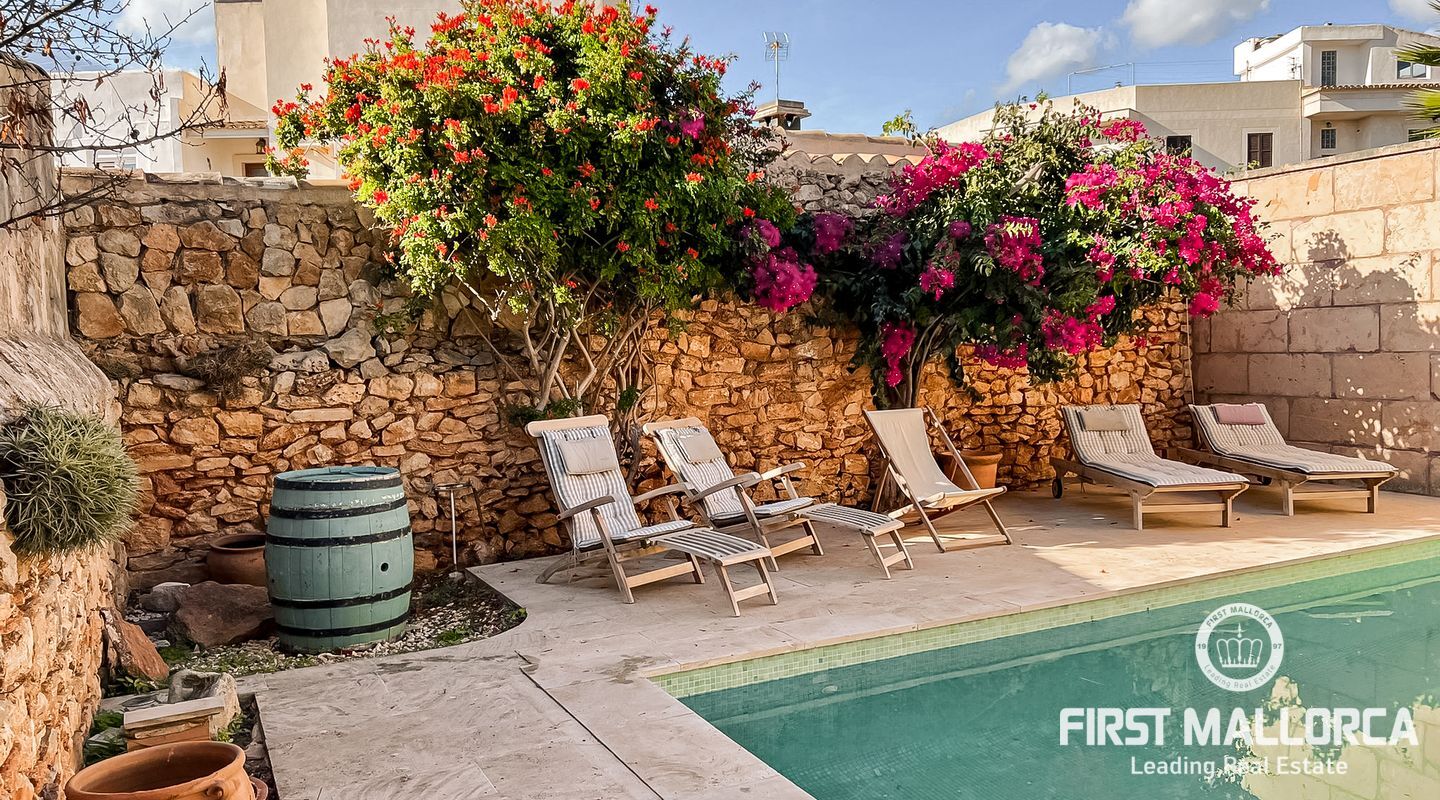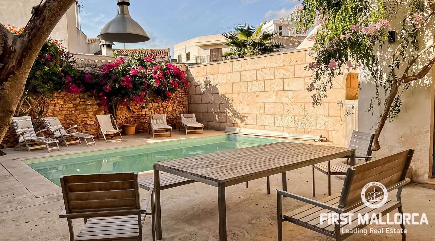 Esta elegante casa de pueblo con piscina y licencia de alquiler vacacional válida se encuentra en el corazón del encantador centro de Santanyí, en el soleado sureste de Mallorca y a sólo cinco minutos a pie de la popular plaza del mercado - una rara oportunidad de combinar un estilo de vida mediterráneo con potencial de inversión.