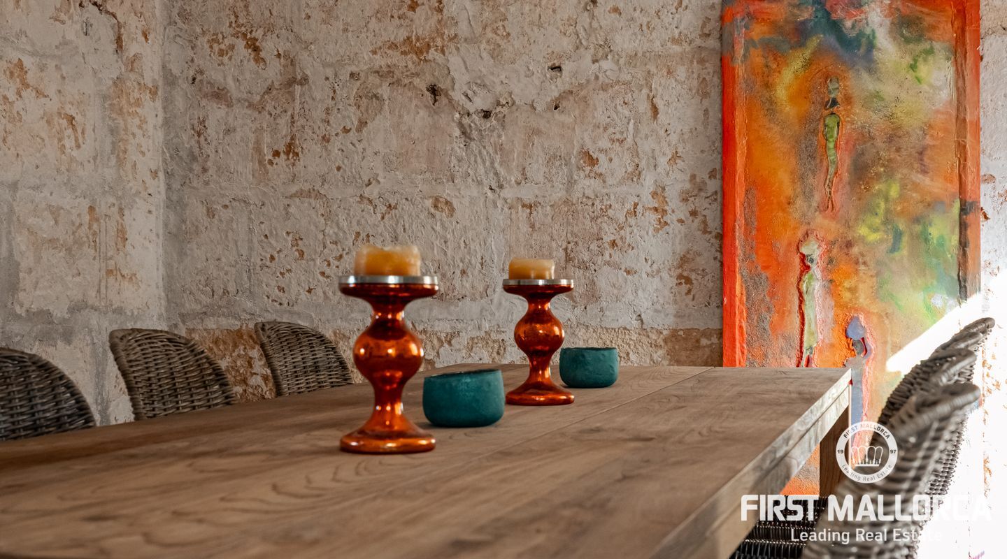 Distribuida en aprox. 190 m² de superficie habitable en un solar de aprox. 249 m², la casa combina la construcción tradicional con un concepto de vida abierto y moderno. Especialmente características son las paredes de piedra natural parcialmente expuestas, que dan a la casa su auténtico encanto mallorquín y crean una acogedora y cálida sensación de vivir.