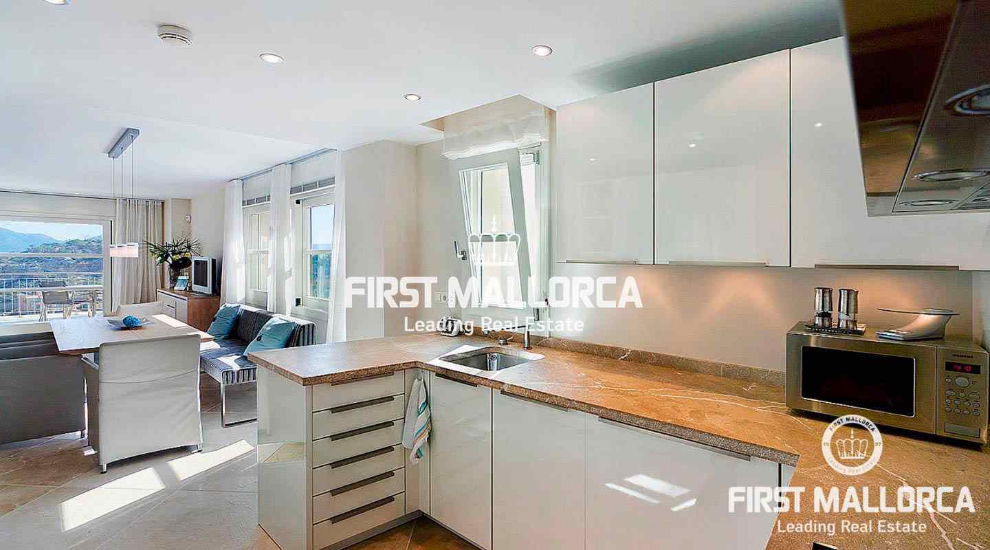 Dúplex con interiores de diseño, orientación sur e inmejorables vistas sobre el puerto y el mar abierto situado en complejo residencial exclusivo de 20 unidades con 2 piscinas comunitarias. El inmueble dispone de salón-comedor, cocina diáfana de Birgit Müller completamente equipada, 2 dormitorios con baños en-suite. Adicionalmente cuenta con aseo y dos terrazas.