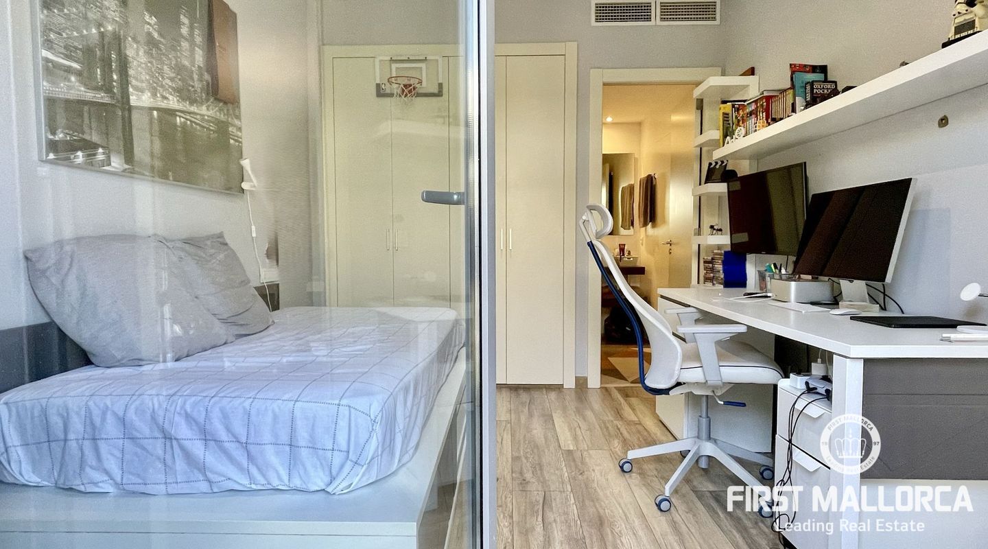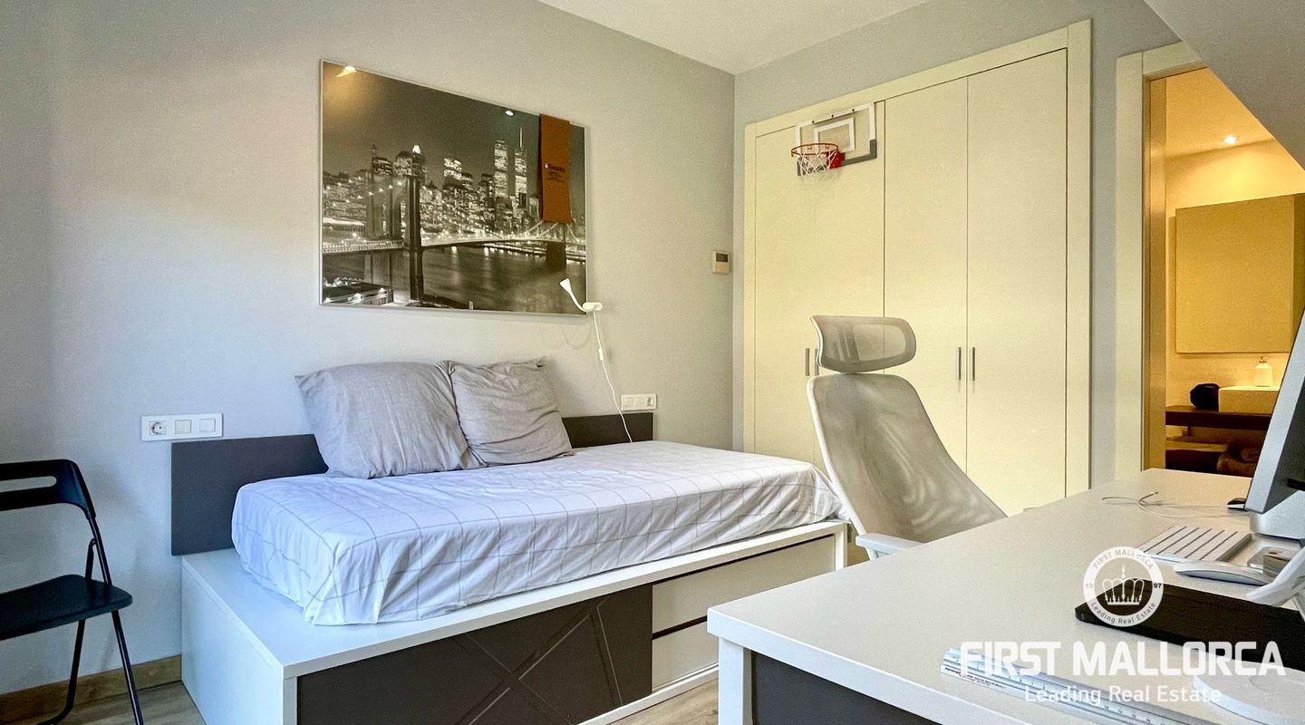 Duplex de 238m2 con una superficie habitable de aprox. 176 m2 situado en un exclusivo complejo residencial del campo de golf Son Quint, en la zona de Son Vida y a pocos minutos de Palma Ciudad. El complejo cuenta con 2 piscinas comunitarias y un cuidado jardín.. En la planta baja hay un amplio salón con acceso a una gran terraza, una cocina moderna totalmente equipada con zona de comedor y un dormitorio con baño en suite. En la planta superior hay 1 dormitorio con baño en suite, y otros dos dormitorios que comparten un baño. El dúplex incluye dos plazas de aparcamiento subterráneo y un trastero privado.