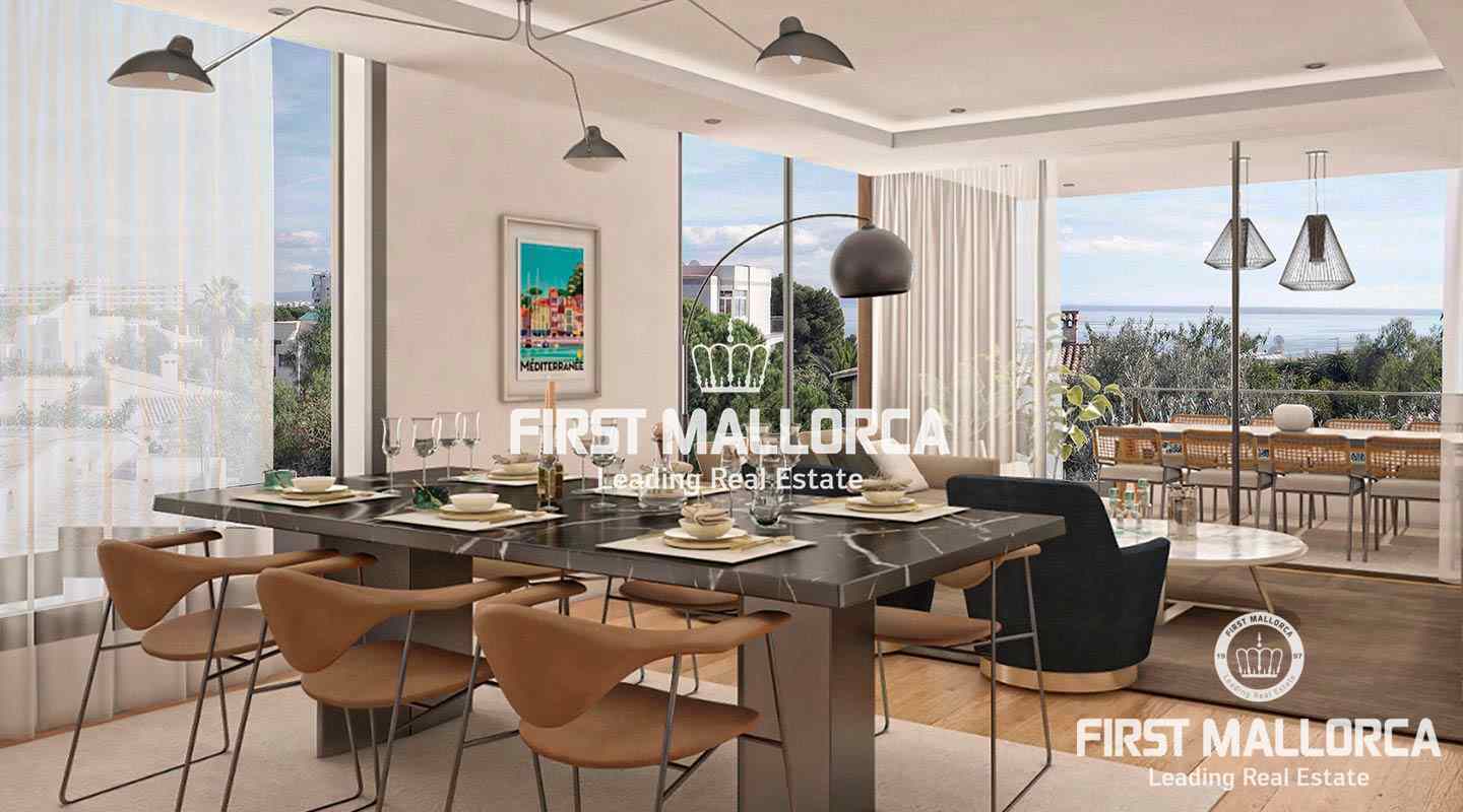 Ubicado en el cotizado barrio de San Agustín, a solo 10 minutos del centro de Palma de Mallorca, está construido este exclusivo apartamento dúplex con materiales de primerísima calidad.