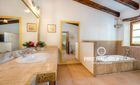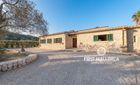 Esta rústica casa de campo con fachada de piedra natural se encuentra en Alcúdia, en el norte de Mallorca y ofrece fabulosas vistas a las montañas y el paisaje.