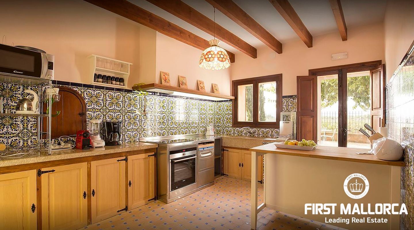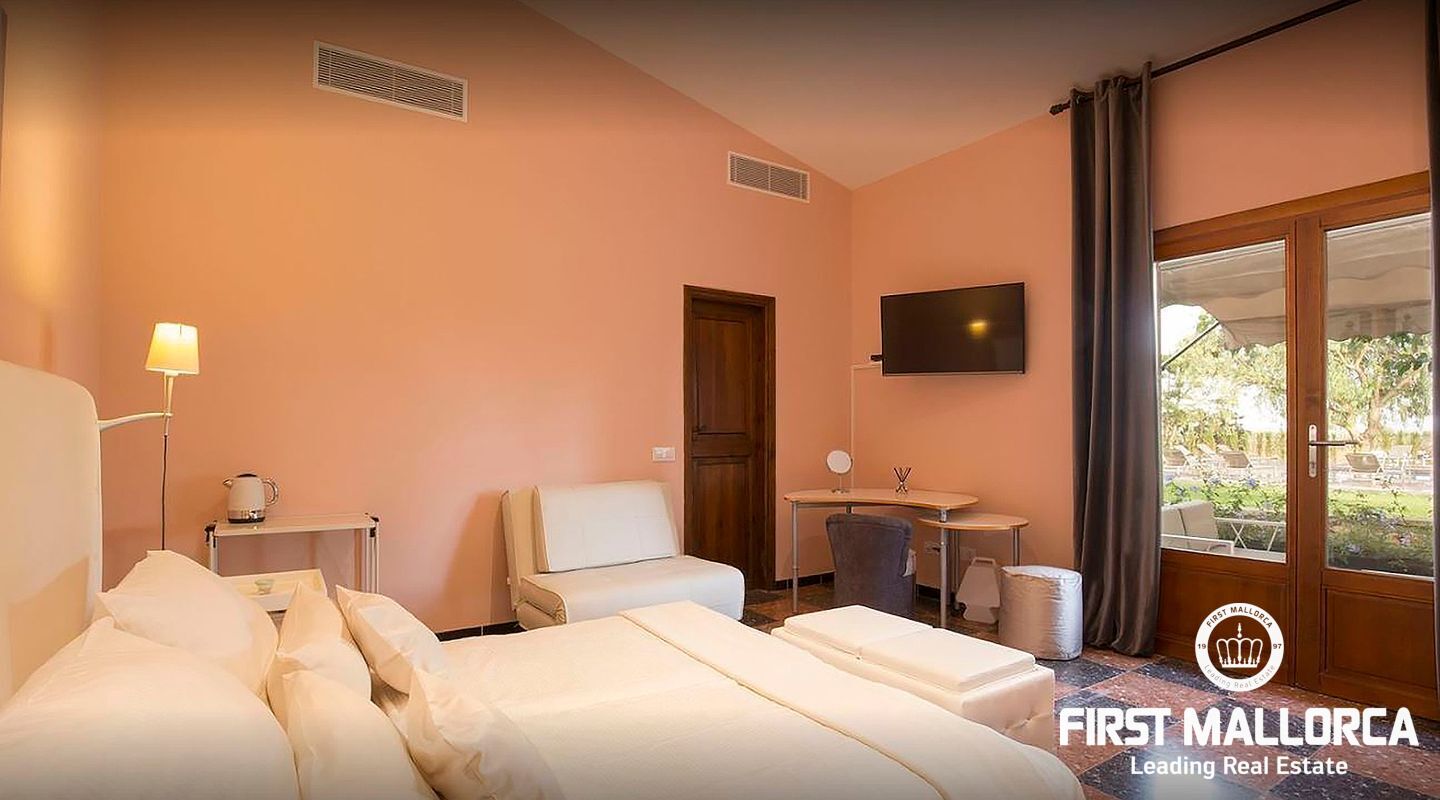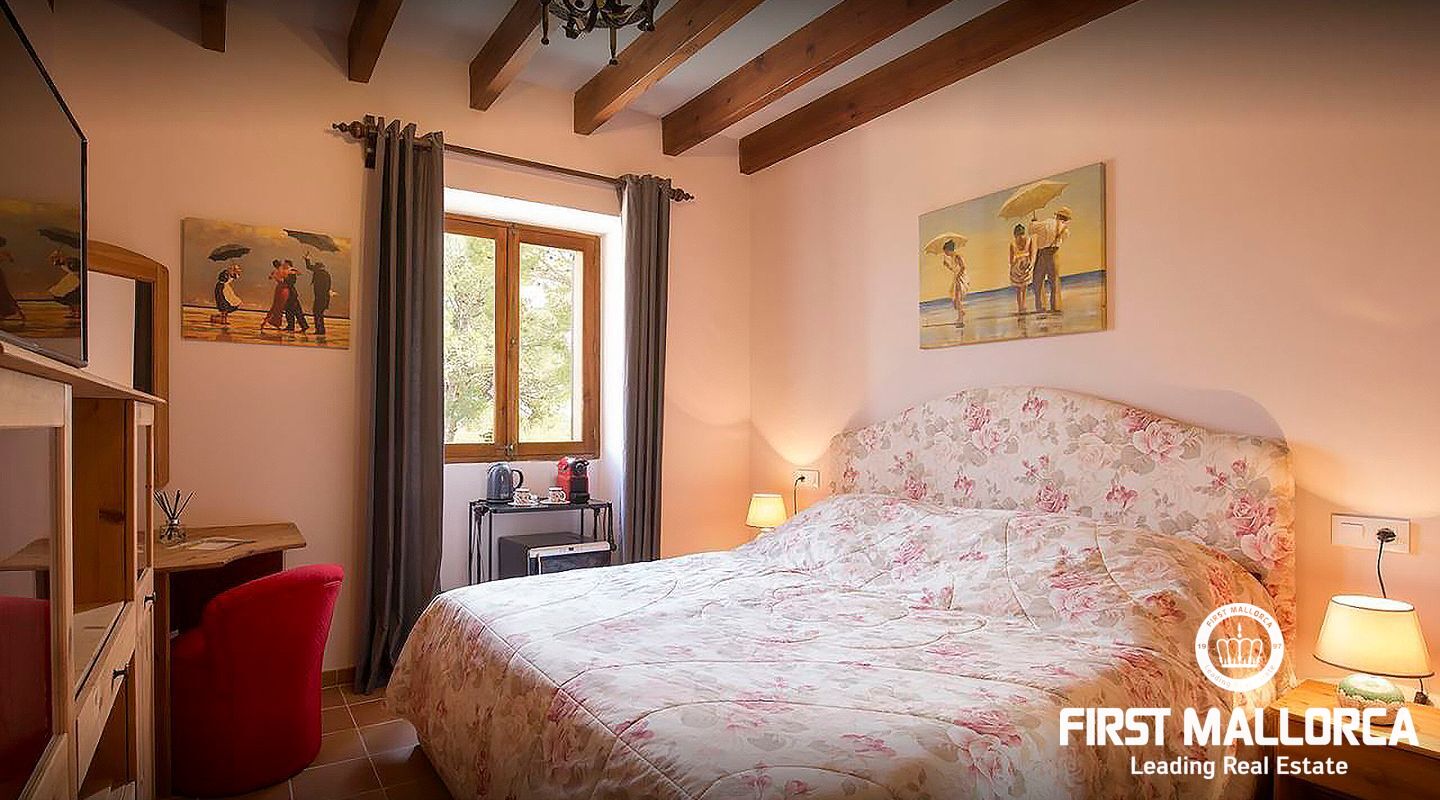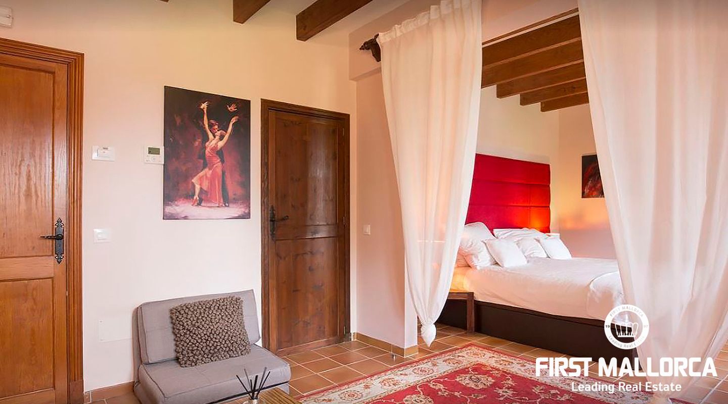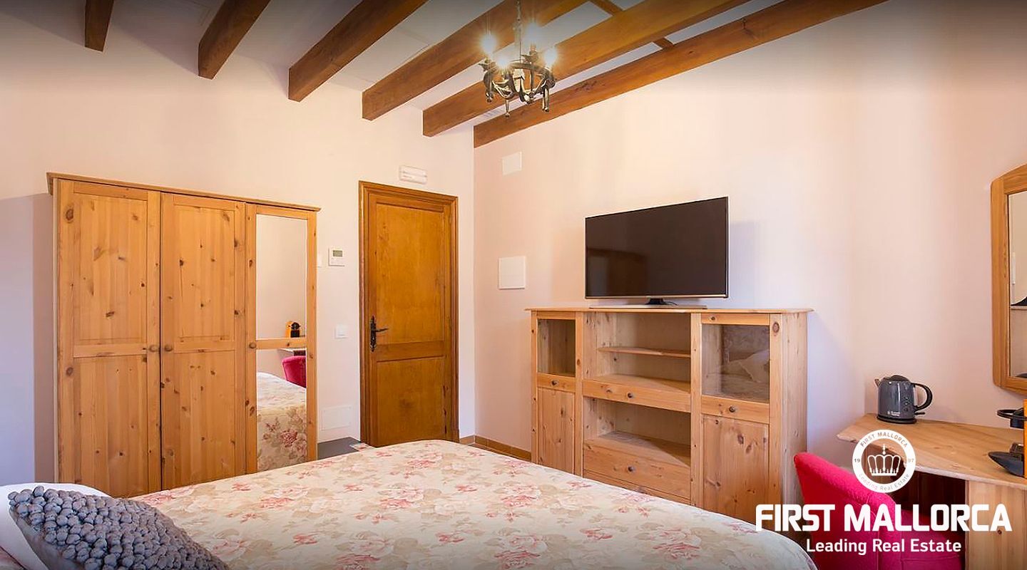 Esta finca renovada del siglo XIX se encuentra en medio de la famosa zona vinícola de Binissalem. Desde aquí se puede disfrutar de una fantástica vista de aproximadamente 14 hectáreas de viñedo con diversas variedades de uva como Pinot Noir, Sauvignon Blanc, etc., que también pertenecen a la propiedad. La espaciosa propiedad ofrece absoluta privacidad y tranquilidad. La superficie habitable de esta elegante finca se distribuye en dos plantas. Tiene un total de 5 dormitorios y 5 baños. Todos los dormitorios de la planta baja tienen acceso a la terraza y al jardín contiguos. Esto ofrece pura relajación y, gracias a la gran piscina exterior, un excelente refresco en los días calurosos.
