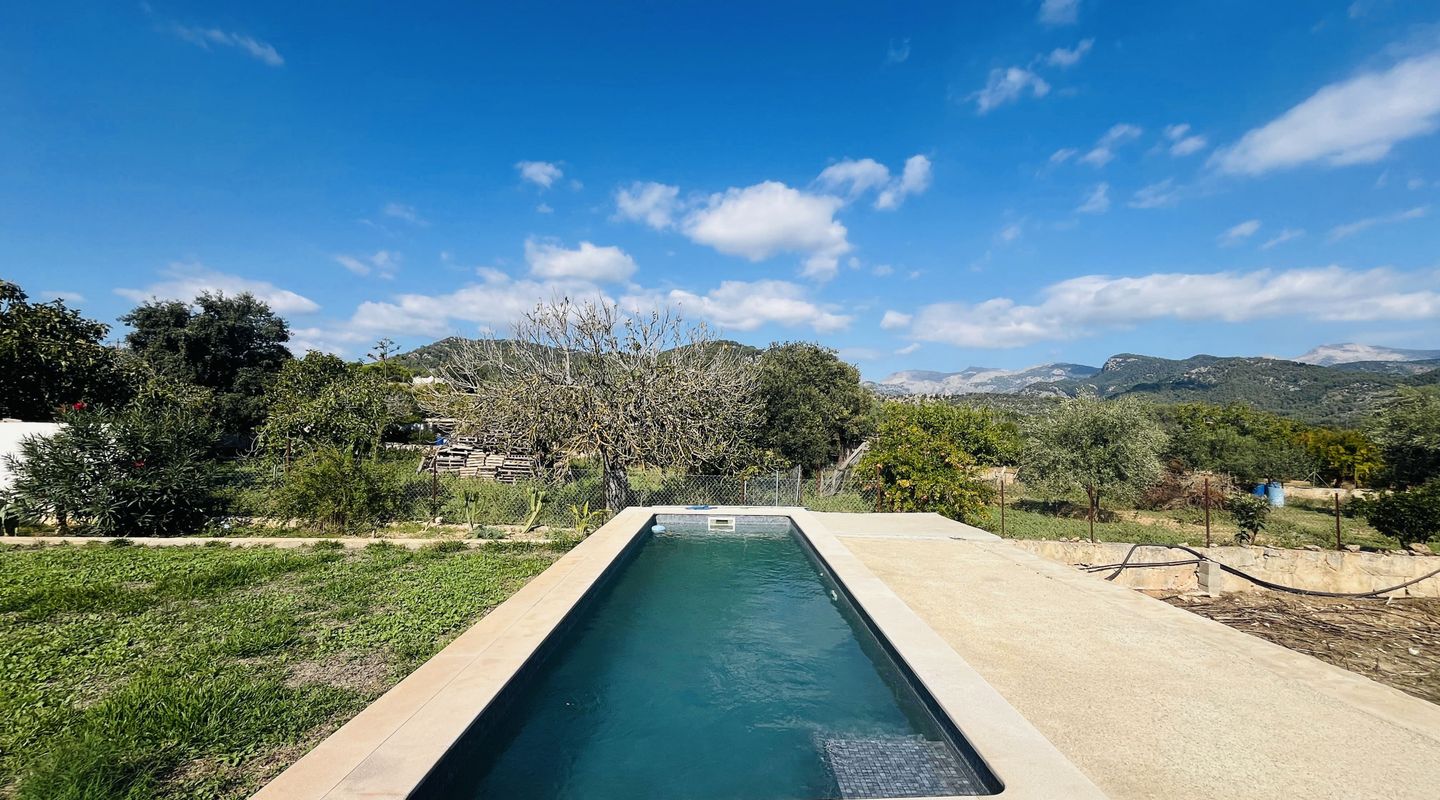 Descubre esta encantadora casa de campo que ofrece un entorno de libertad y privacidad con impresionantes vistas despejadas a la Sierra de Tramuntana, declarada Patrimonio de la Humanidad por la UNESCO. Situada en las afueras del pintoresco pueblo de Binissalem, famoso por su tradición vinícola y su ambiente rural mallorquín auténtico, la propiedad combina comodidad moderna con el encanto del campo.