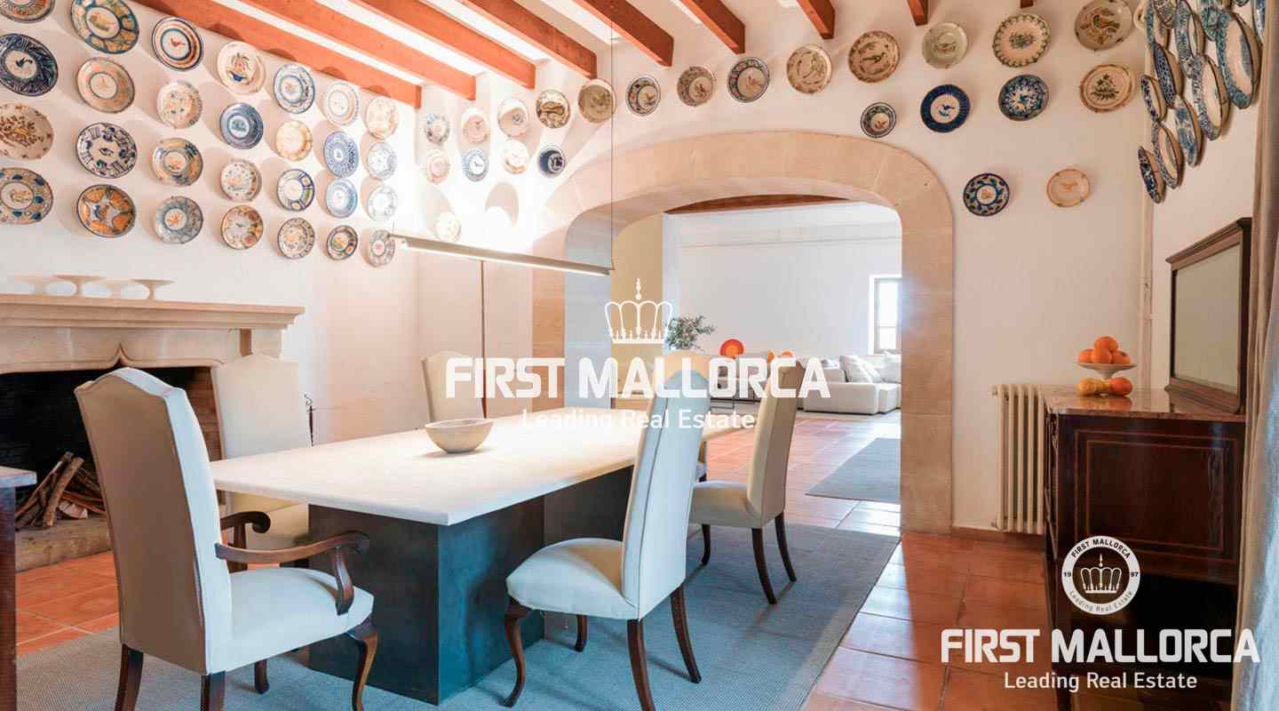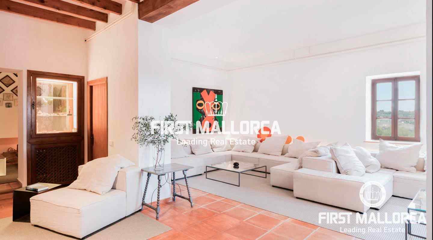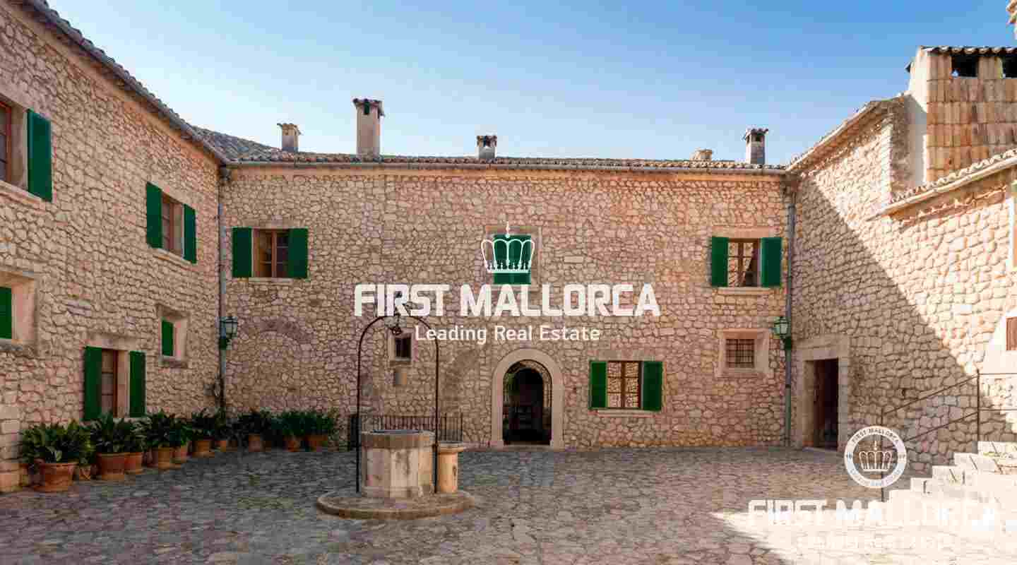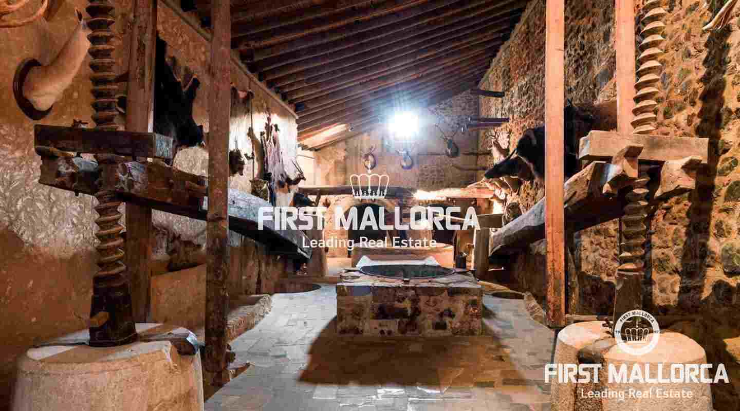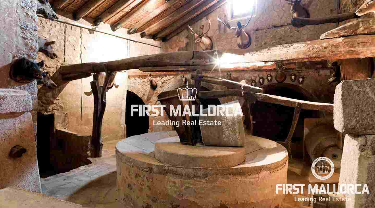 Finca de 90.000m2 con casa histórica con patio interior de 8 habitaciones dividida en 2 plantas. En la planta baja encontramos: el Hall o recibidor, un doble salón con 2 chimeneas, un comedor con chimenea, cocina con office completamente equipada, aseo de cortesía y habitación triple compuesta de 1 cama doble y una cama individual con sala de estar y baño en suite. En la planta Primera tenemos un dormitorio con 2 camas individuales, una sala de juegos con un sofá cama, un dormitorio con dos camas y baño en suite, un dormitorio con cama doble y con sala de estar y baño en suite, una habitación con dos camas, una habitación con cama doble, y dos baños completos. Cuenta con varios salones y espacios para reuniones y fiestas además de una tafona en un magnífico estado de conservación.