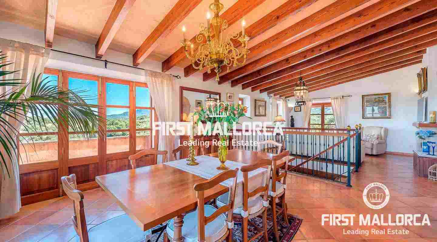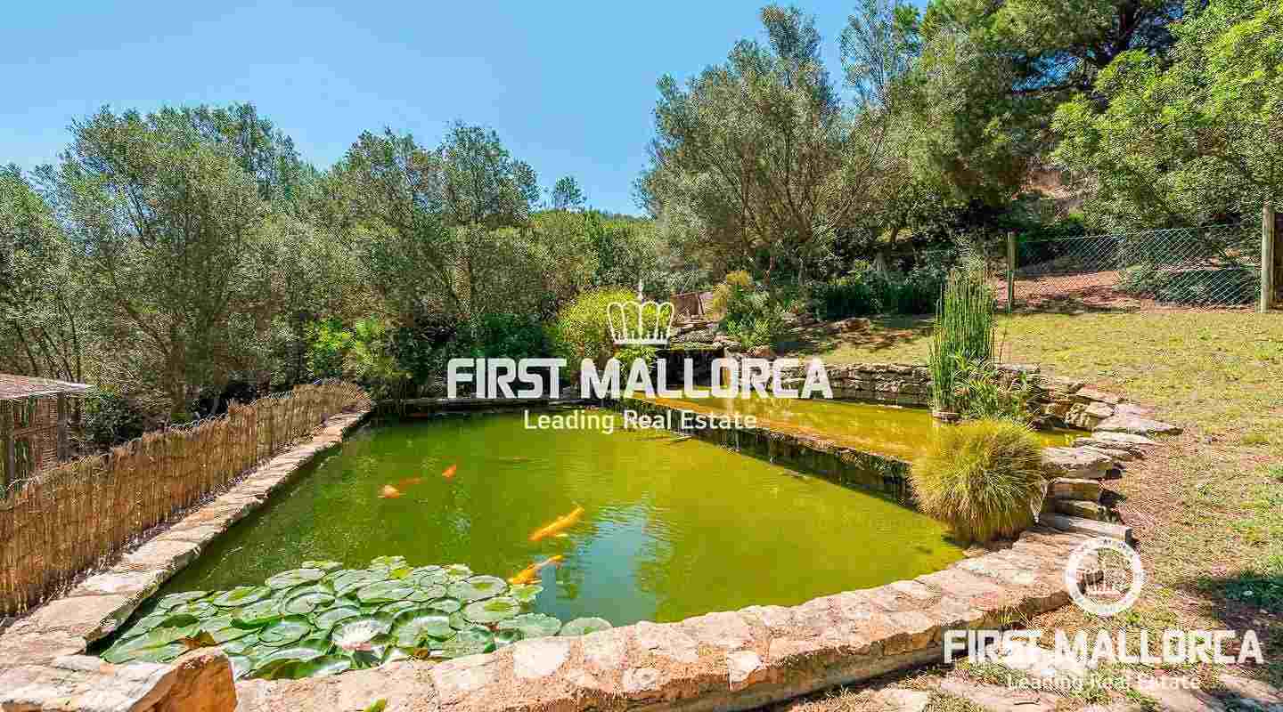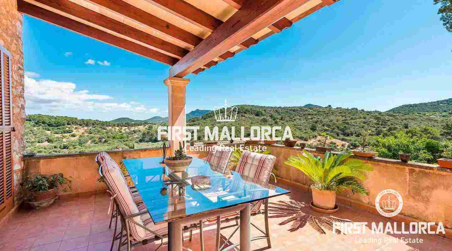 Finca tradicional con piedra forrada en Cas Concos. La casa tiene tres dormitorios y dos baños, el interior con vigas de madera da un toque especial. Con las azulejas típicos de la zona y la piedra de Santanyi tenemos una autentica Finca mallorquina que tiene unos vistas fantásticas abiertas sobre las montañas y bosques verdes de Cas Concos, un pequeño pueblo de Mallorca. El jardín con grandes terrazas y un lago con peces invitan a relajarse, incluso tiene un horno tradicional para elaborar su propio pan.