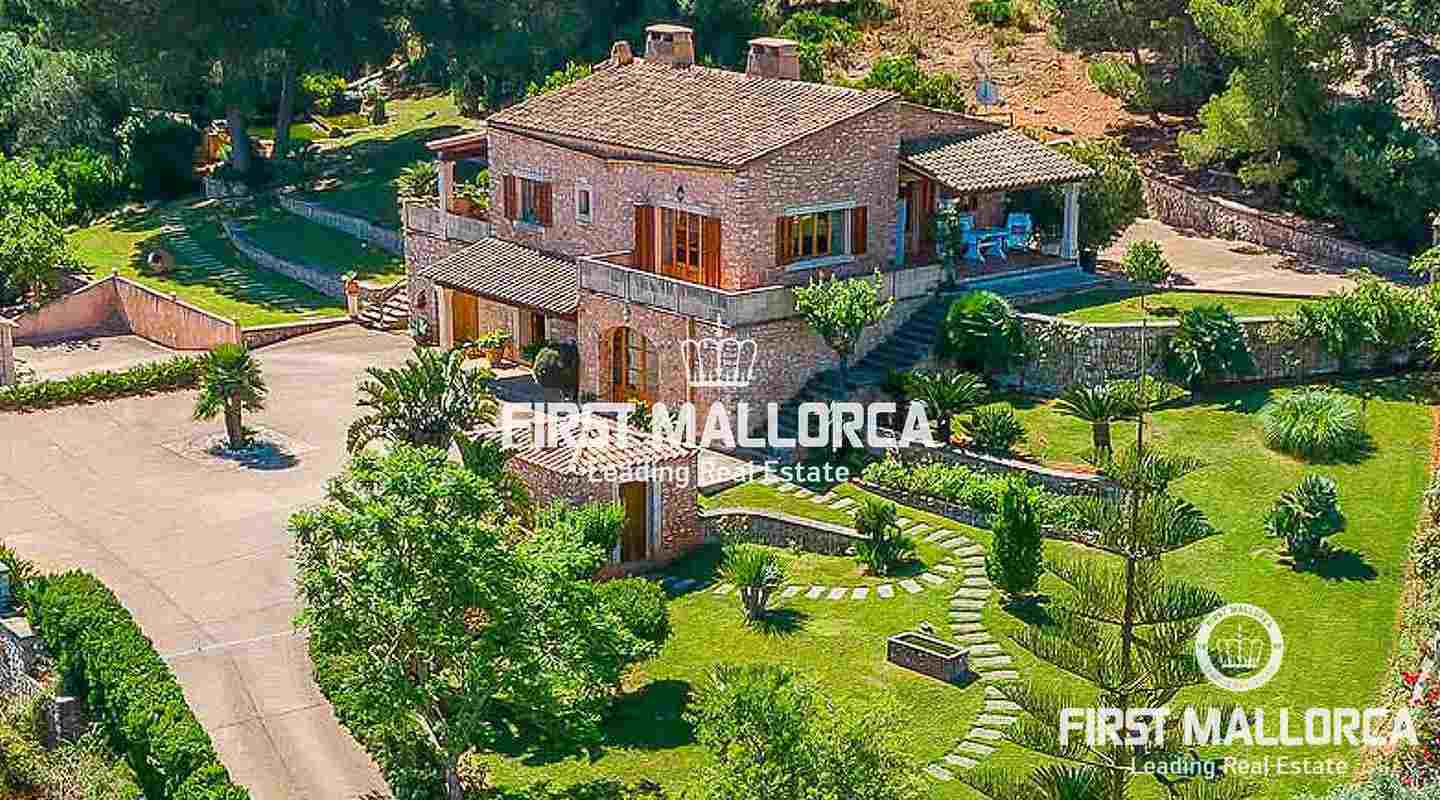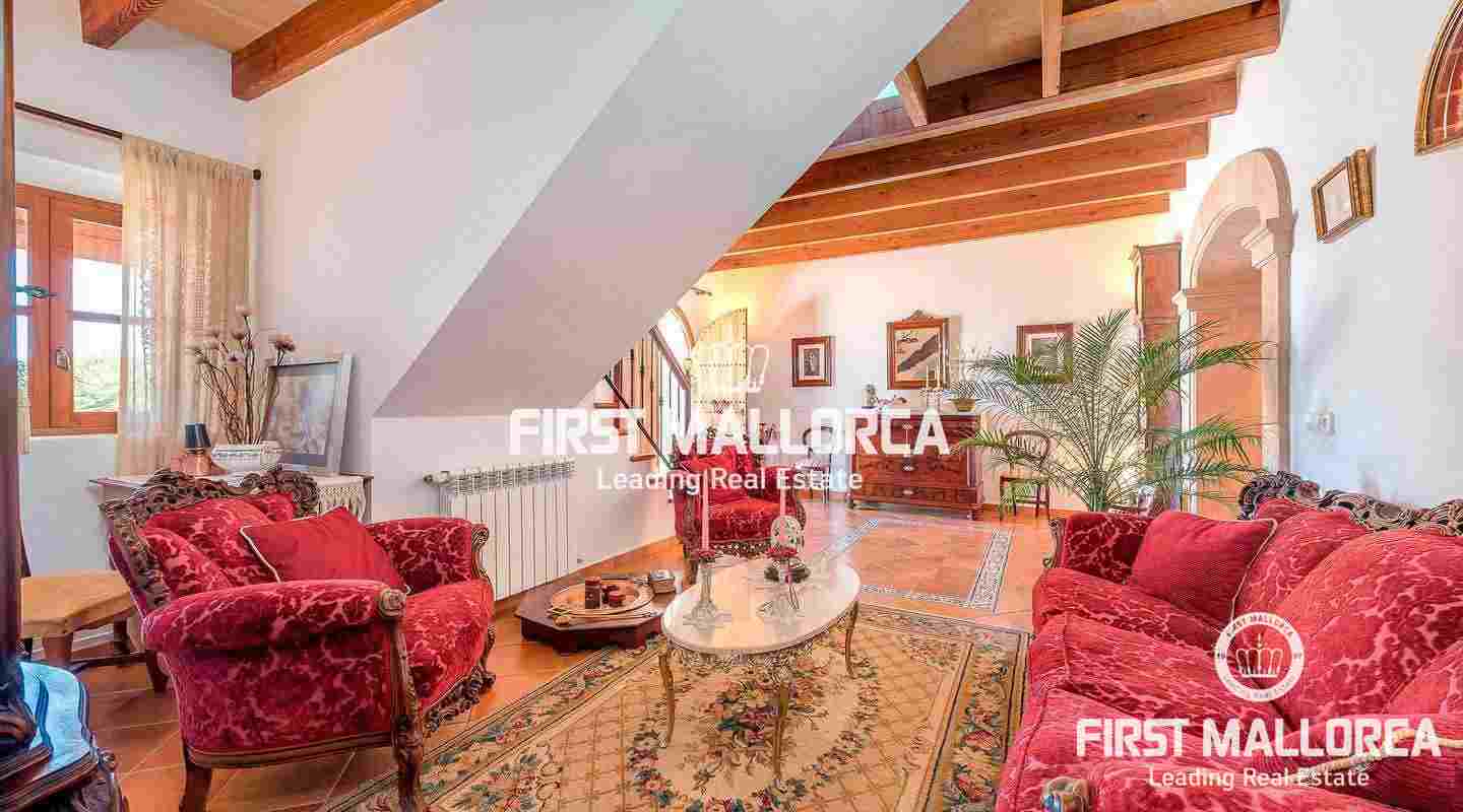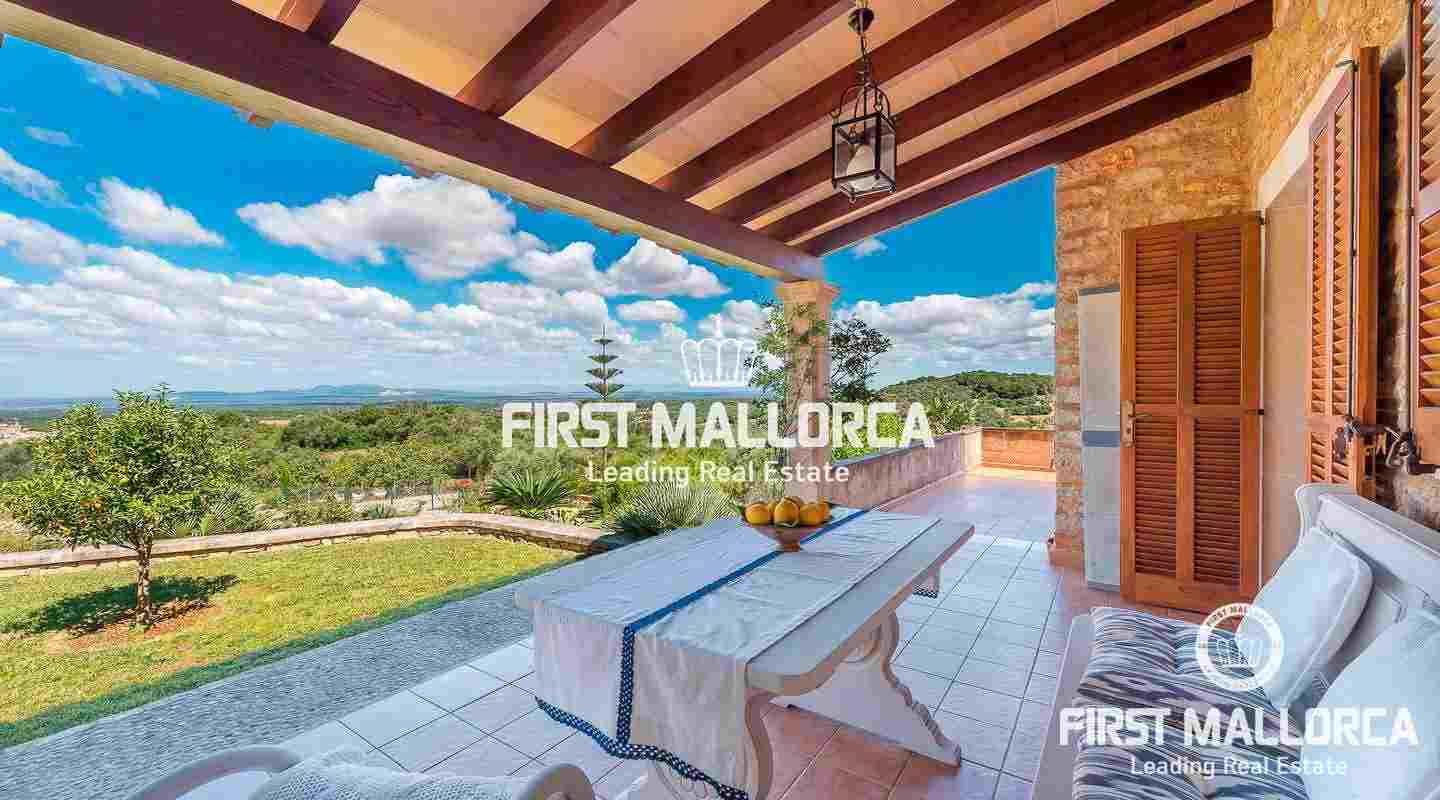 Finca tradicional con piedra forrada en Cas Concos. La casa tiene tres dormitorios y dos baños, el interior con vigas de madera da un toque especial. Con las azulejas típicos de la zona y la piedra de Santanyi tenemos una autentica Finca mallorquina que tiene unos vistas fantásticas abiertas sobre las montañas y bosques verdes de Cas Concos, un pequeño pueblo de Mallorca. El jardín con grandes terrazas y un lago con peces invitan a relajarse, incluso tiene un horno tradicional para elaborar su propio pan.