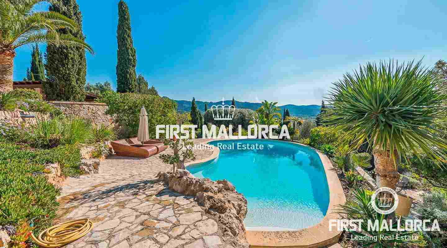 Esta preciosa finca con jardín mediterráneo, atractiva área de piscina e impresionantes vistas al campo está situada en las afueras del pintoresco pueblo de Es Capdella.
