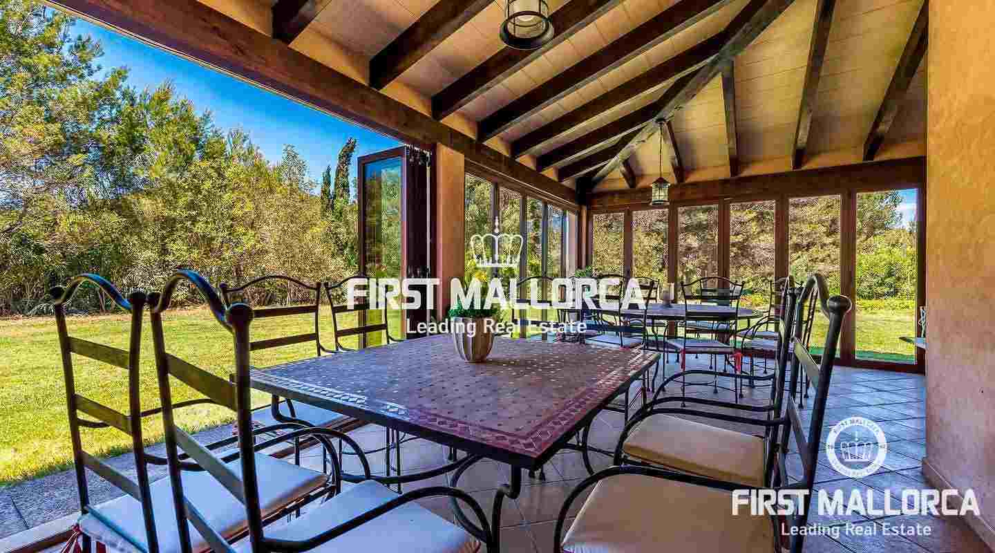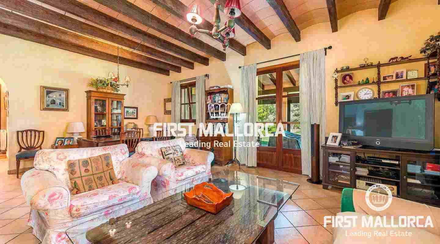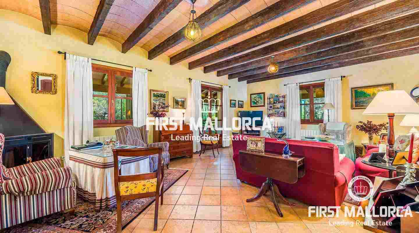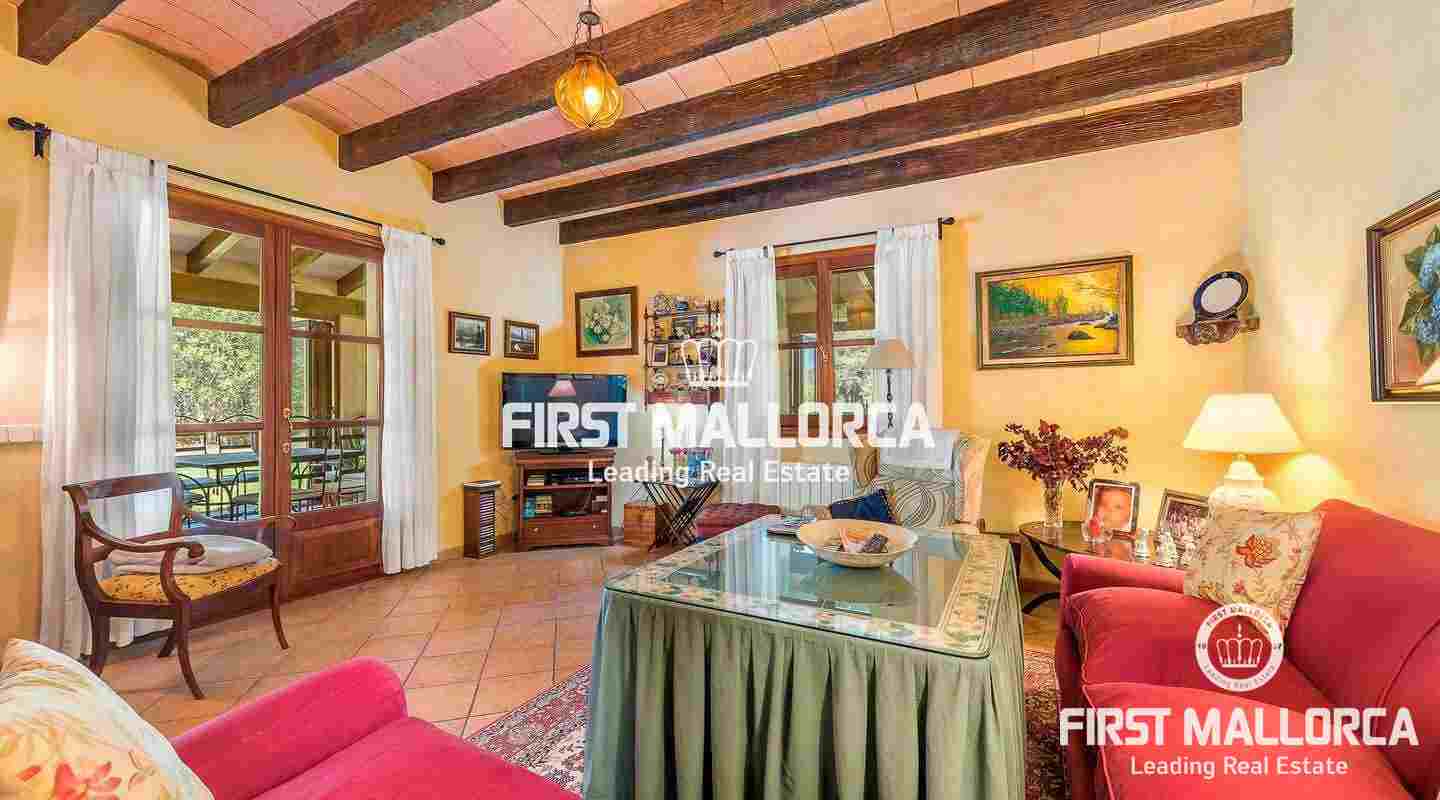 Esta finca muy familiar con piscina se encuentra en un terreno plano a la entrada del pueblo de Esporlas, en el centro de Mallorca.
