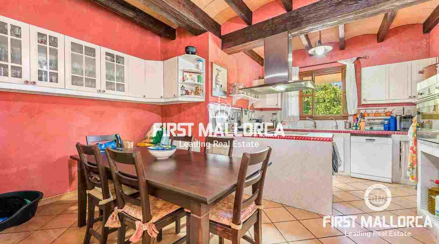 La propiedad cuenta con la particularidad de estar actualmente dividida en 2 viviendas con entradas independientes y es ideal para 2 familias o para alquilar una parte. También es fácilmente reconvertible en una propiedad. La finca tiene una superficie construida de 550 m² y dispone de 5 dormitorios y 3 baños. Además hay un bonito jardín con piscina y 2 porches muy cómodos para disfrutar de las vistas despejadas al paisaje. La propiedad con carácter tradicional está situada a escasos minutos a pie del centro de Esporlas con todas las comodidades.