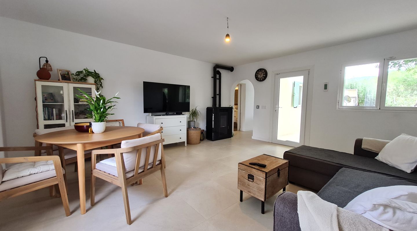 La casa ha sido completamente renovada con materiales de primera calidad, destacando el aislamiento SATE de 8 cm en la fachada y el aislamiento térmico en todo el suelo, lo que garantiza un gran confort y eficiencia energética. Dispone de dos habitaciones dobles y una habitación simple que actualmente se utiliza como vestidor, un baño con ducha, un salón comedor amplio y muy luminoso con estufa de pellets de alto rendimiento canalizada para calefacción, así como una cocina moderna, hecha a medida, totalmente equipada con muebles y electrodomésticos de alta gama. Los dormitorios cuentan además con ventiladores de techo que aportan frescor y comodidad en los meses más cálidos.