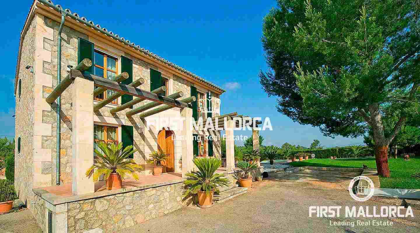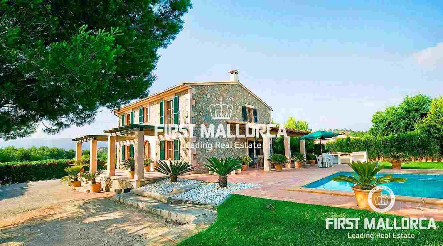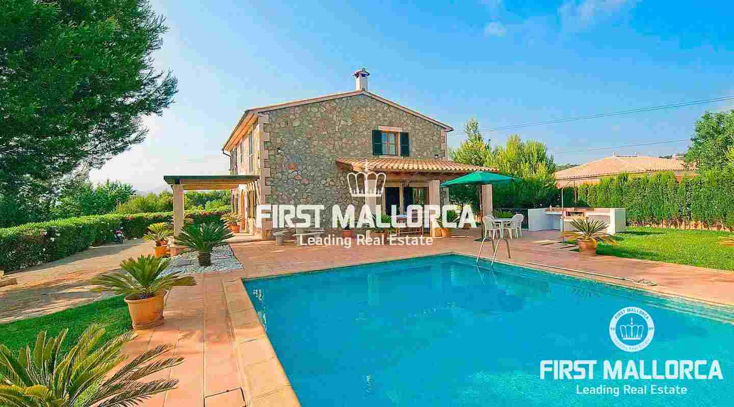 Extraordinaria finca forrada de piedra natural con 5 dormitorios sobre un solar de 3000 m2 con jardín nivelado y árboles. A tan sólo pocos minutos se encuentra el pueblo de Marratxí y a 20 minutos en coche la ciudad de Palma. La propiedad tiene una superficie construida de 280 m2, incluyendo 30 m2 de terrazas cubiertas, además de 120 m2 de terrazas abiertas. Se divide de la siguiente manera: recibidor, salón comedor con chimenea, cocina completamente equipada y amueblada con zona de comedor, coladuría anexa. Salón y cocina están dotados de puertas acristaladas con acceso a las amplias terrazas, al jardín y a la piscina. Además encontramos en la planta baja un dormitorio y un baño separado. Otras características incluyen: calefacción central, aire acondicionado frío/calor, piscina rodeada de amplias terrazas y césped nivelado, barbacoa, garaje para 2 plazas. La propiedad se vende completamente amueblada.