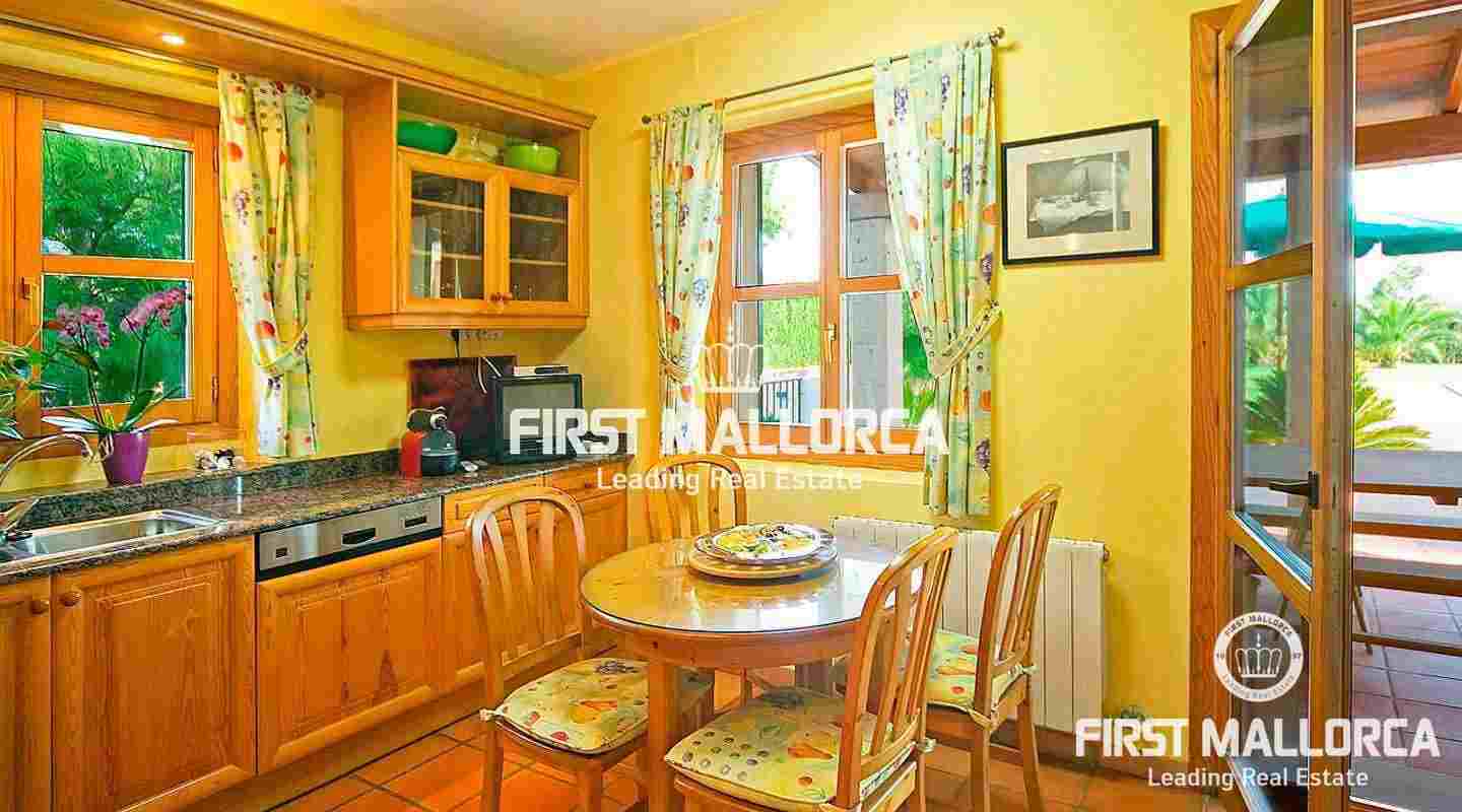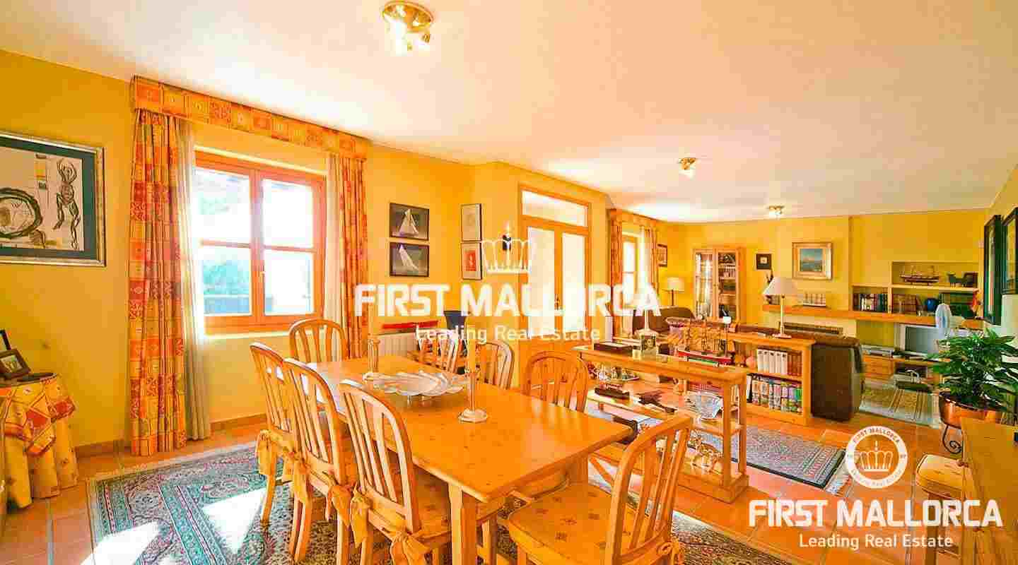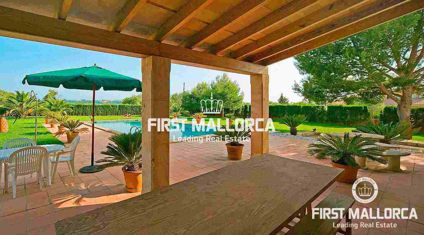 Extraordinaria finca forrada de piedra natural con 5 dormitorios sobre un solar de 3000 m2 con jardín nivelado y árboles. A tan sólo pocos minutos se encuentra el pueblo de Marratxí y a 20 minutos en coche la ciudad de Palma. La propiedad tiene una superficie construida de 280 m2, incluyendo 30 m2 de terrazas cubiertas, además de 120 m2 de terrazas abiertas. Se divide de la siguiente manera: recibidor, salón comedor con chimenea, cocina completamente equipada y amueblada con zona de comedor, coladuría anexa. Salón y cocina están dotados de puertas acristaladas con acceso a las amplias terrazas, al jardín y a la piscina. Además encontramos en la planta baja un dormitorio y un baño separado. Otras características incluyen: calefacción central, aire acondicionado frío/calor, piscina rodeada de amplias terrazas y césped nivelado, barbacoa, garaje para 2 plazas. La propiedad se vende completamente amueblada.