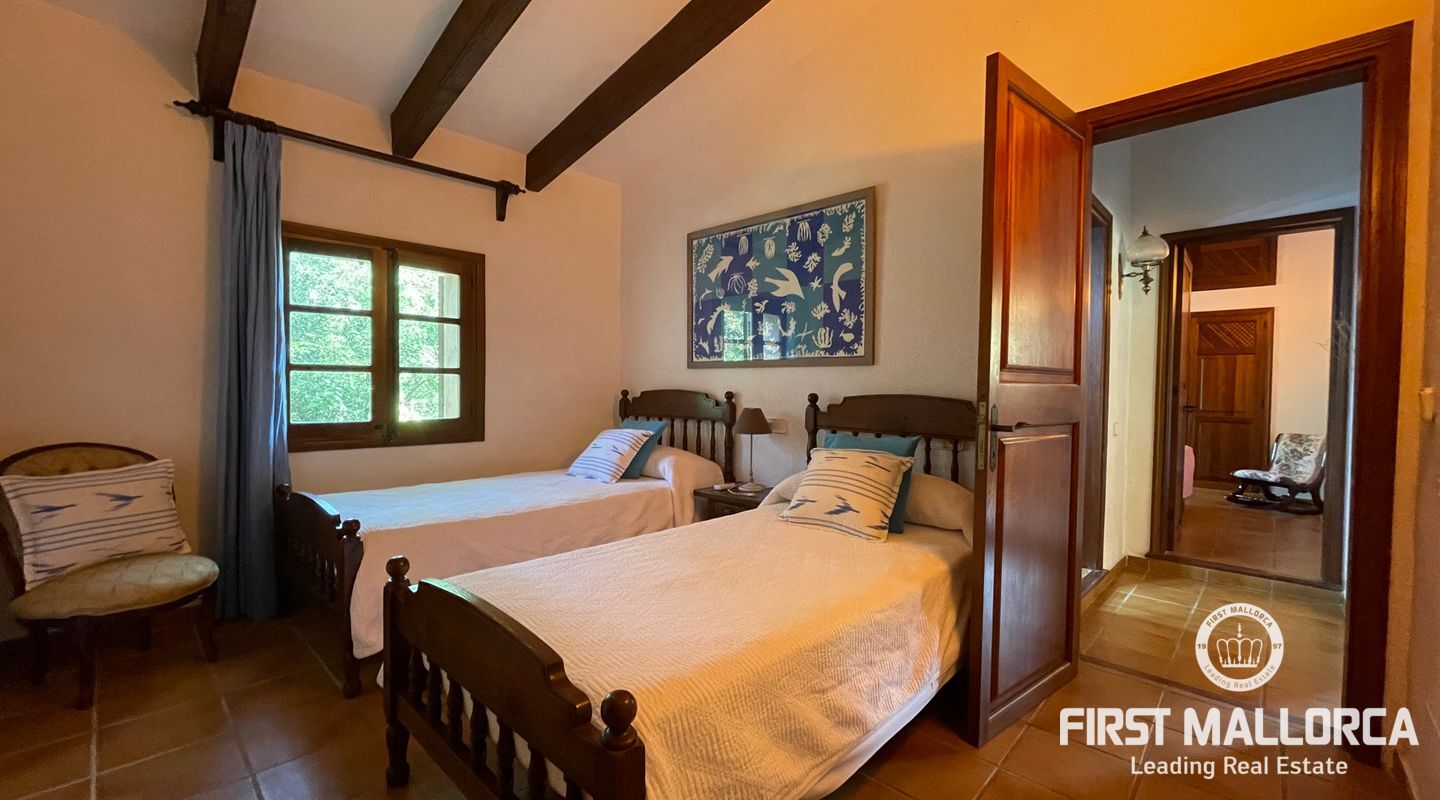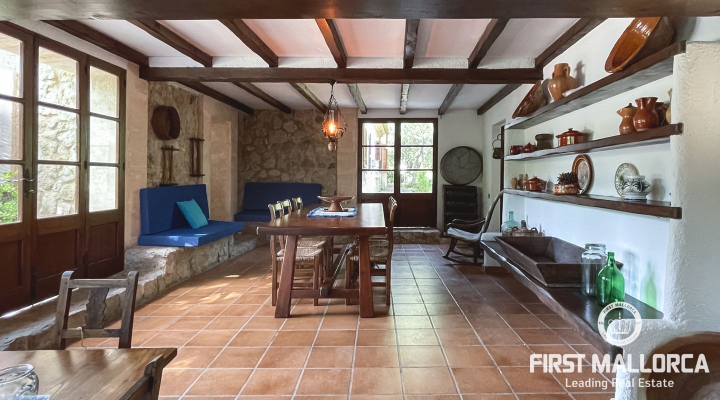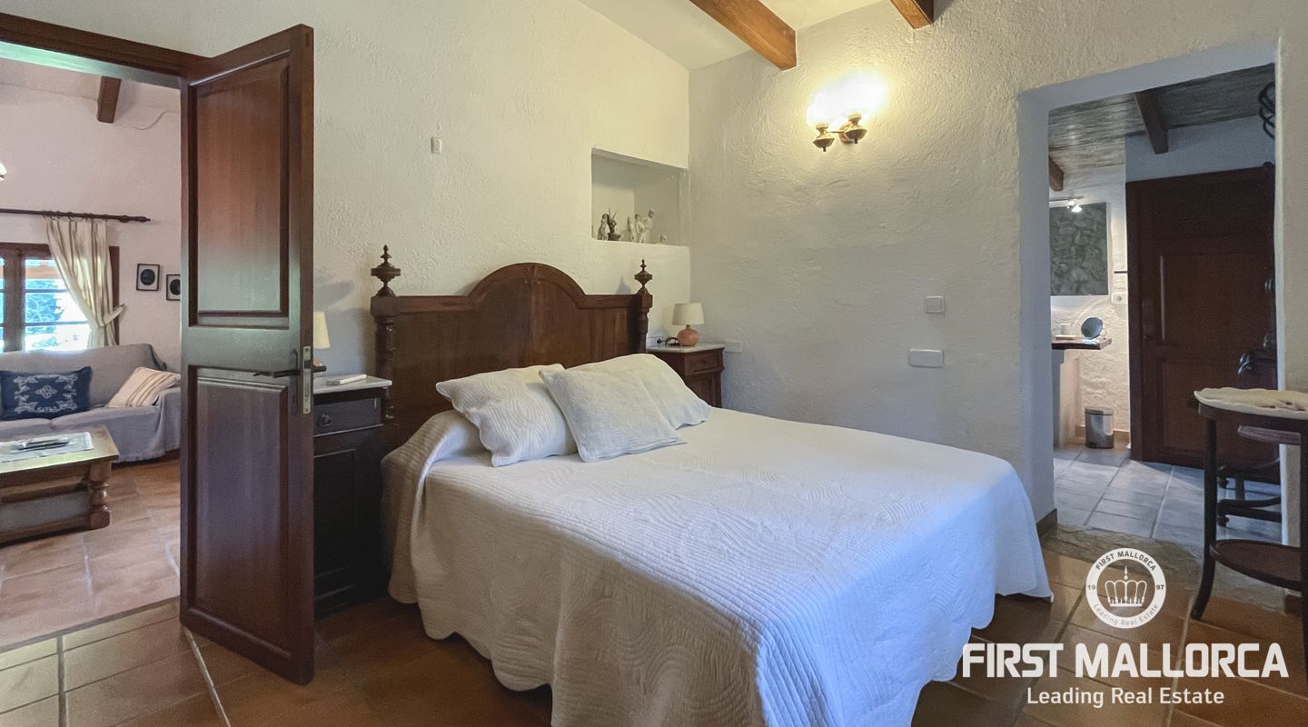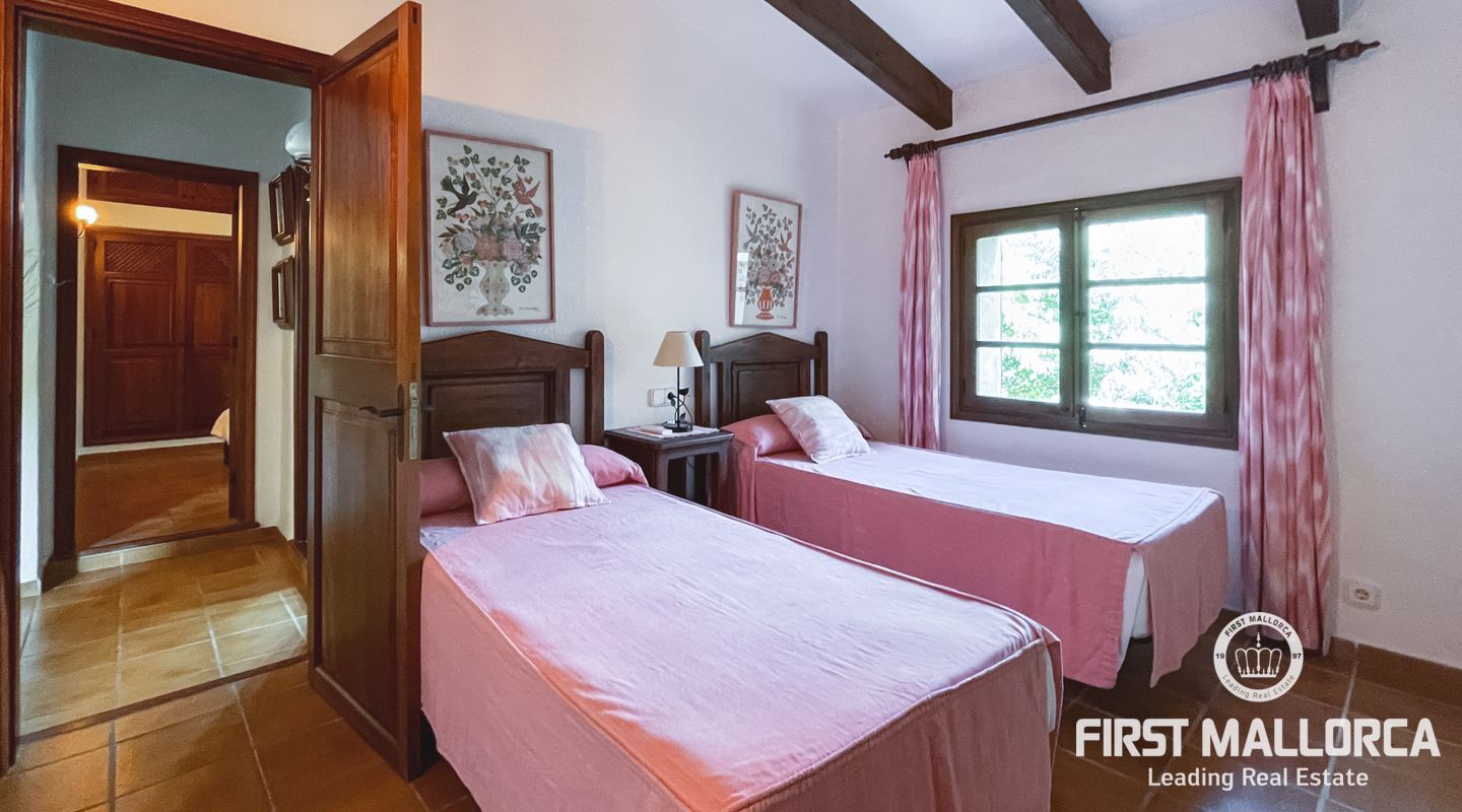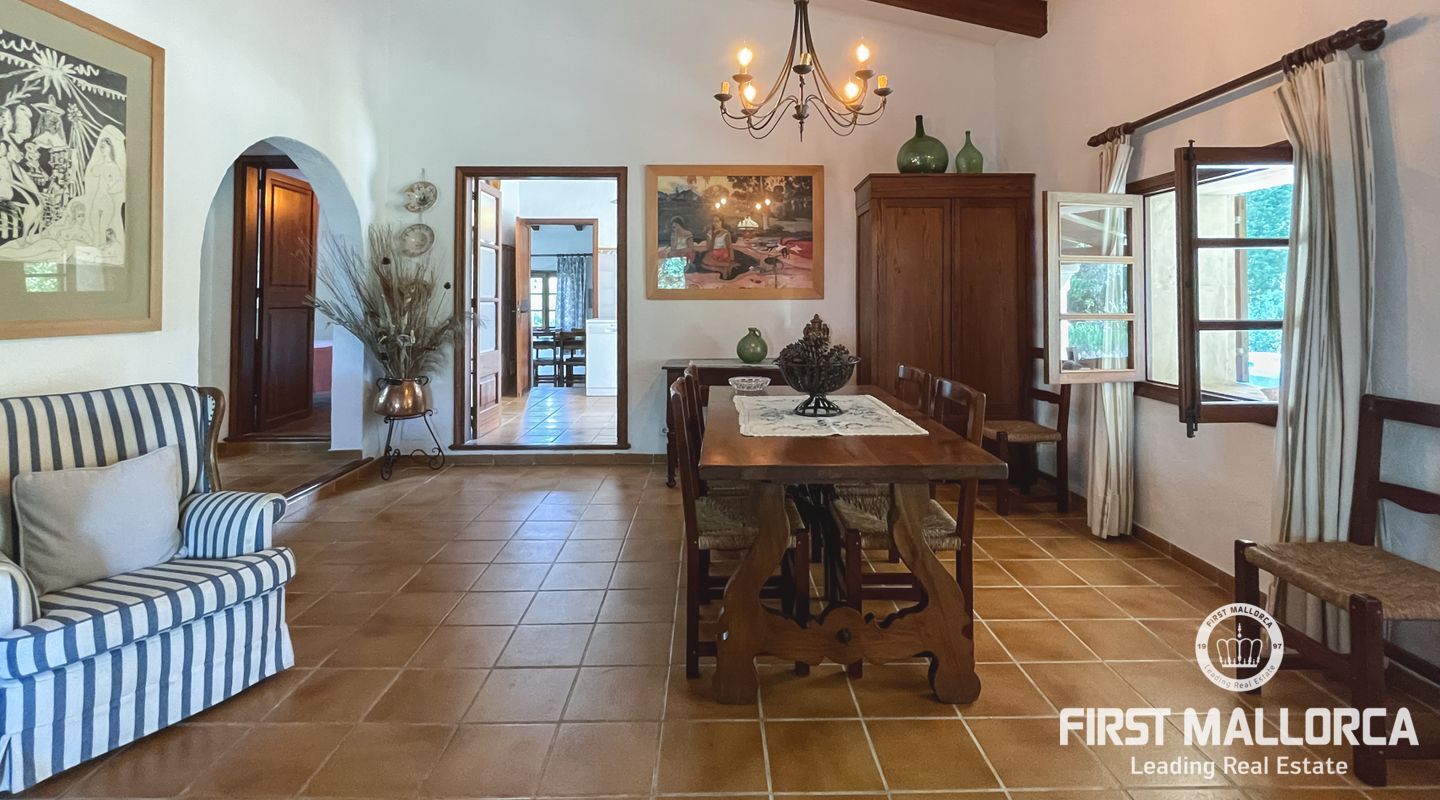 Esta encantadora finca mallorquina se encuentra a pocos minutos en coche del pueblo de Pollensa, en el norte de Mallorca. Construida con la tradicional piedra mallorquina, está rodeada de un gran jardín bien cuidado y una gran piscina.