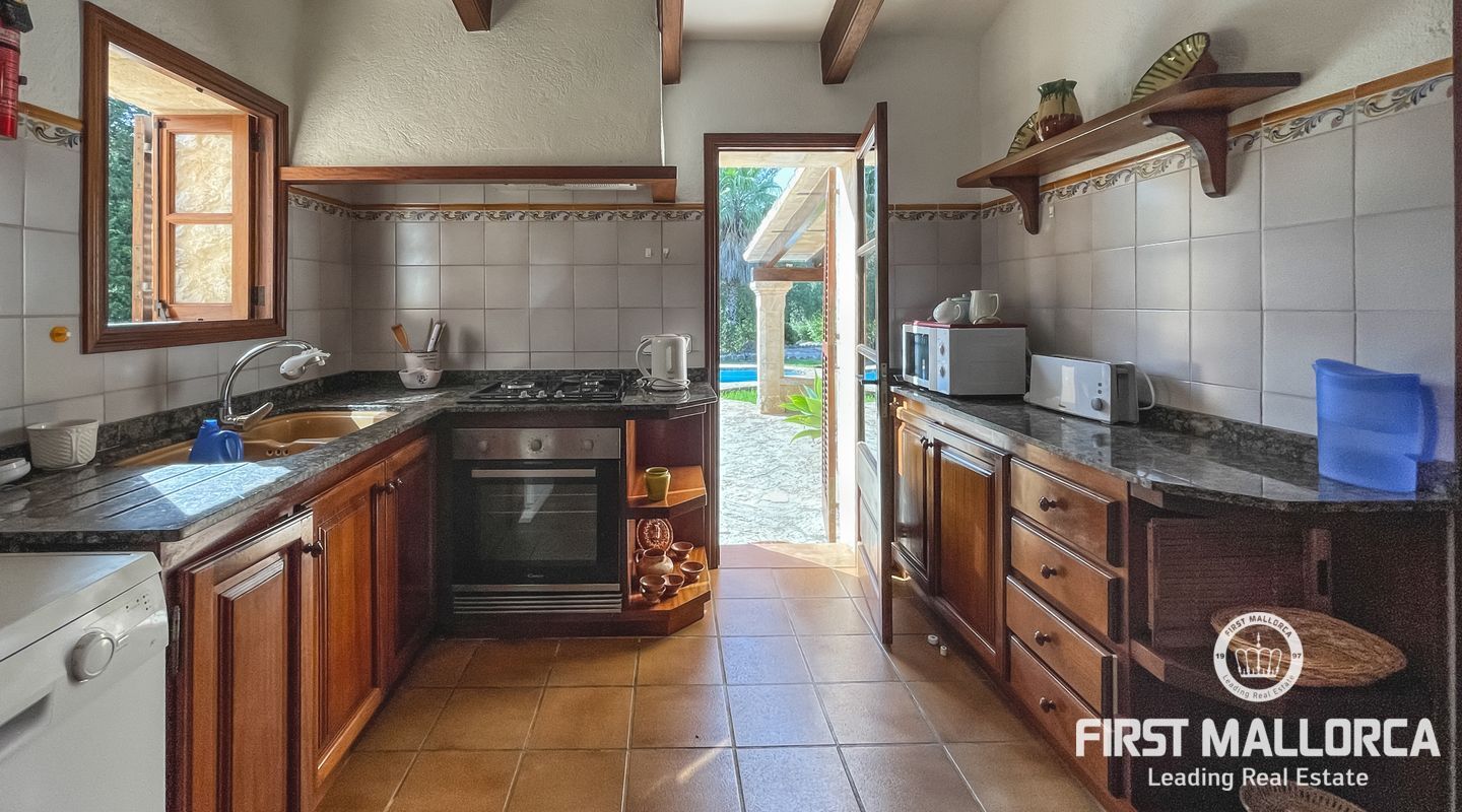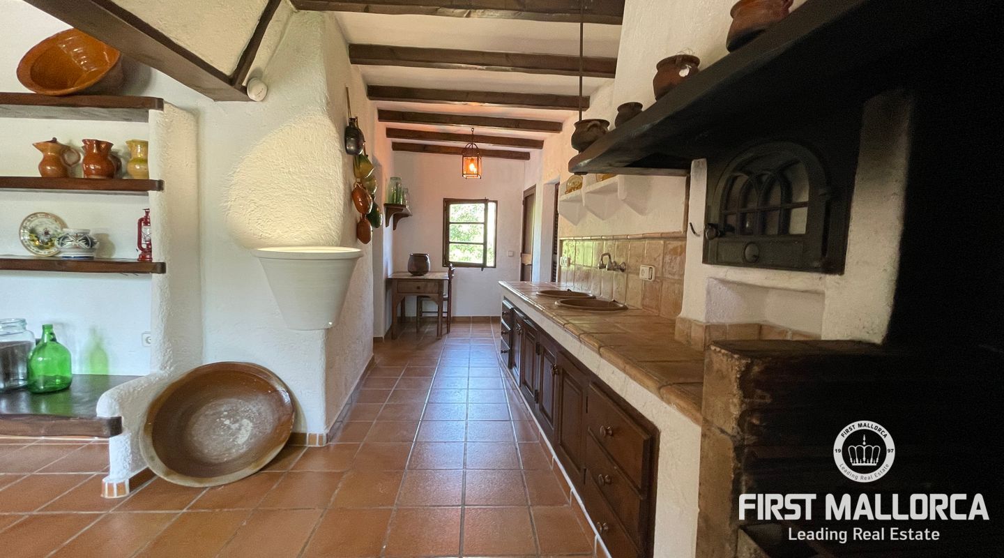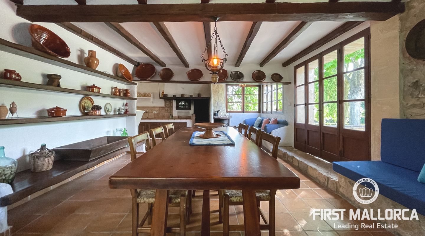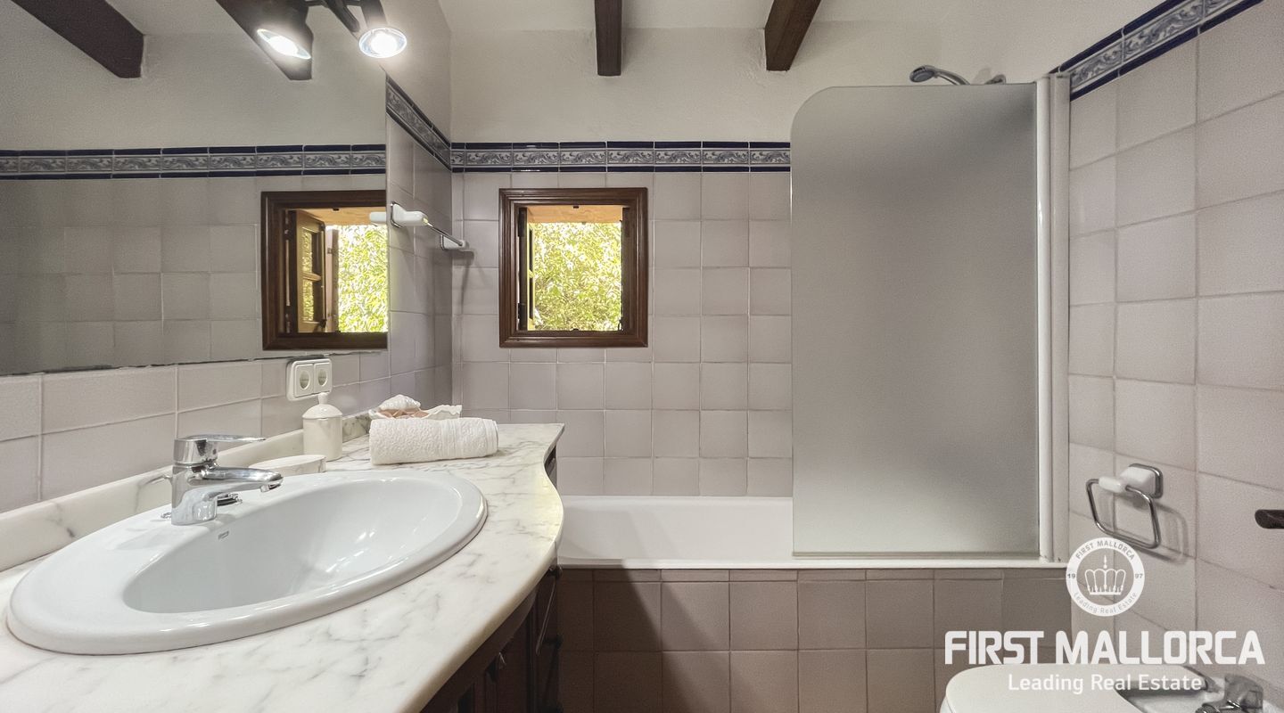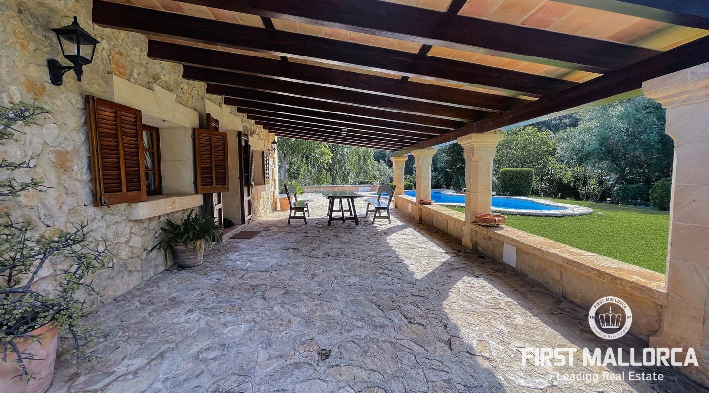 Esta encantadora finca mallorquina se encuentra a pocos minutos en coche del pueblo de Pollensa, en el norte de Mallorca. Construida con la tradicional piedra mallorquina, está rodeada de un gran jardín bien cuidado y una gran piscina.