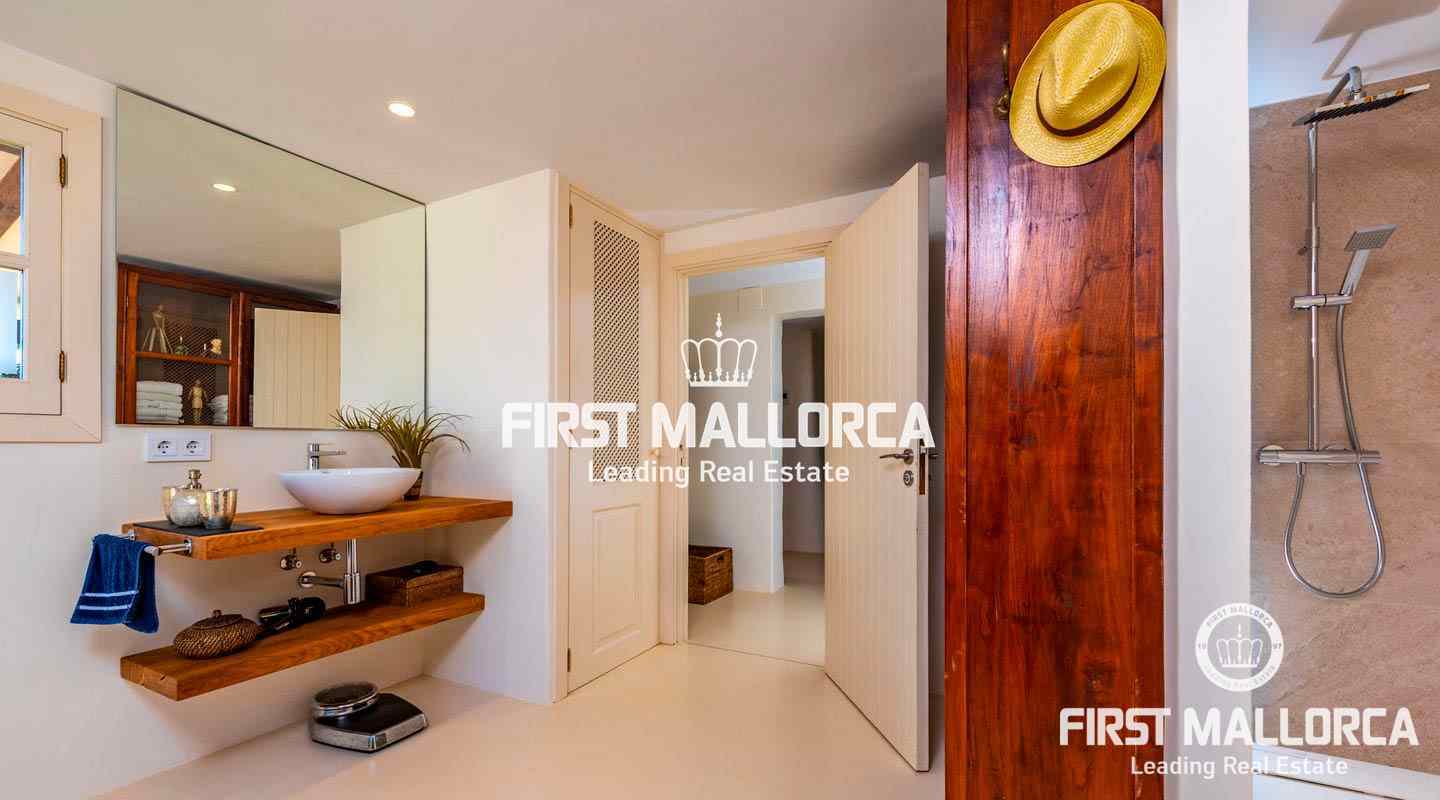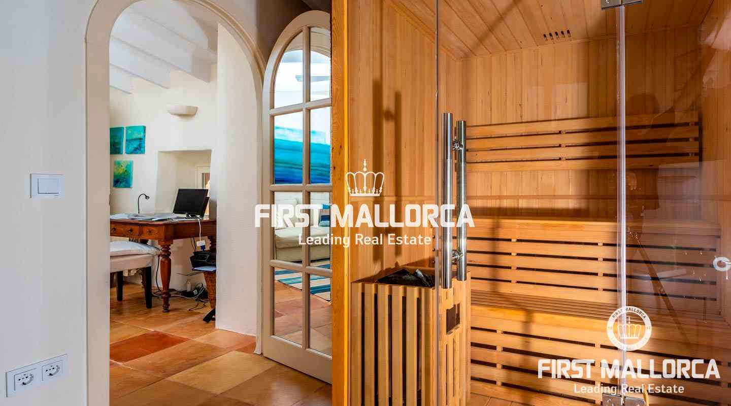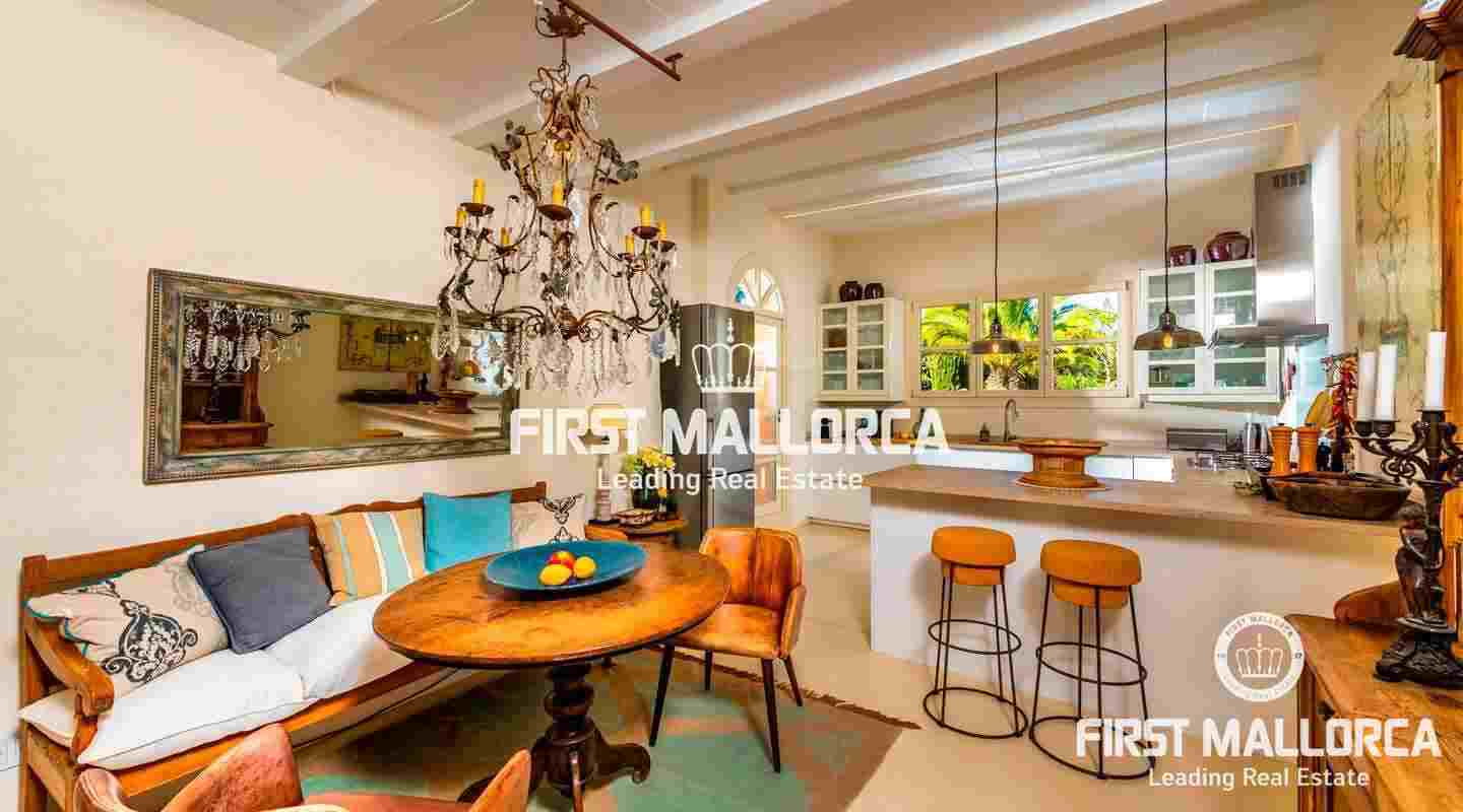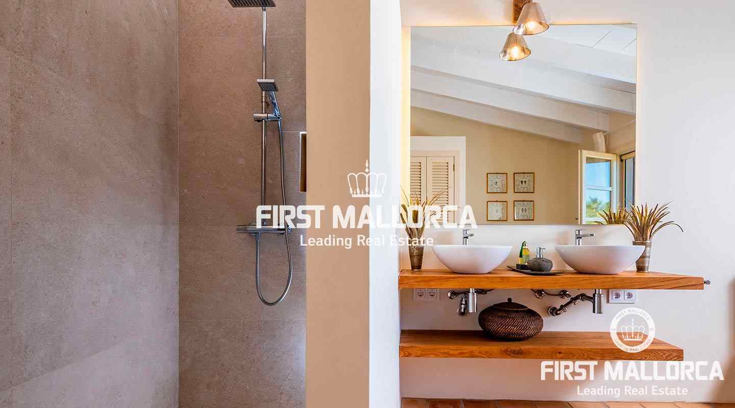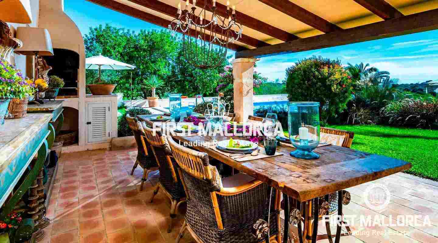 Esta hermosa y elegante finca con un solar de 8,000 m² está ubicada en las colinas cerca de S'Alqueria Blanca, gozando de impresionantes vistas panorámicas sobre el bucólico paisaje hasta el mar. La casa está rodeada por un precioso jardín con palmeras, ofreciendo mucha privacidad, y transmite el romántico ambiente mediterráneo.