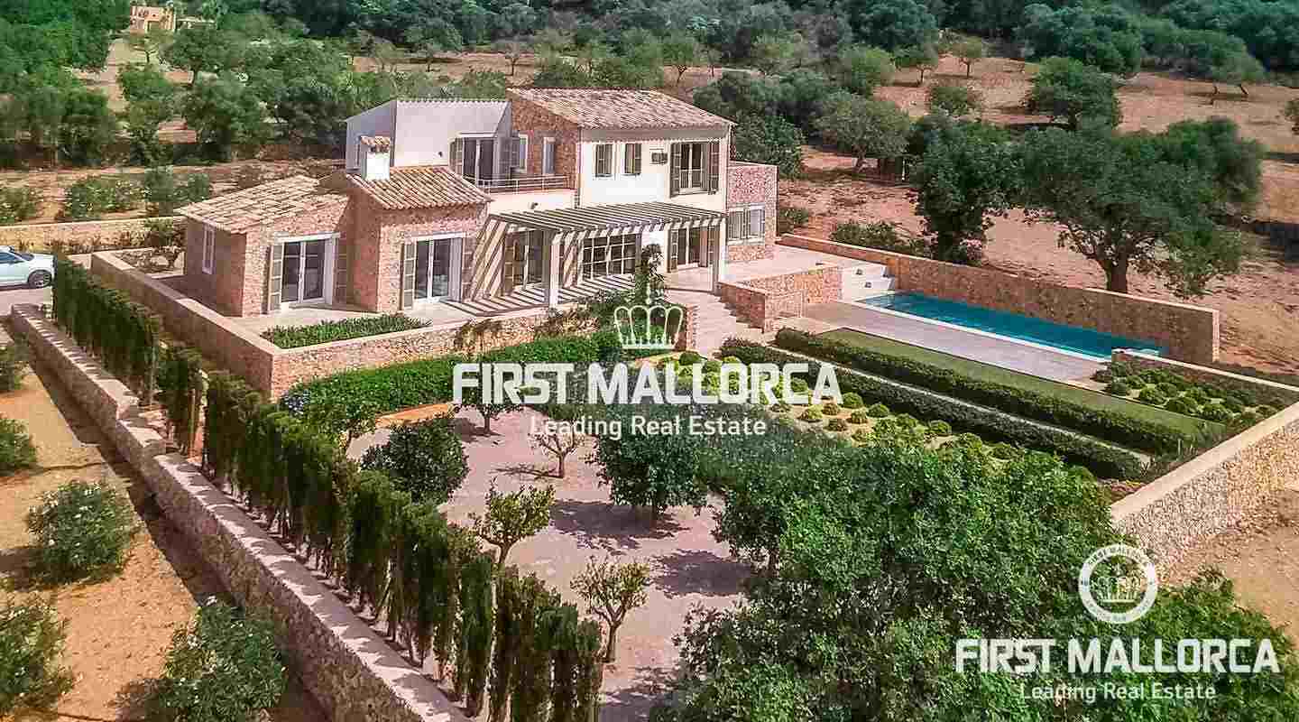 La finca tiene una superficie construida de 300 m² y dispone de 4 dormitorios, 4 baños, un amplio salón-comedor con chimenea y una cocina totalmente equipada de primera calidad. Alrededor de la casa hay varias terrazas, que ofrecen fantásticas vistas al paisaje mediterráneo, el mar y la Serra de Tramuntana.