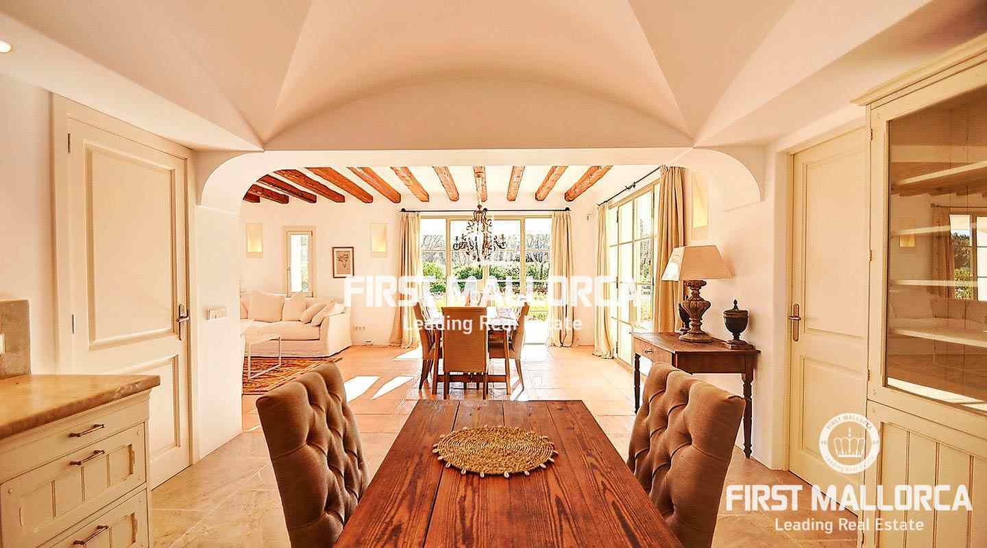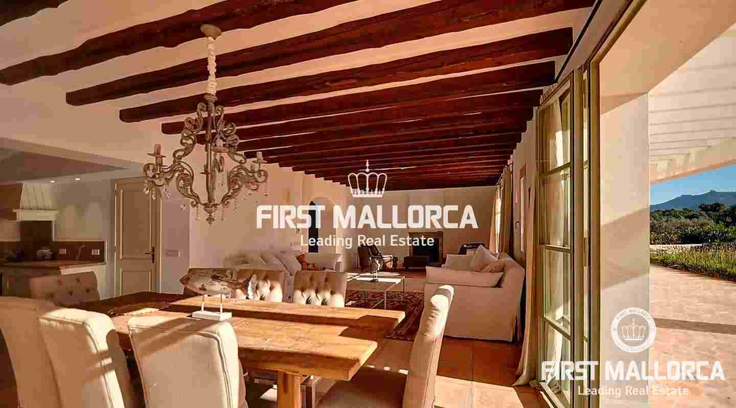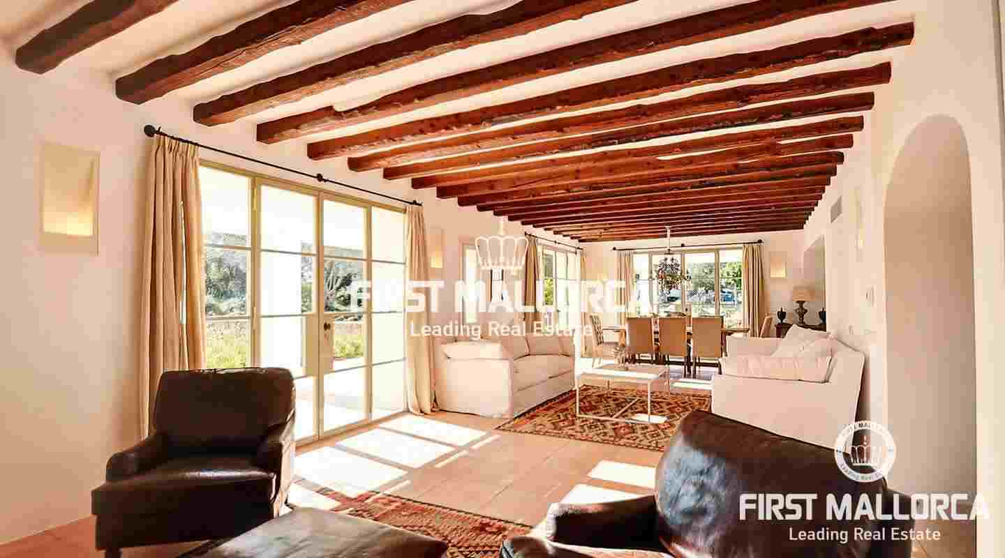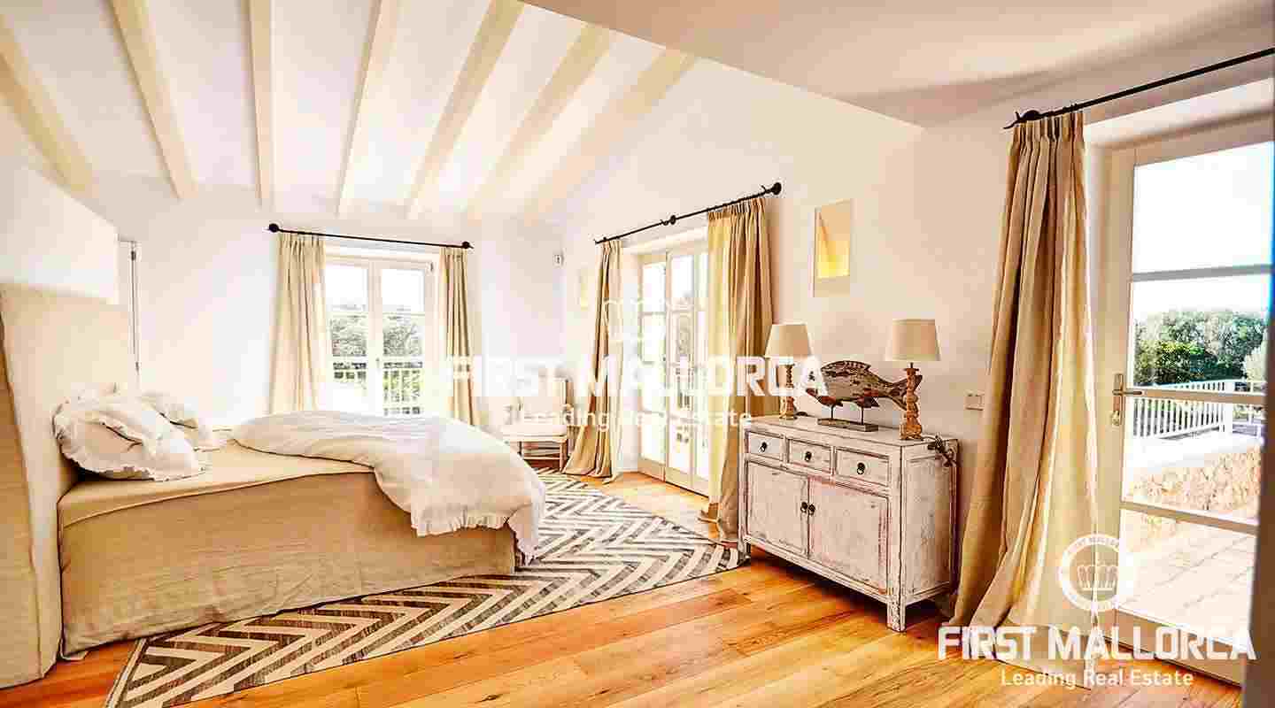 La elegante casa de campo se encuentra en Son Negre, en el sureste de Mallorca, con magníficas vistas y el monasterio de Sant Salvador. Le da la bienvenida con una amplia zona de entrada con una galería y escaleras para acceder a la planta superior. También hay una cocina moderna, un estudio, un dormitorio doble con baño en suite y un aseo de invitados en la planta baja. El acogedor salón ofrece una chimenea francesa y acceso a un jardín tipo parque con limoneros y naranjos, una zona de barbacoa y una gran piscina infinita.