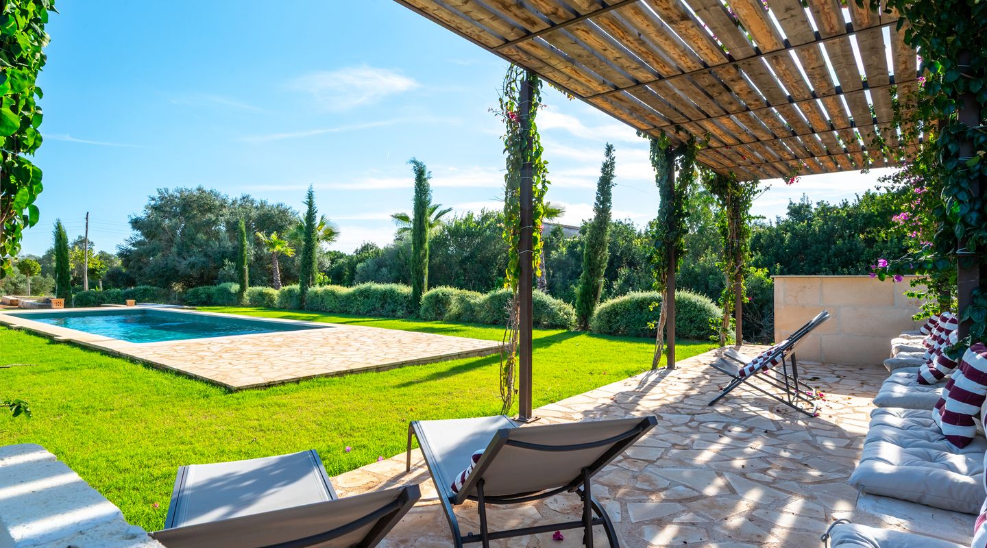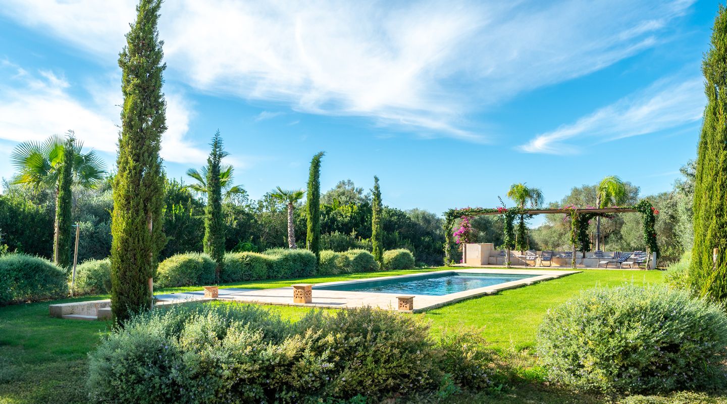 Por supuesto, cuenta con varias zonas de terraza y una piscina de acuerdo con las normas de construcción antiguas y, por tanto, de un tamaño excelente. Los dormitorios tienen sus propias terrazas y ofrecen magníficas vistas de Cabrera y del campo.