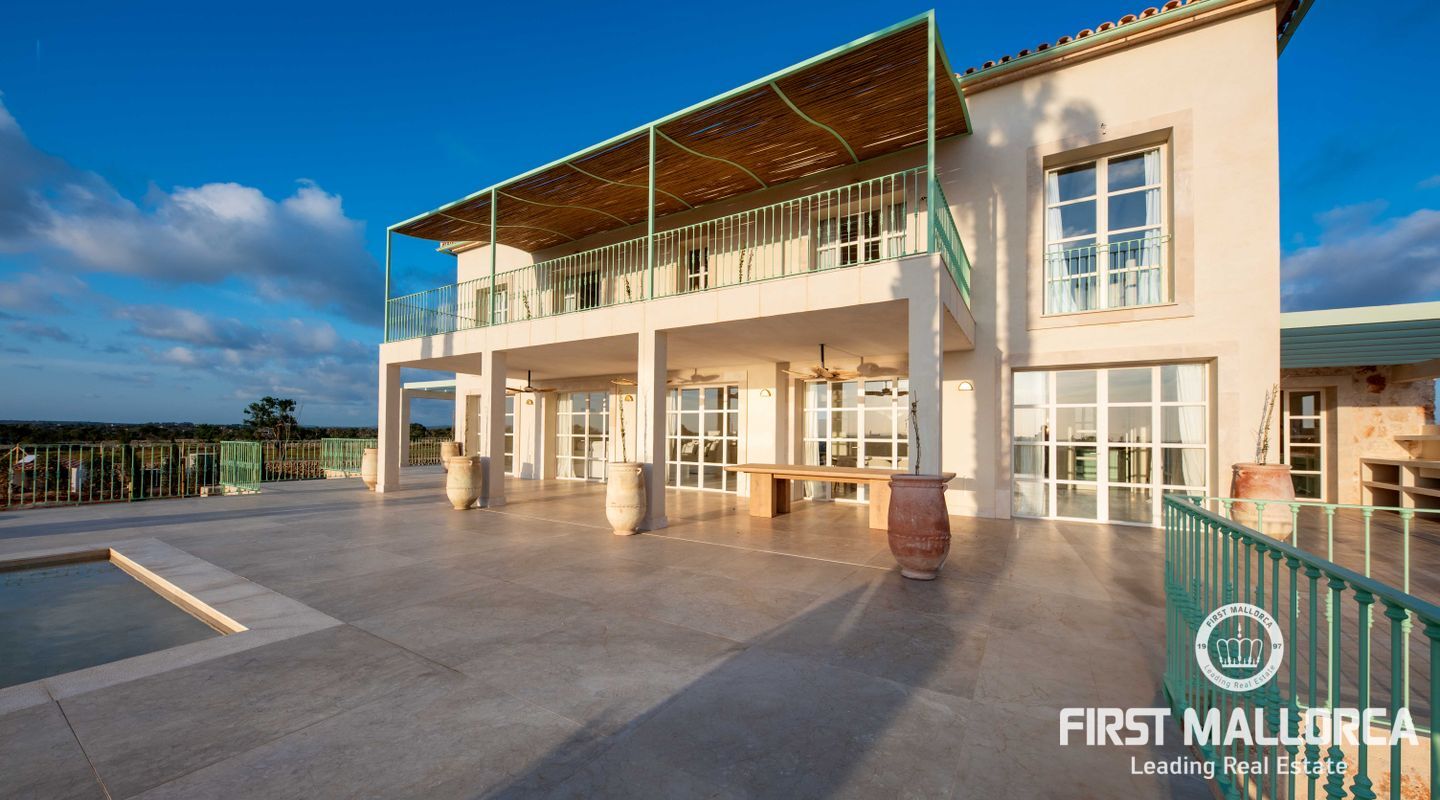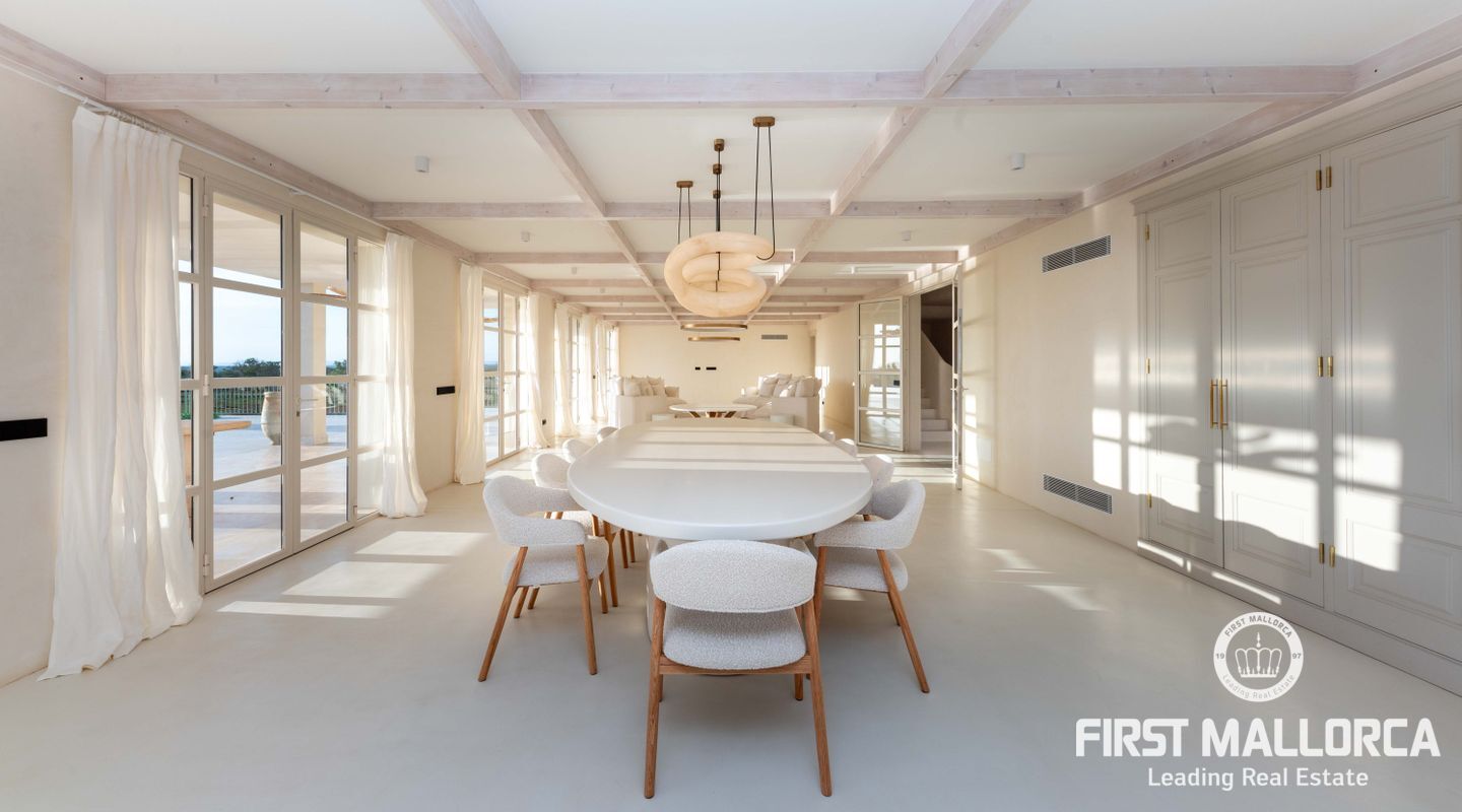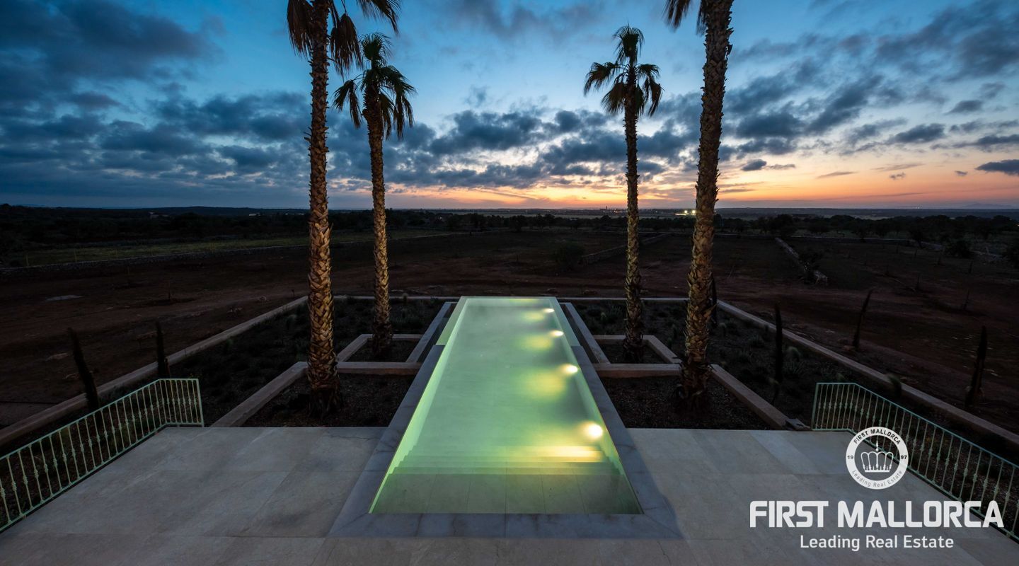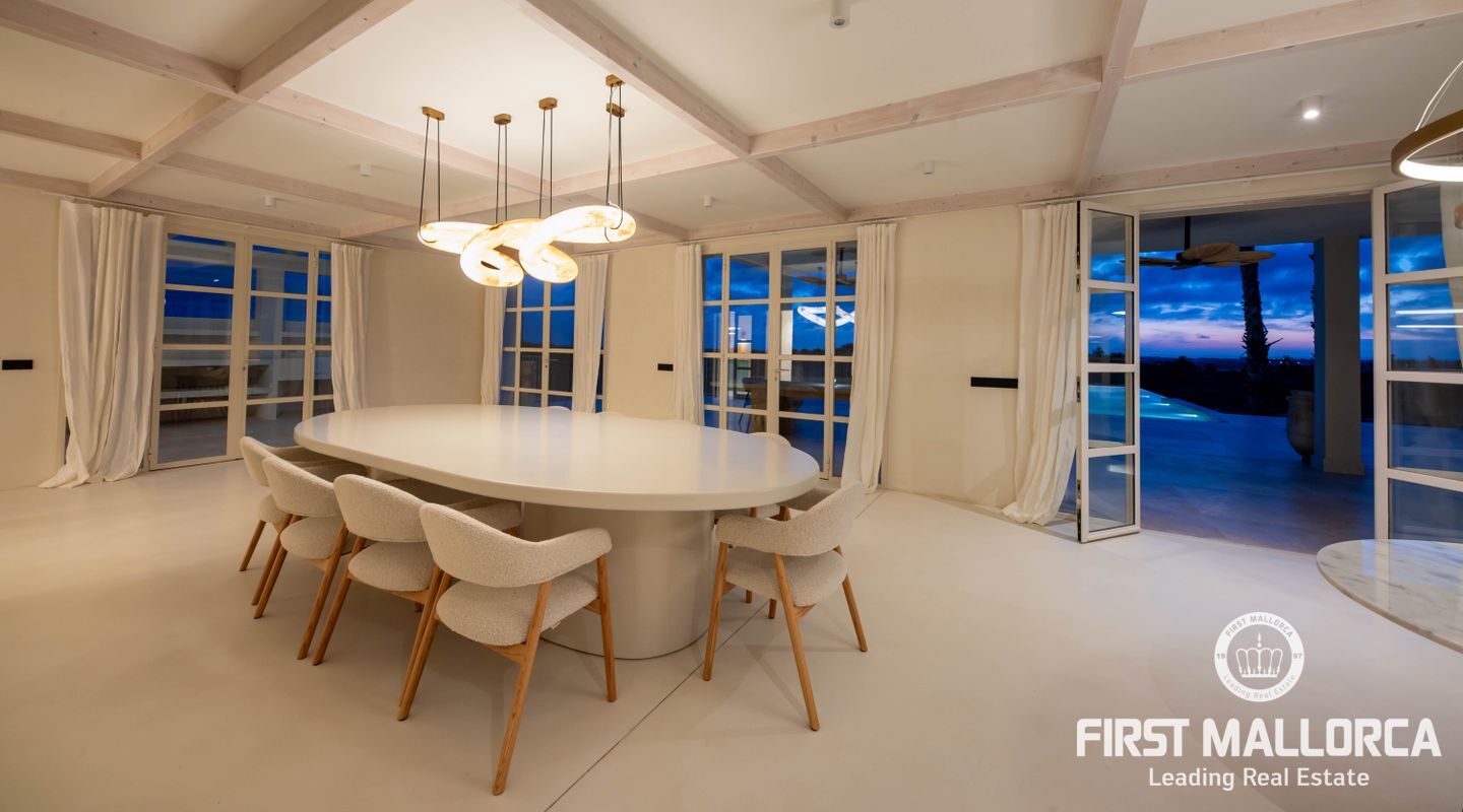Esta finca se ha terminado recientemente y, además de su diseño único, le ofrece una vista panorámica de 360° sobre el ambiente rústico del sureste. Se accede a la casa a través de un patio con plantas mediterráneas y juegos de agua. En la planta baja se encuentra el salón-comedor de planta abierta con cocina contigua, así como un dormitorio de invitados con su propio cuarto de baño y terraza privada. La terraza principal tiene acceso desde todas las habitaciones de la planta baja y ofrece una cocina al aire libre, un comedor cubierto y un salón al aire libre, la gran piscina infinita, así como fantásticas vistas sobre el paisaje virgen, Ses Salines, Randa, Cabrera y el mar. En la primera planta hay tres dormitorios más, cada uno con baño en suite. El dormitorio principal también ofrece un amplio vestidor y acceso a una terraza cubierta, mientras que lo más destacado de esta luminosa finca de nueva construcción es la zona exterior mediterránea con su espaciosa terraza con una gran piscina.