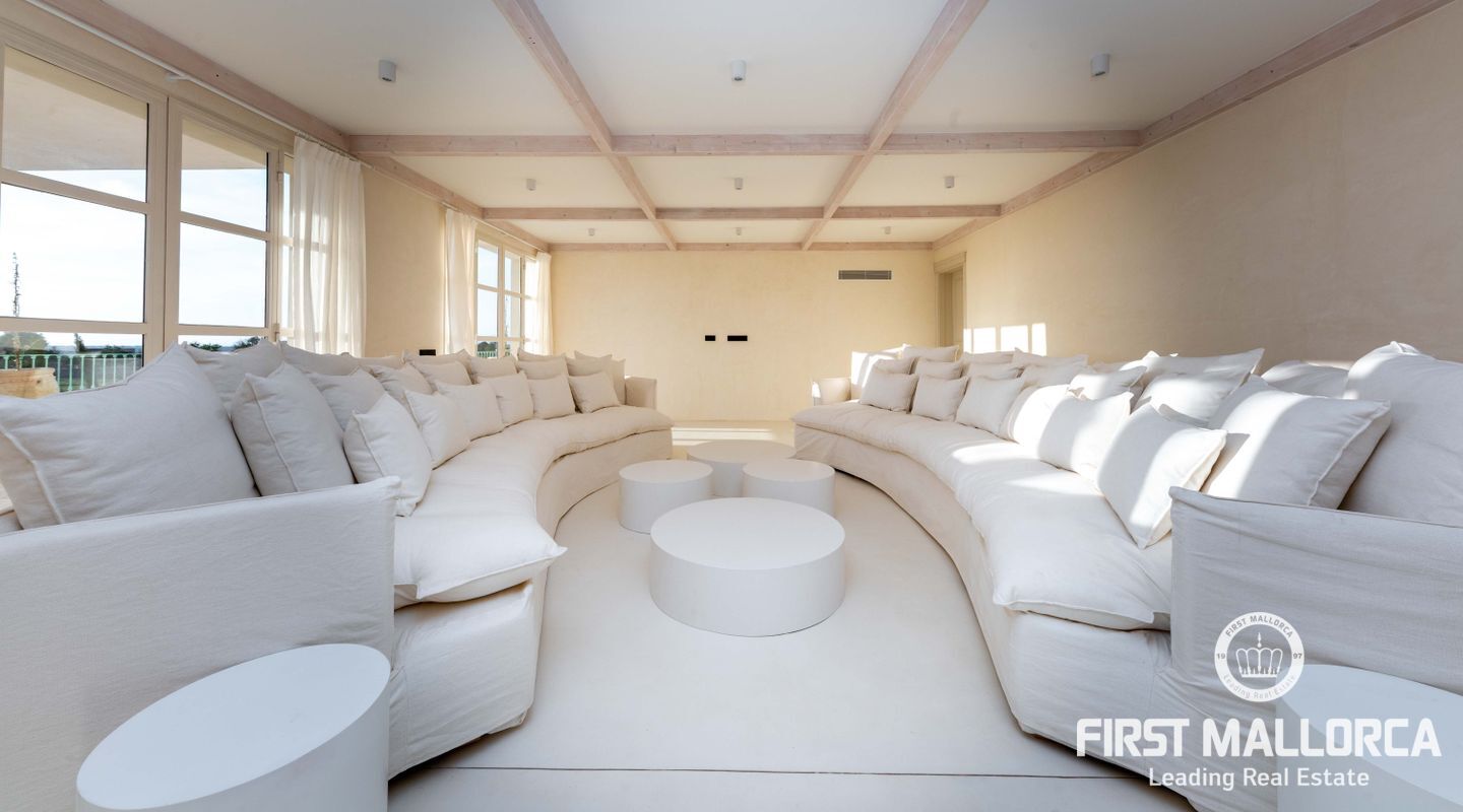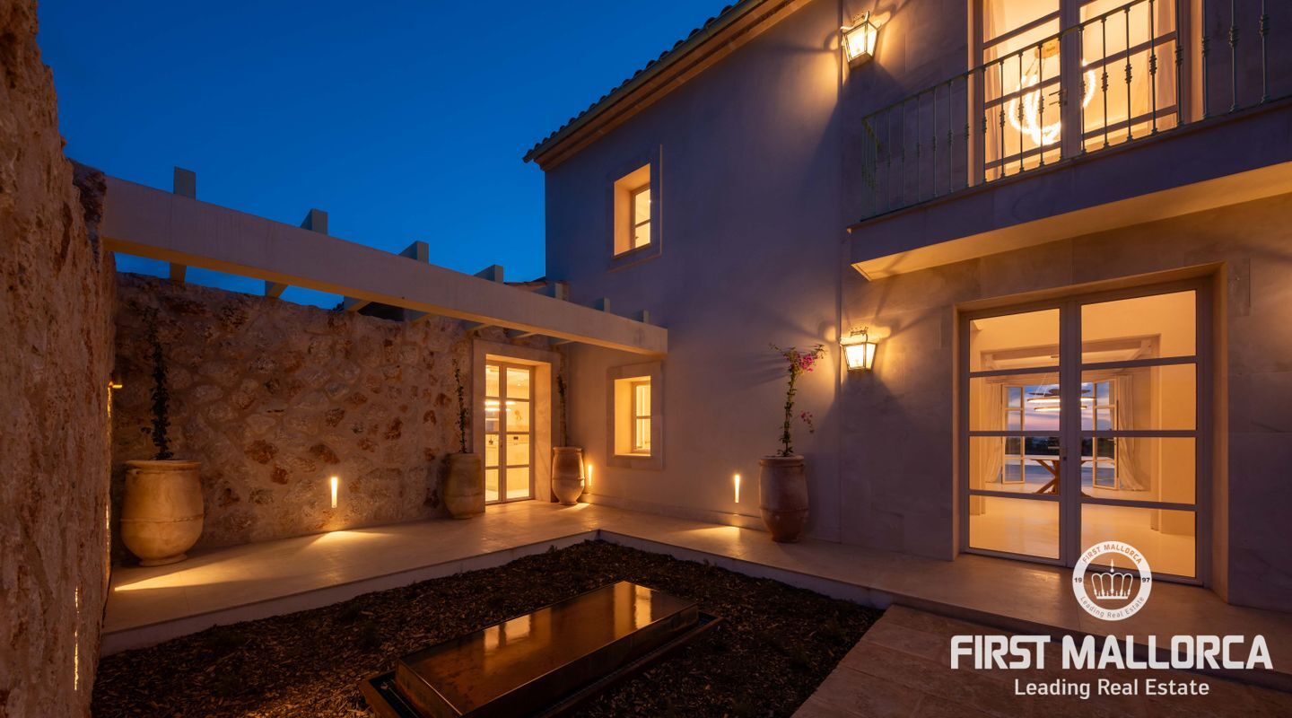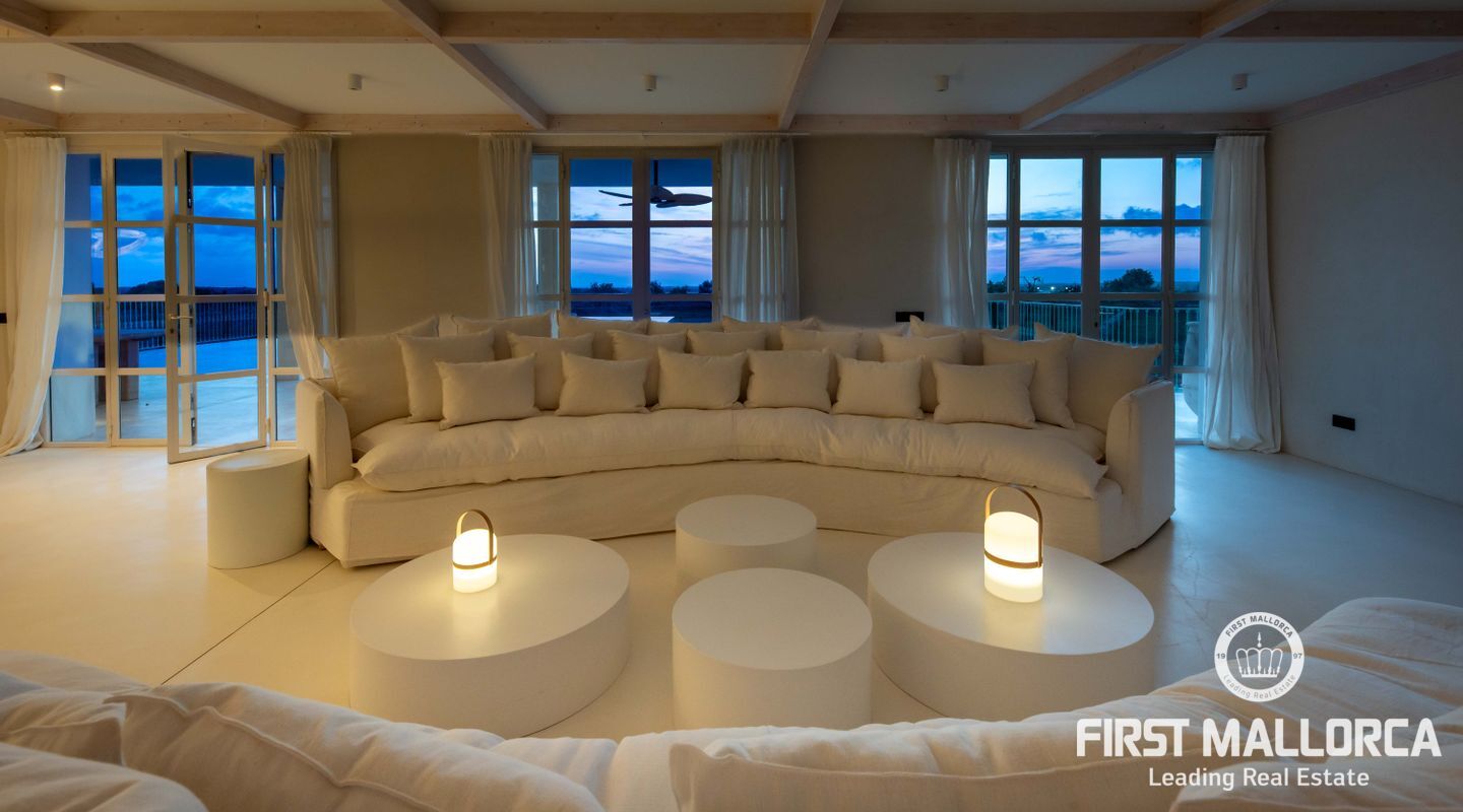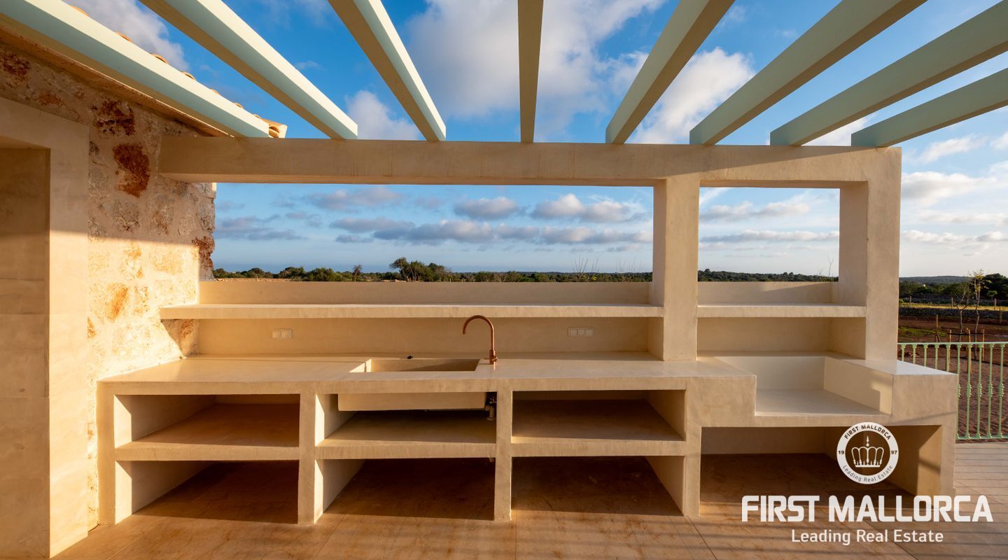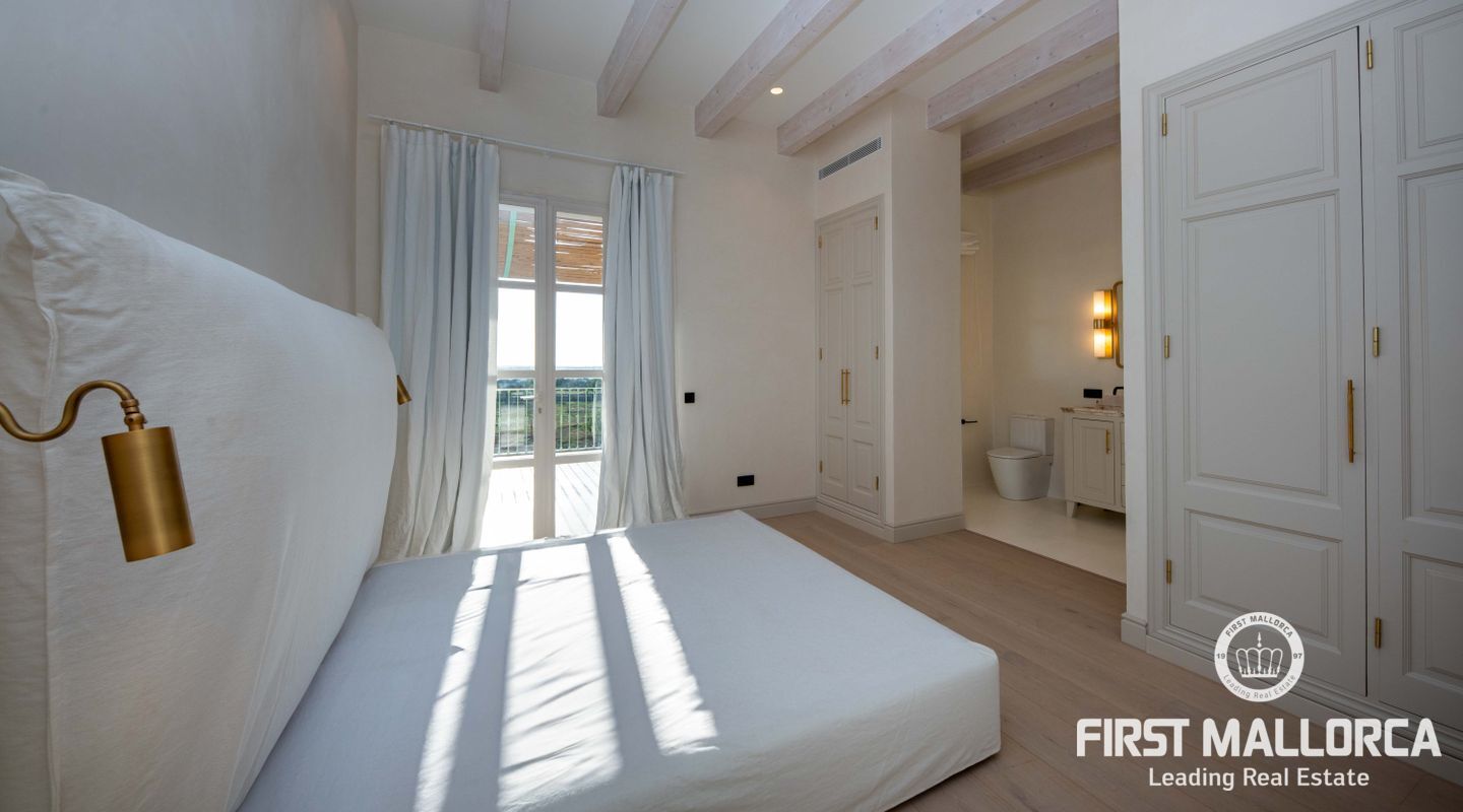 Esta finca se ha terminado recientemente y, además de su diseño único, le ofrece una vista panorámica de 360° sobre el ambiente rústico del sureste. Se accede a la casa a través de un patio con plantas mediterráneas y juegos de agua. En la planta baja se encuentra el salón-comedor de planta abierta con cocina contigua, así como un dormitorio de invitados con su propio cuarto de baño y terraza privada. La terraza principal tiene acceso desde todas las habitaciones de la planta baja y ofrece una cocina al aire libre, un comedor cubierto y un salón al aire libre, la gran piscina infinita, así como fantásticas vistas sobre el paisaje virgen, Ses Salines, Randa, Cabrera y el mar. En la primera planta hay tres dormitorios más, cada uno con baño en suite. El dormitorio principal también ofrece un amplio vestidor y acceso a una terraza cubierta, mientras que lo más destacado de esta luminosa finca de nueva construcción es la zona exterior mediterránea con su espaciosa terraza con una gran piscina.
