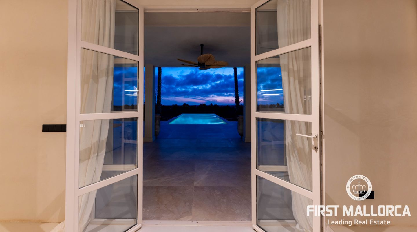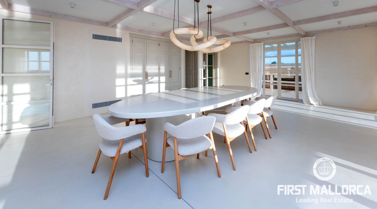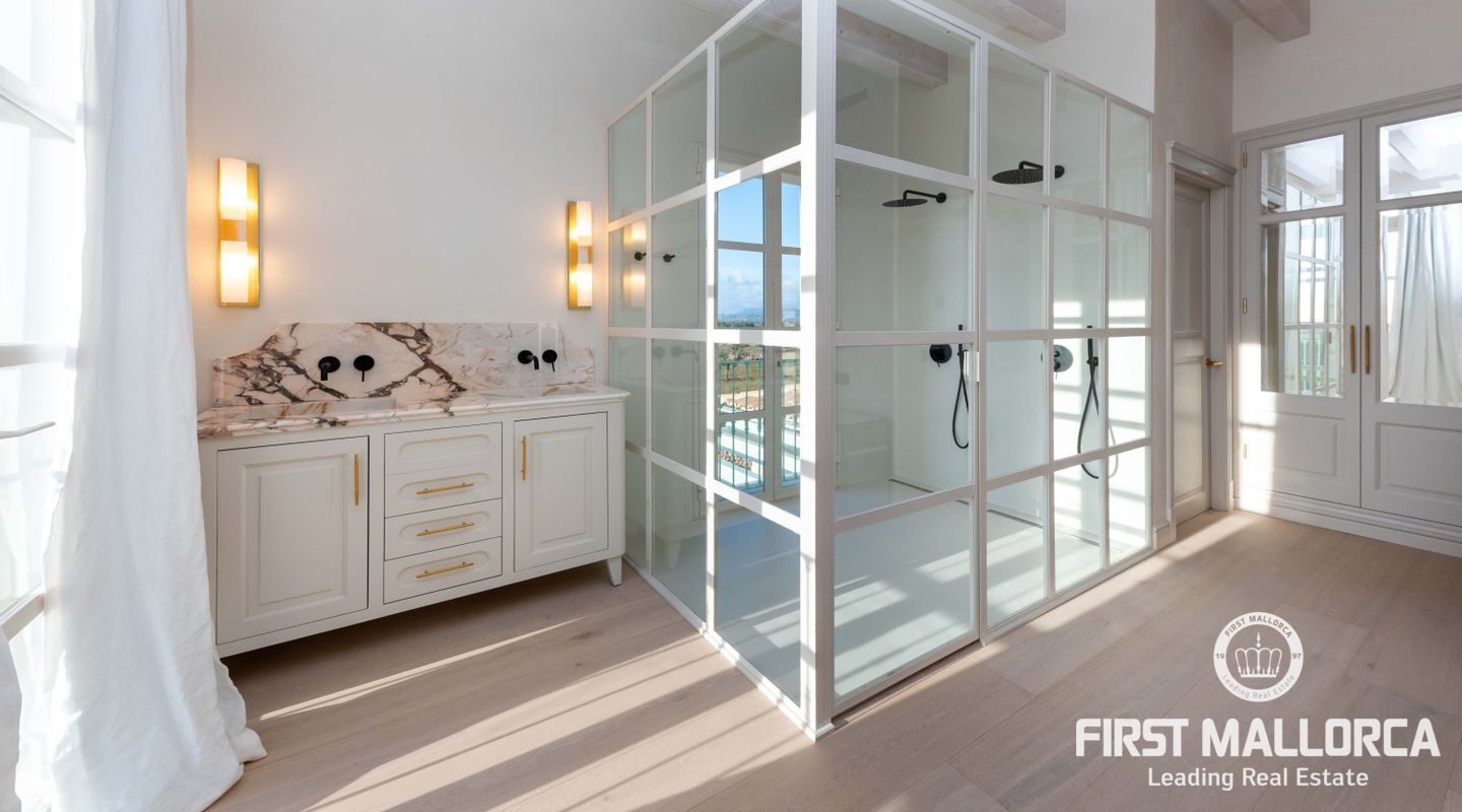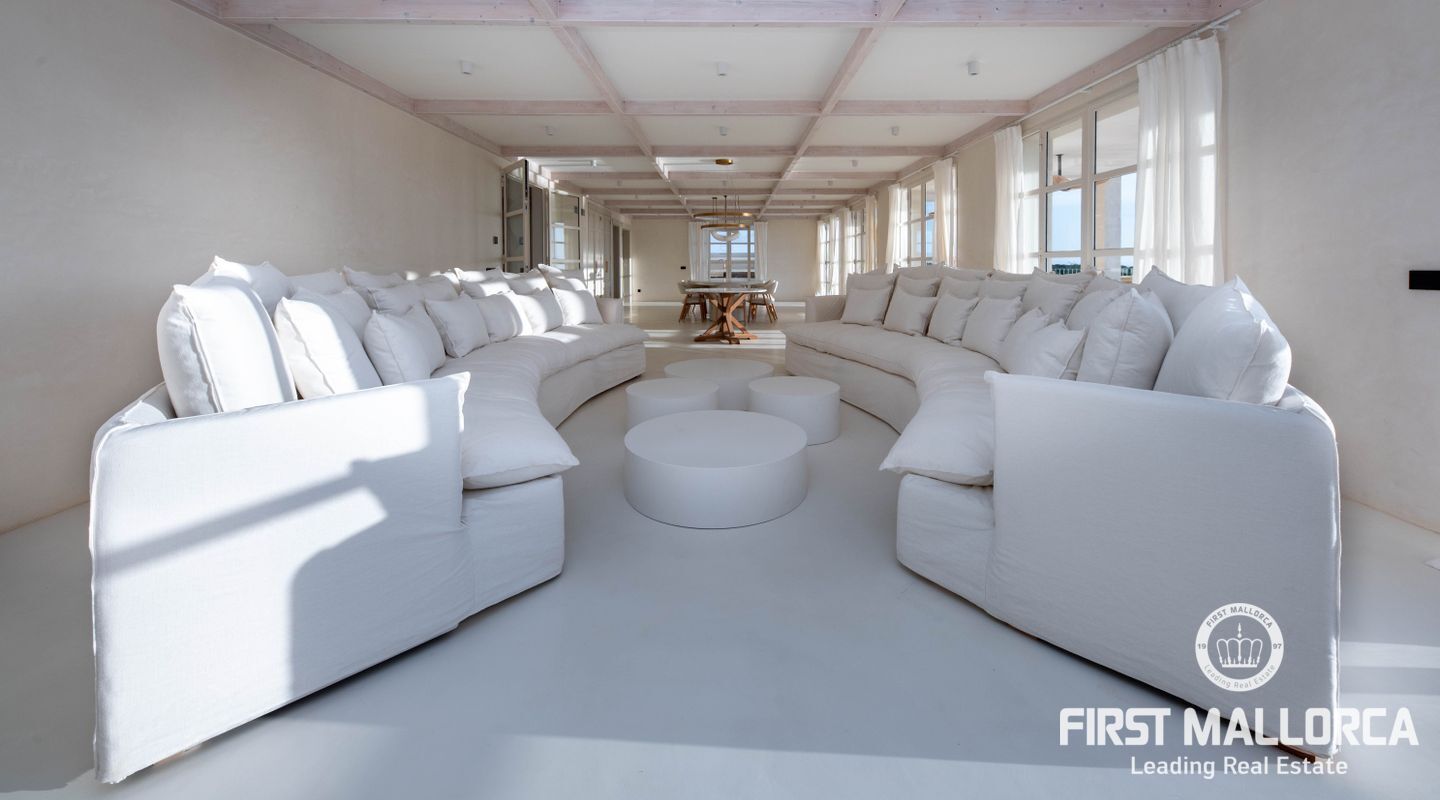 Esta finca se ha terminado recientemente y, además de su diseño único, le ofrece una vista panorámica de 360° sobre el ambiente rústico del sureste. Se accede a la casa a través de un patio con plantas mediterráneas y juegos de agua. En la planta baja se encuentra el salón-comedor de planta abierta con cocina contigua, así como un dormitorio de invitados con su propio cuarto de baño y terraza privada. La terraza principal tiene acceso desde todas las habitaciones de la planta baja y ofrece una cocina al aire libre, un comedor cubierto y un salón al aire libre, la gran piscina infinita, así como fantásticas vistas sobre el paisaje virgen, Ses Salines, Randa, Cabrera y el mar. En la primera planta hay tres dormitorios más, cada uno con baño en suite. El dormitorio principal también ofrece un amplio vestidor y acceso a una terraza cubierta, mientras que lo más destacado de esta luminosa finca de nueva construcción es la zona exterior mediterránea con su espaciosa terraza con una gran piscina.