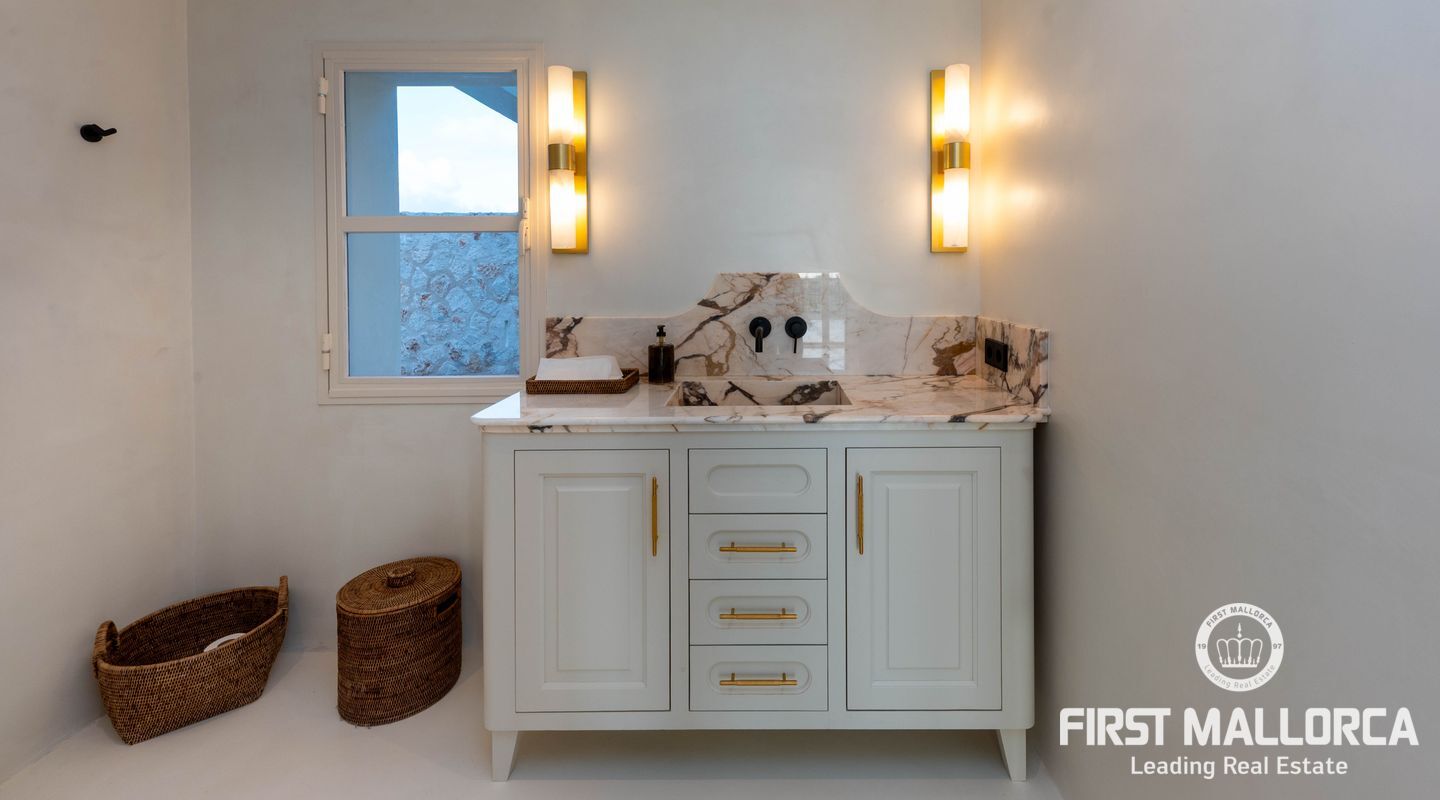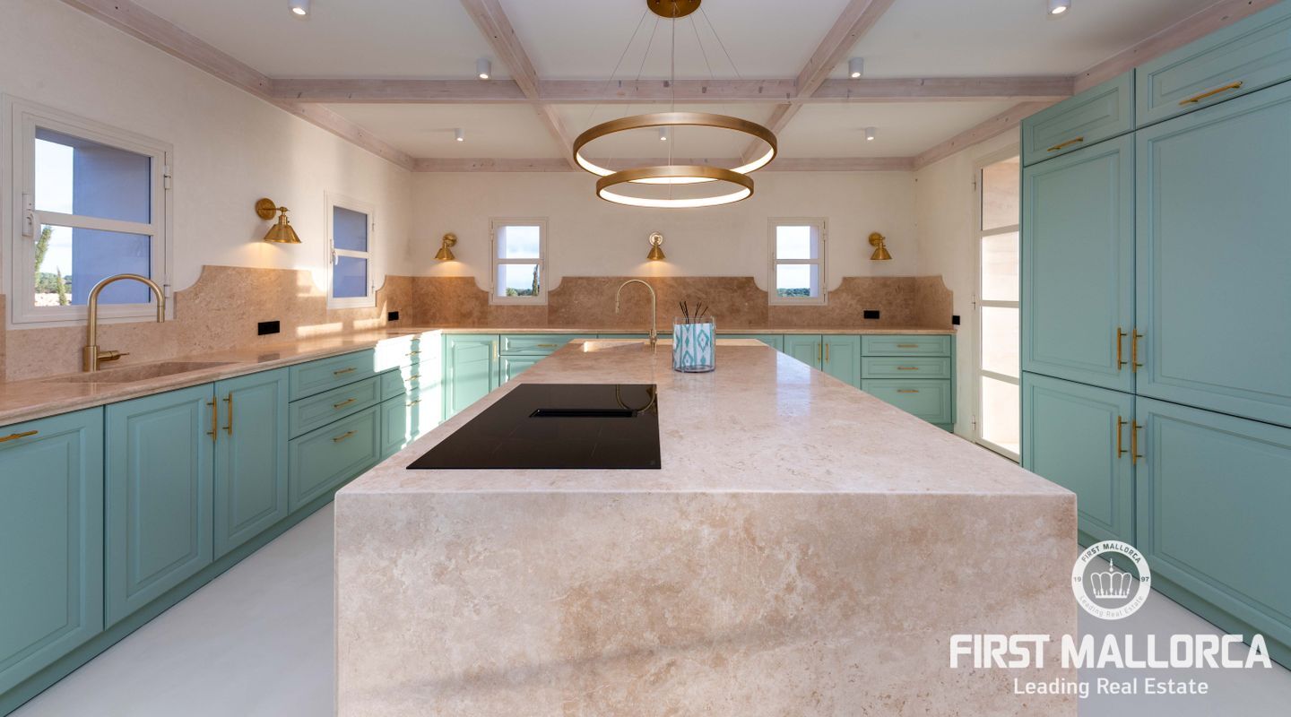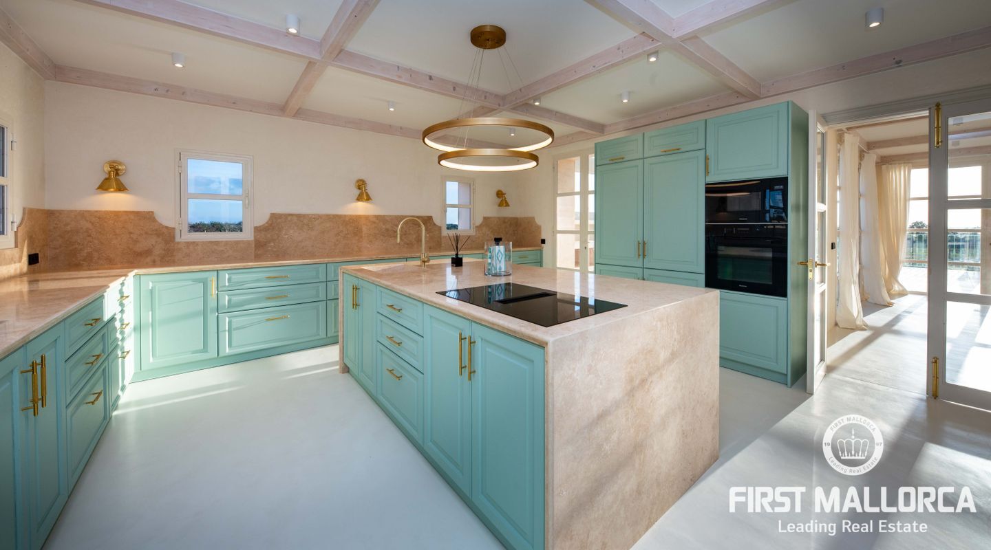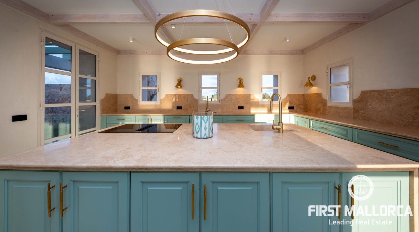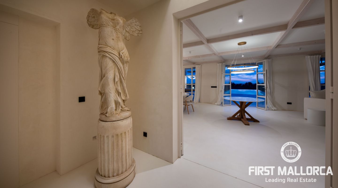 Esta finca se ha terminado recientemente y, además de su diseño único, le ofrece una vista panorámica de 360° sobre el ambiente rústico del sureste. Se accede a la casa a través de un patio con plantas mediterráneas y juegos de agua. En la planta baja se encuentra el salón-comedor de planta abierta con cocina contigua, así como un dormitorio de invitados con su propio cuarto de baño y terraza privada. La terraza principal tiene acceso desde todas las habitaciones de la planta baja y ofrece una cocina al aire libre, un comedor cubierto y un salón al aire libre, la gran piscina infinita, así como fantásticas vistas sobre el paisaje virgen, Ses Salines, Randa, Cabrera y el mar. En la primera planta hay tres dormitorios más, cada uno con baño en suite. El dormitorio principal también ofrece un amplio vestidor y acceso a una terraza cubierta, mientras que lo más destacado de esta luminosa finca de nueva construcción es la zona exterior mediterránea con su espaciosa terraza con una gran piscina.