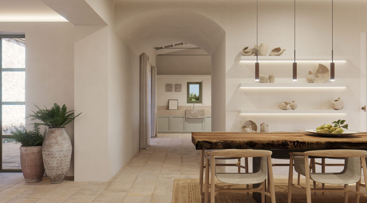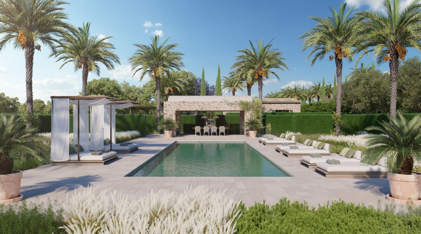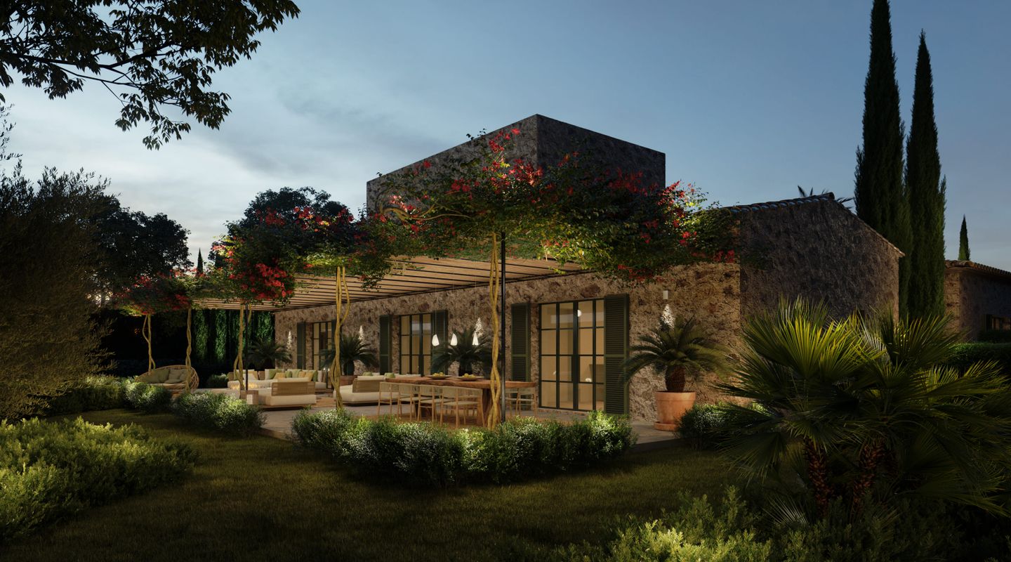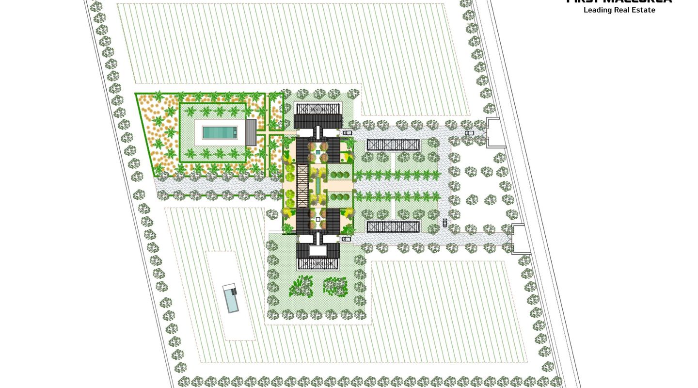 Situada en la parte sur de la isla de Mallorca, esta finca mallorquina rodeada de sus propios viñedos lleva la elegancia y la grandeza a nuevas cotas. La propiedad se encuentra a tan sólo 2 km de la increíble y paradisíaca playa de Es Trenc, detrás del parque natural protegido, y a sólo 35 minutos del aeropuerto. En el proyecto se ha defendido la utilización de materiales de construcción naturales y sostenibles, aquellos que además aportan calidez y humanidad: piedra, cal, madera, caña, etc. De dimensiones impresionantes, la casa de campo está segregada en dos edificios para uso como vivienda principal y zona de invitados, separados por un patio de elegancia atemporal con una fuente, con una parcela de 3,5 ha y un interior total de aprox. 1.100 m2. La propiedad dispone de siete dormitorios con baños en suite, dos cocinas (una de ellas profesional), bodega, cine, gimnasio y SPA. En la zona de ocio exterior, disfrutarás de una gran piscina con solárium y cocina exterior. El diseño arquitectónico rural combina detalles tradicionales como las contraventanas mediterráneas, la cubierta de teja árabe y los caminos de losas con sutiles y cálidos tonos pastel en las paredes. La abundancia de grandes ventanales, patios y terrazas adyacentes, algunos cubiertos y todos orientados en distintas direcciones, integra el exterior de la finca que cuenta con un impresionante proyecto de paisajismo, incluyendo una amplia zona de viñedos propios, palmeras, olivos y todo tipo de vegetación que hará de esta finca una auténtica joya mediterránea. La finca cuenta con 1,6 hectáreas de viñedos de tipo Merlot que, si es gusto del comprador, podrá participar en el proyecto desarrollado por las fincas contiguas para la producción de un vino conjunto, mezclando los diferentes tipos de uvas para dos usos: comercialización en pequeña escala o consumo propio. En línea a este proyecto la casa cuenta con una impresionante bodega de diseño que contará por un lado, con una cava con capacidad para 1.000 botellas con un espacio donde catar vinos y, por otro, con un gran comedor donde disfrutar de comidas y cenas. Si es su deseo estrenar esta impresionante y única propiedad no dude en ponerse en contacto con el equipo de ventas de First Mallorca.