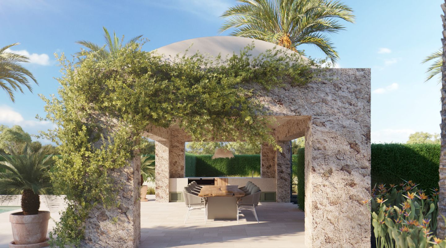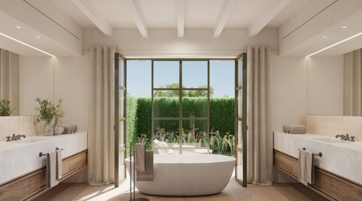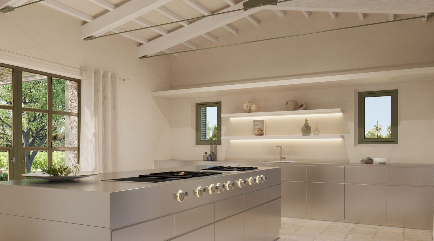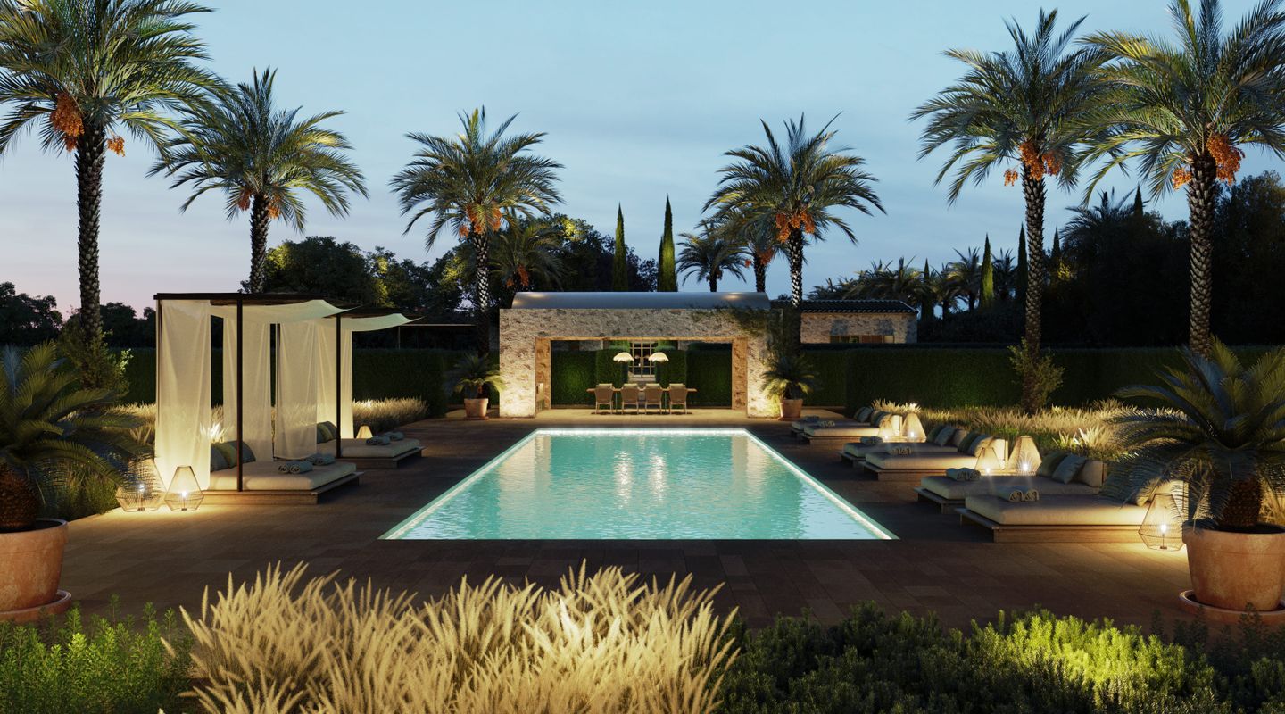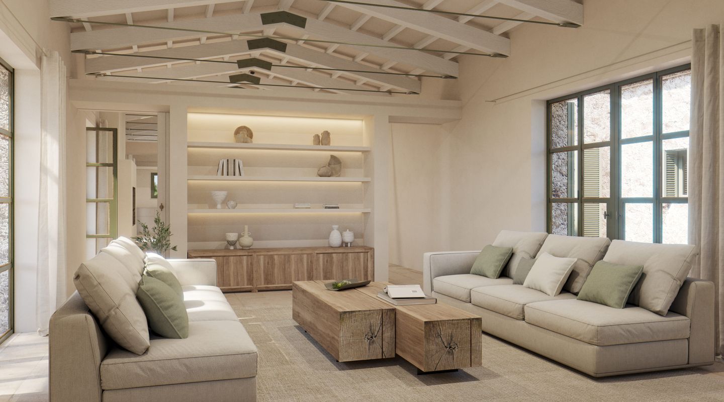 Situada en la parte sur de la isla de Mallorca, esta finca mallorquina rodeada de sus propios viñedos lleva la elegancia y la grandeza a nuevas cotas. La propiedad se encuentra a tan sólo 2 km de la increíble y paradisíaca playa de Es Trenc, detrás del parque natural protegido, y a sólo 35 minutos del aeropuerto. En el proyecto se ha defendido la utilización de materiales de construcción naturales y sostenibles, aquellos que además aportan calidez y humanidad: piedra, cal, madera, caña, etc. De dimensiones impresionantes, la casa de campo está segregada en dos edificios para uso como vivienda principal y zona de invitados, separados por un patio de elegancia atemporal con una fuente, con una parcela de 3,5 ha y un interior total de aprox. 1.100 m2. La propiedad dispone de siete dormitorios con baños en suite, dos cocinas (una de ellas profesional), bodega, cine, gimnasio y SPA. En la zona de ocio exterior, disfrutarás de una gran piscina con solárium y cocina exterior. El diseño arquitectónico rural combina detalles tradicionales como las contraventanas mediterráneas, la cubierta de teja árabe y los caminos de losas con sutiles y cálidos tonos pastel en las paredes. La abundancia de grandes ventanales, patios y terrazas adyacentes, algunos cubiertos y todos orientados en distintas direcciones, integra el exterior de la finca que cuenta con un impresionante proyecto de paisajismo, incluyendo una amplia zona de viñedos propios, palmeras, olivos y todo tipo de vegetación que hará de esta finca una auténtica joya mediterránea. La finca cuenta con 1,6 hectáreas de viñedos de tipo Merlot que, si es gusto del comprador, podrá participar en el proyecto desarrollado por las fincas contiguas para la producción de un vino conjunto, mezclando los diferentes tipos de uvas para dos usos: comercialización en pequeña escala o consumo propio. En línea a este proyecto la casa cuenta con una impresionante bodega de diseño que contará por un lado, con una cava con capacidad para 1.000 botellas con un espacio donde catar vinos y, por otro, con un gran comedor donde disfrutar de comidas y cenas. Si es su deseo estrenar esta impresionante y única propiedad no dude en ponerse en contacto con el equipo de ventas de First Mallorca.