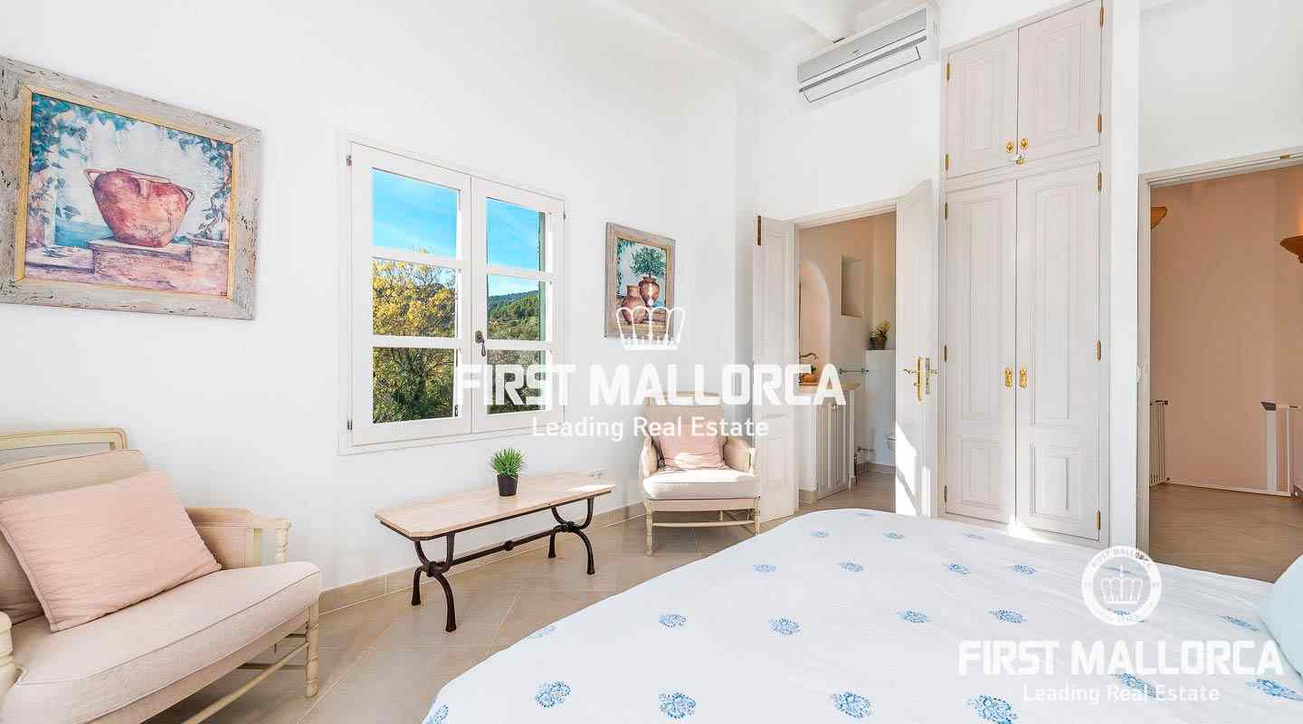 Esta encantadora casa de campo, con un solar de aproximadamente 4.867 m², se encuentra a las afueras de Alaró y disfruta de fantásticas vistas a su entorno y la imponente Serra de Tramuntana. La casa principal tiene en la planta baja un salón-comedor con cocina abierta que goza de mucho encanto y luz natural gracias a grandes ventanales y su techo de vigas de madera blanca. La chimenea de ladrillo brinda un ambiente muy acogedor, sobre todo en los días más fríos del año. En la planta superior hay 2 dormitorios, cada uno con baño en suite.