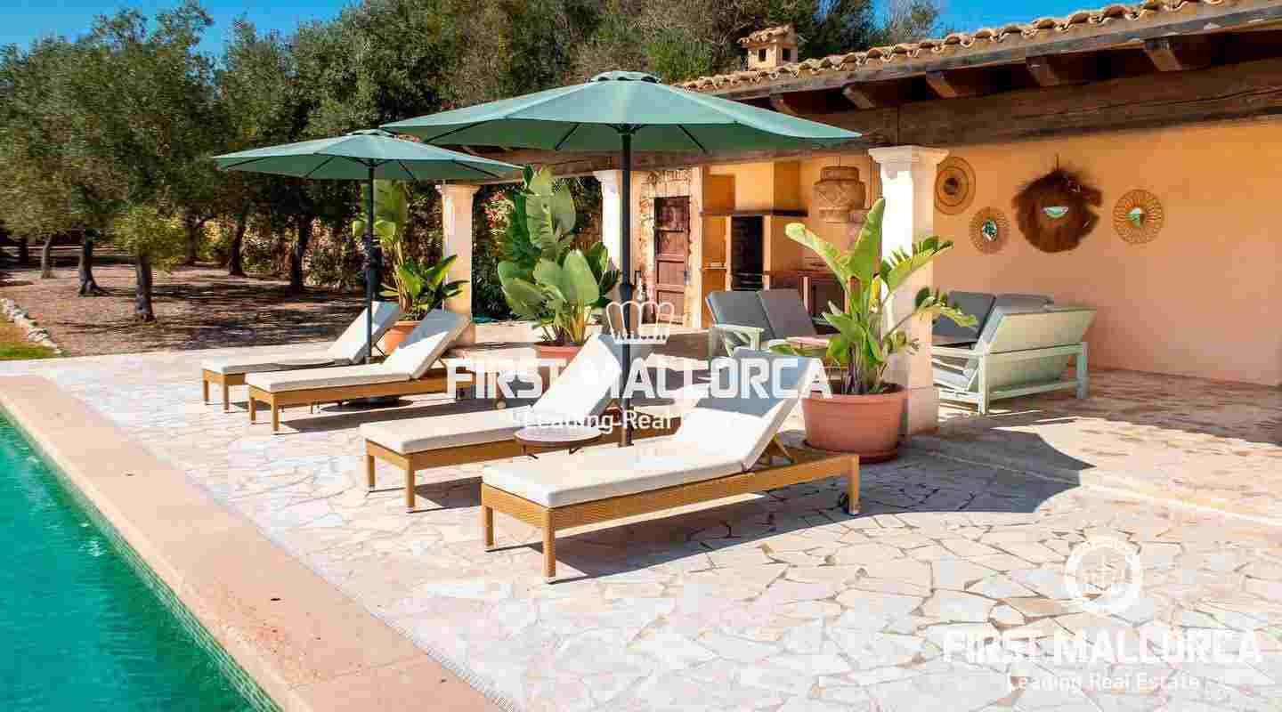 Esta masiva finca se encuentra a 2 kilometros de la famosa cala de Cala Llombards y Caló des Moro. Tiene unas vistas preciosas al mar y la Naturaleza que la envuelve. Su plantación con más de 300 olivos saluda a todo visitante que se adentra en la finca, para descubrir una majestuosa finca con sabor, con calidades excepcionales y con mucho carácter. El interior de la finca se asemeja a una vieja hacienda, con techos altos, espacios muy amplios y chimeneas repartidas por toda la casa. Diferentes ambientes y salones, cocina perfectamente equipada, un dormitorio con baño en suite. coladuría y un baño de invitados, así como la majestuosa entrada con una amplisima escalera que conduce a otros 4 dormitorios con baño en suite. Todas las estancias en la planta baja tiene acceso al exterior y desde la primera planta, preciosas vistas al mar y el entorno. Sus espacios exteriores, sus diferentes terrazas, su gran piscina y casita con barbacoa, así como pista de bolos, y cancha de petanca, ofrecen numerosos espacios al sol o la sombra para dejar que el alma descanse y evadirse del dia a dia. ideal para una gran familia y muchos amigos, cuenta también con una licencia de alquiler vacacional para 10 PAX, lo que la dota de un valor mayor y la fortalece como una inversión segura.