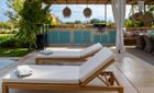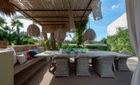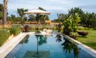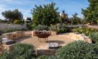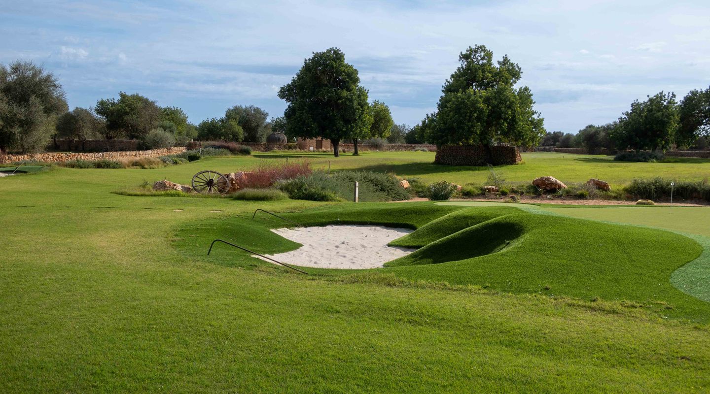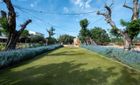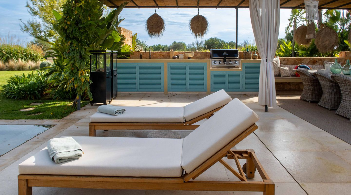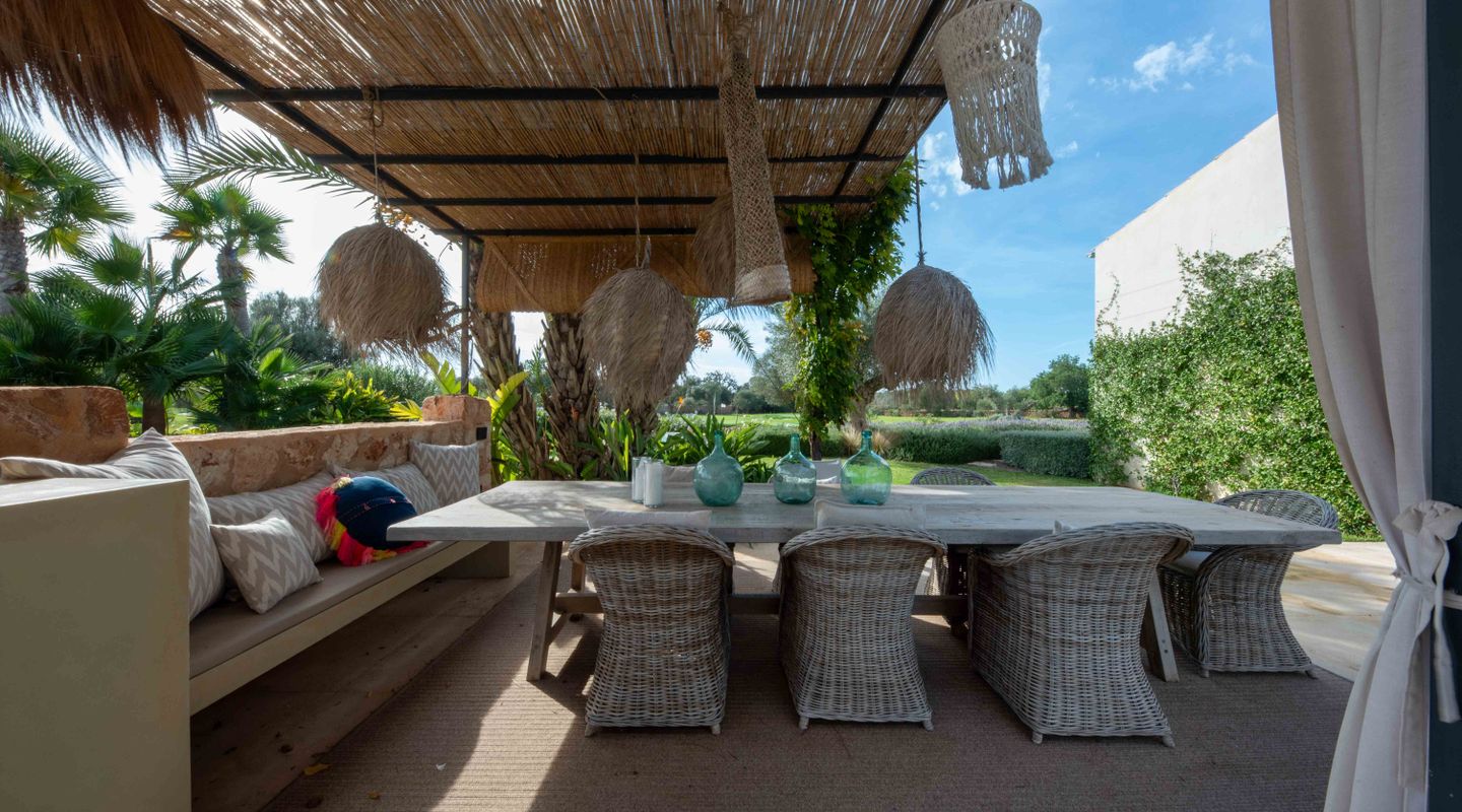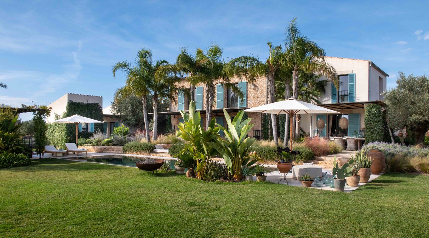 El extenso jardín, diseñado por un reconocido paisajista de la isla, es un auténtico paraíso para los amantes de la naturaleza y el diseño. Vegetación mediterránea y exótica, huertos de frutas y verduras, estanques, iluminación ambiental, zonas de fuego y rincones de descanso crean una atmósfera de armonía y serenidad. Entre sus destacados se incluyen un campo de golf privado de 10.000 m² (con 4 greens, 16 tees, 8 bunkers y una zona de práctica), una piscina climatizada (12,5 m x 3,5 m), una pista de petanca, un parque infantil y amplias zonas de aparcamiento.