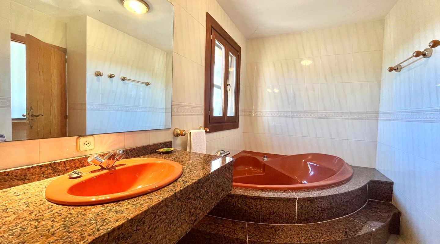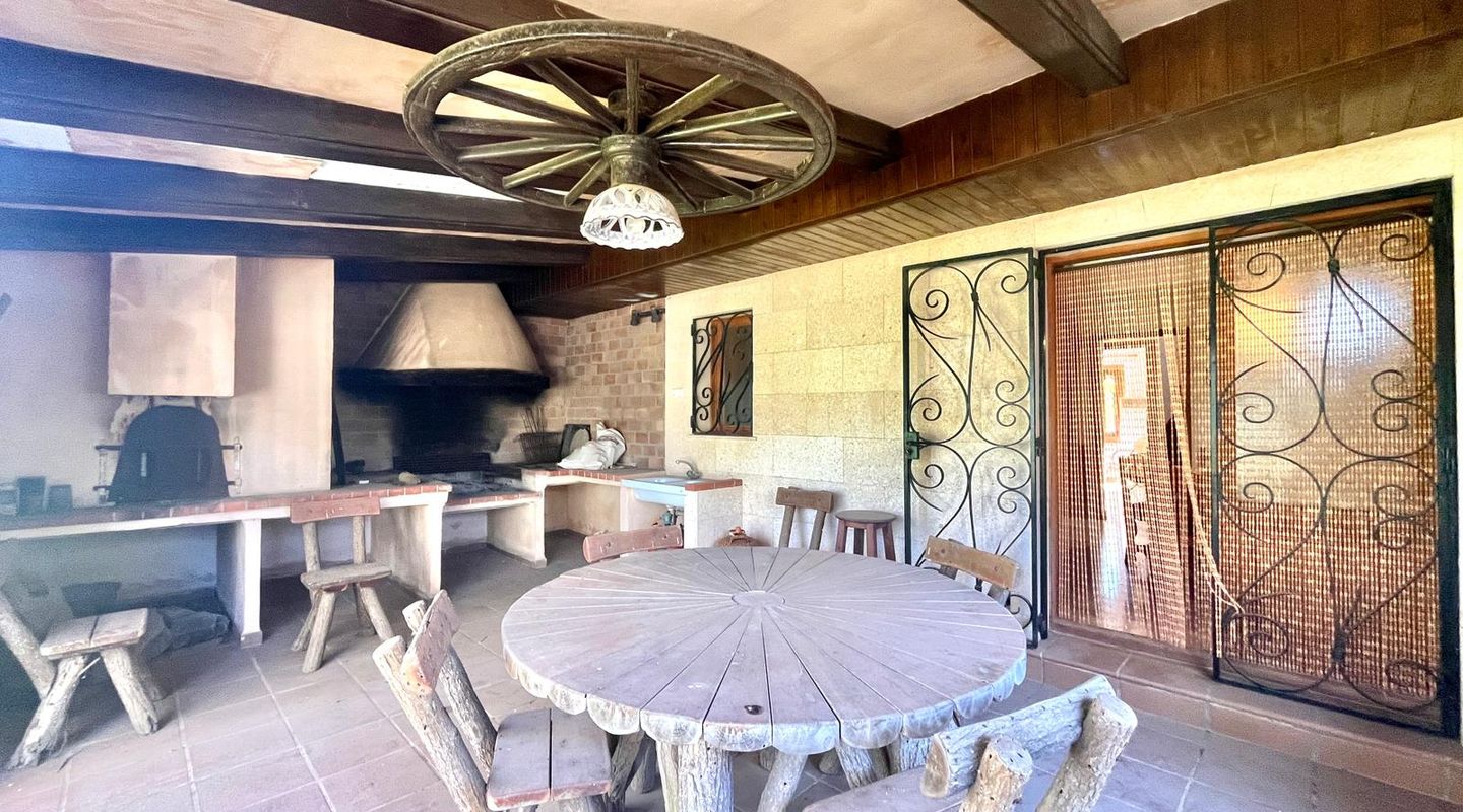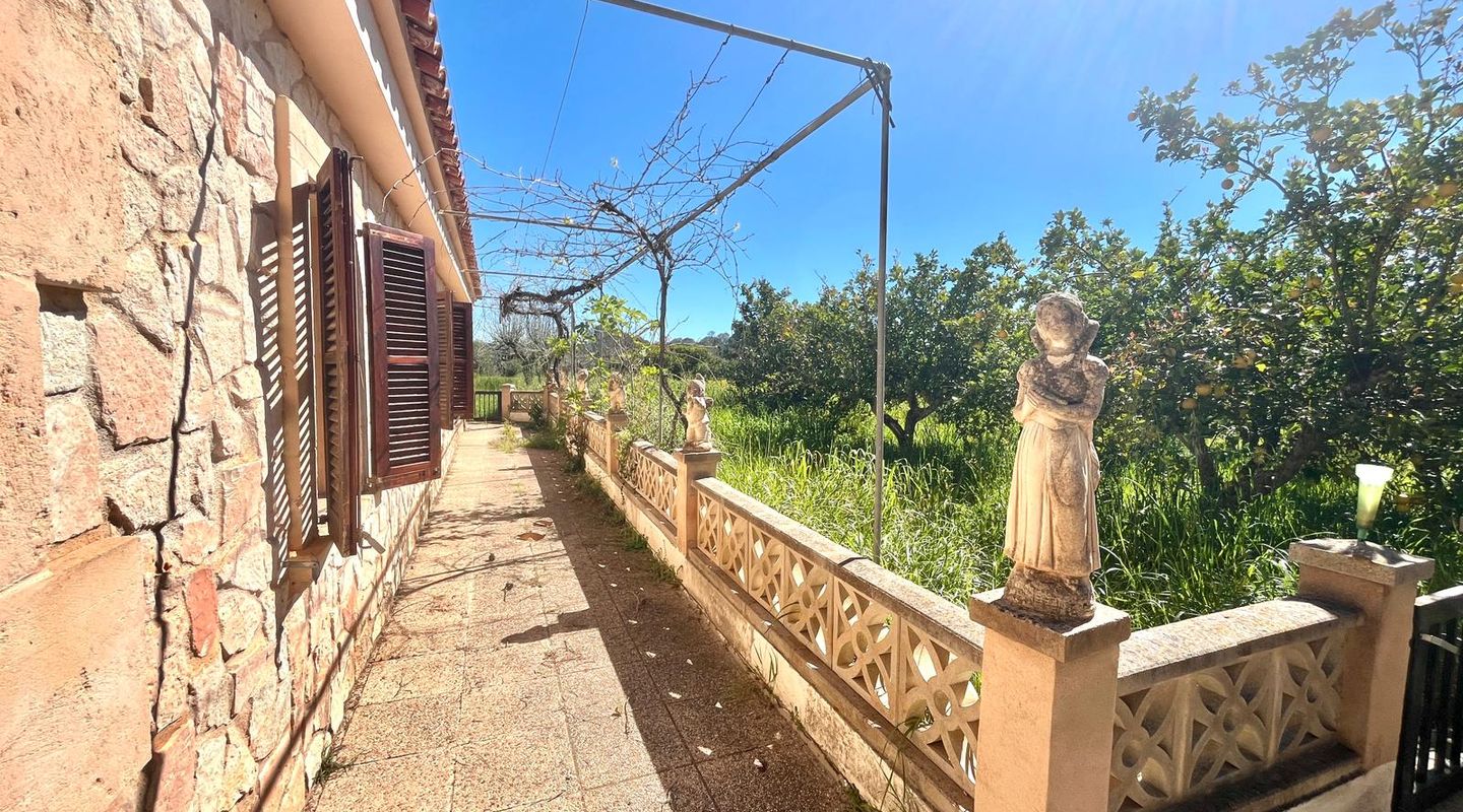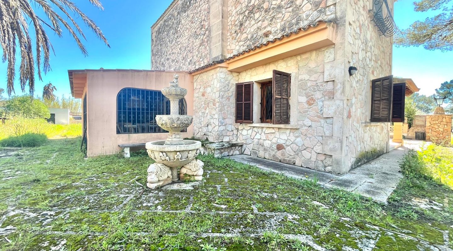 Encantadora finca rústica mallorquina toda forrada de piedra. La casa está situada al final de un camino rodeada de árboles y ofrece paz y tranquilidad. Con una parcela de 60.985m2 y 335m2 construidos, dispone de 4 dormitorios, 2 baños y un aseo (dormitorio principal con baño en suite y acceso a una gran terraza con vistas despejadas a parte de la finca), cocinas, barbacoas. Tiene varias construcciones exteriores aparte de la casa principal, safereig (que se puede utilizar como piscina), frontón, casita de madera para niños y una construcción exterior para animales. El agua se puede recoger del pozo y la electricidad es de Gesa Endesa. La finca tiene varias chimeneas y un amplio trastero. Toda la parcela está vallada con piedra y con varios árboles frutales, entre ellos olivos en producción. Calefacción central de gasoil. A sólo 20 minutos de Palma y cerca del campo de golf de Son Gual. No dude en contactar con FIRST MALLORCA para más información o para concertar una visita. Nuestro equipo está a su disposición en todo momento.