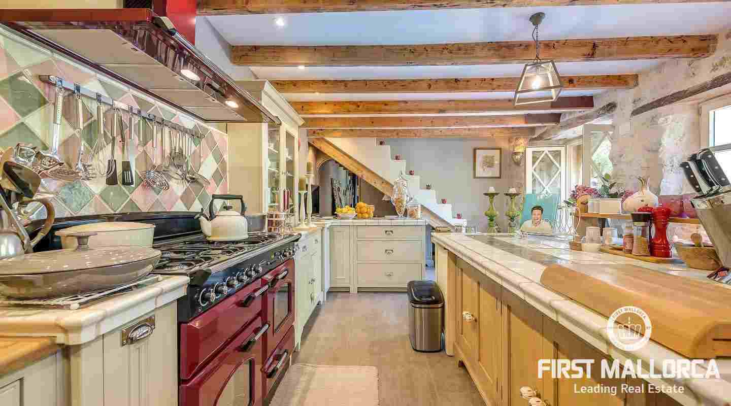 La finca dispone de 2 cocinas profesionalmente equipadas, 3 dormitorios y 3 baños. 2 de los dormitorios se encuentran en la casa principal, el otro está en el apartamento de invitados y cuenta con un baño en suite. Otras características de esta hermosa propiedad incluyen una chimenea de diseño, aire acondicionado, un lavadero, paredes de piedra natural y techos con vigas de madera.