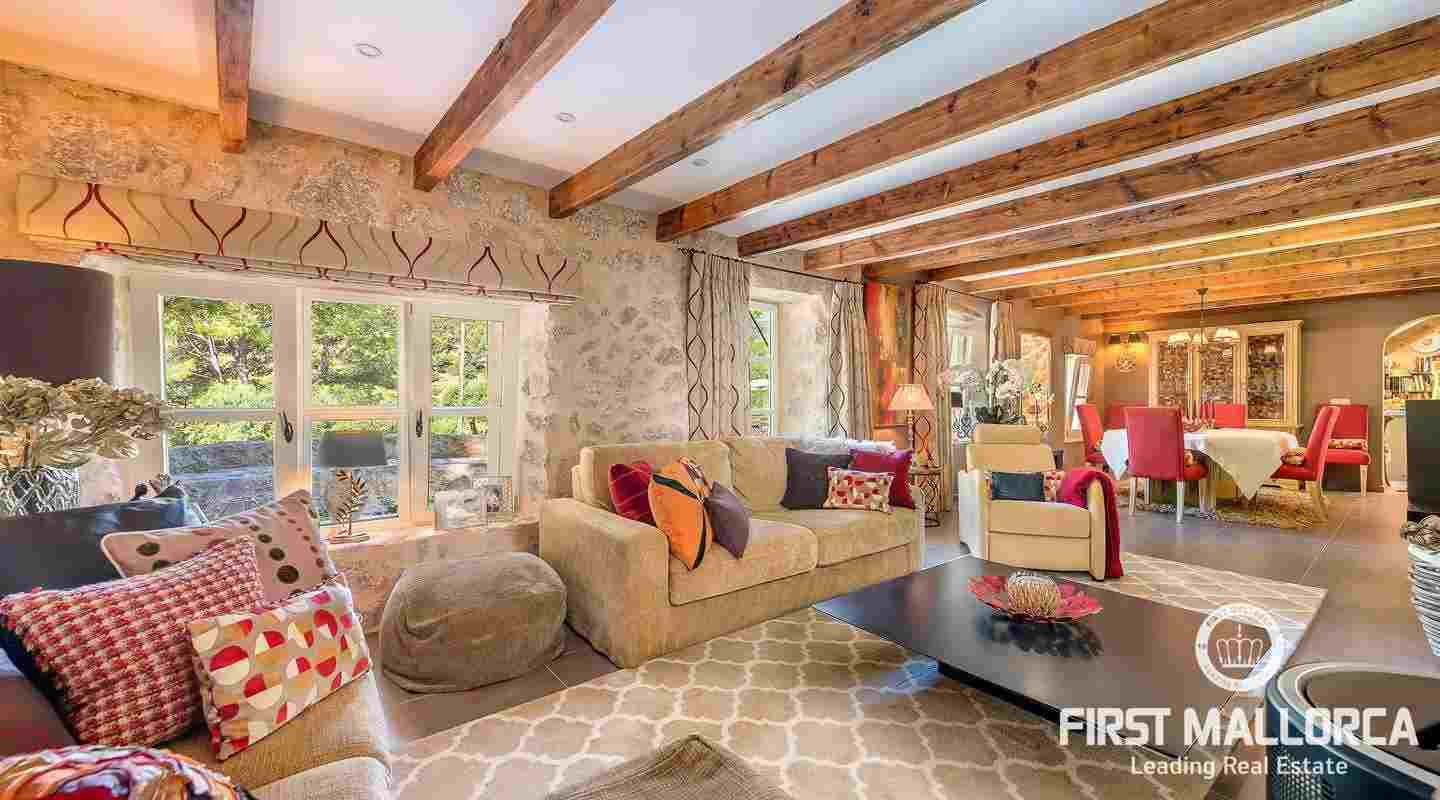 En los últimos años esta propiedad se convirtió poco a poco en lo que es ahora: una verdadera joya en el suroeste de Mallorca. La casa de campo destaca sobre todo por su hermosa área exterior, que cuenta con 7 terrazas, una piscina y muchas zonas que invitan a descansar y tomar el sol.
