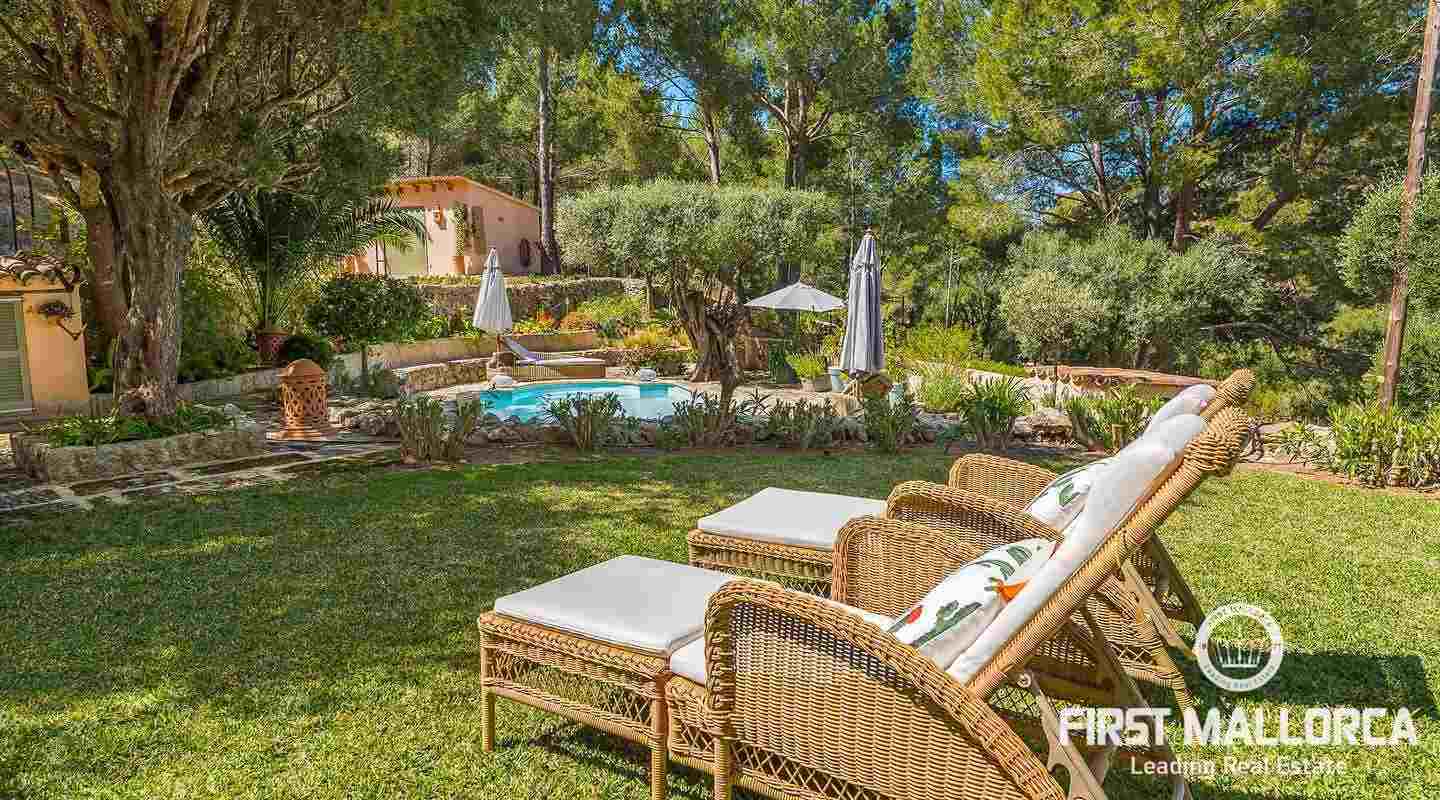 En absoluta privacidad en las afueras de S'Arracó, a solo 5 minutos en coche de Puerto de Andratx, se encuentra esta preciosa finca completamente modernizada y restaurada, en un amplio solar de 11.306 m².