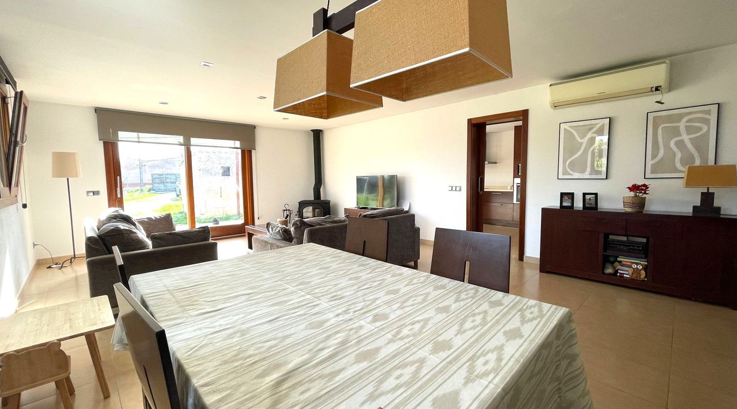 Todo el interior está iluminado con luz natural, complementada por una acogedora chimenea de la reconocida marca Jotul.