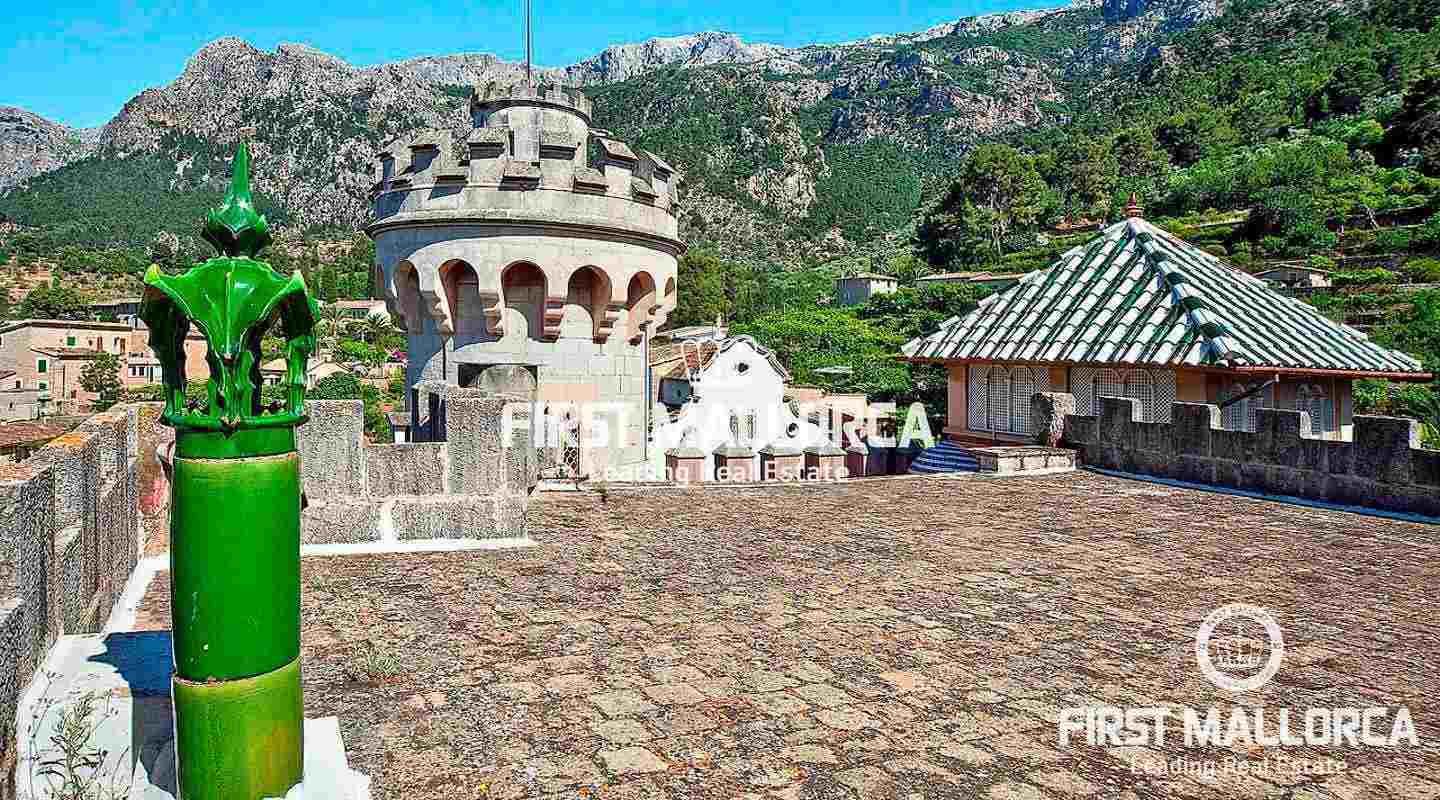 Una obra maestra arquitectónica con elementos modernistas en posición elevada con vistas panorámicas al mar, el pueblo de Sóller, el entorno rural y las montañas. El castillo data de 1890 y se encuentra sobre un solar de 2014 m². La amplia propiedad al estilo de un antiguo castillo dispone de 10 dormitorios, 5 baños y una casa adicional de invitados. La superficie construida consta de 908 m², más 100 m² de terrazas descubiertas. La propiedad con mucho potencial necesita una reforma. Se sitúa a pocos pasos del centro con sus bonitos restaurantes, cafeterías y tiendas. El aeropuerto internacional se encuentra a unos 25 minutos en coche.