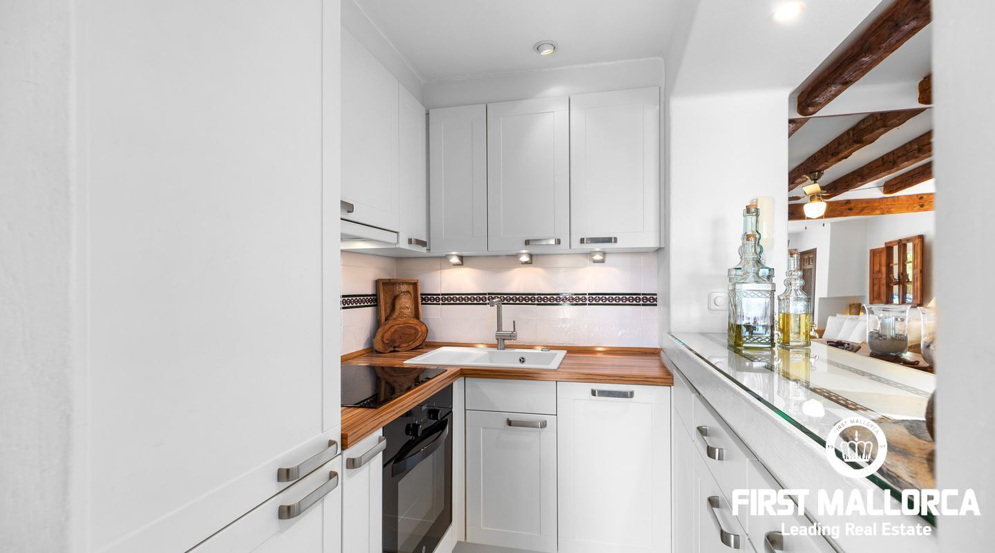 Las puestas de sol en el mar también son fantásticas de ver. El complejo tiene encanto mallorquín, está bien mantenido y se encuentra en una calle sin salida, por lo que hay poco tráfico en la calle y es muy tranquilo. También hay aire acondicionado, calefacción por suelo radiante y la posibilidad de alquilar un trastero por 60 € al mes.
