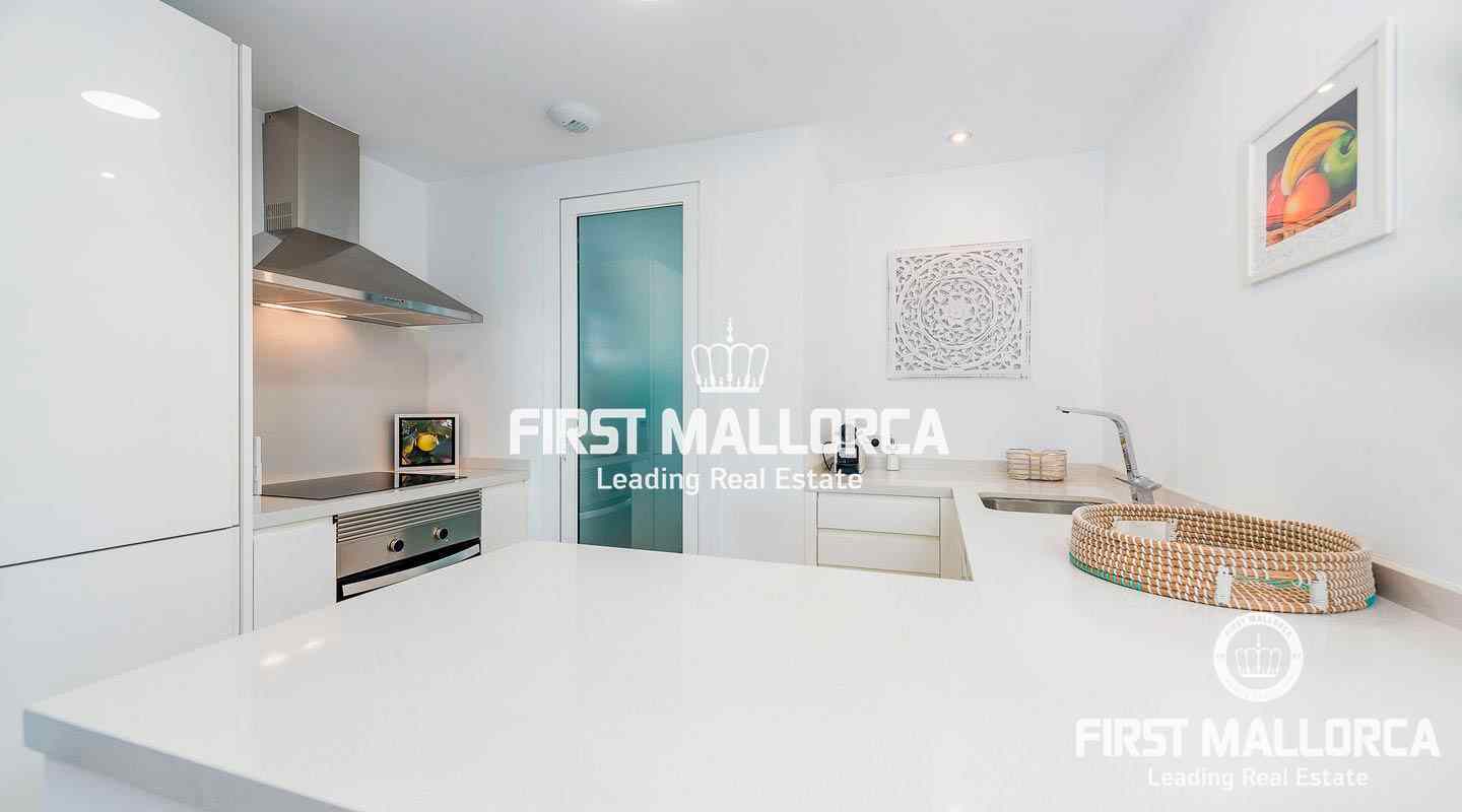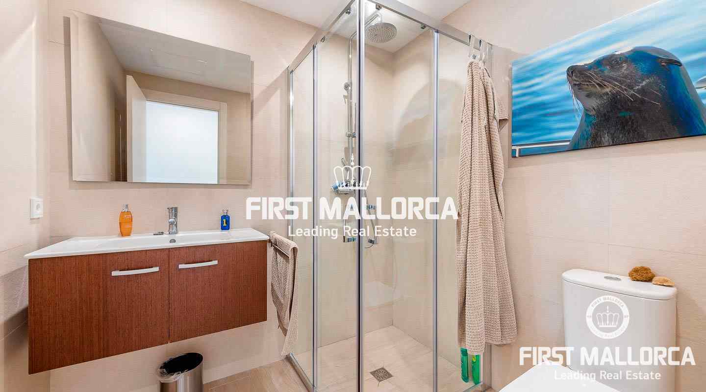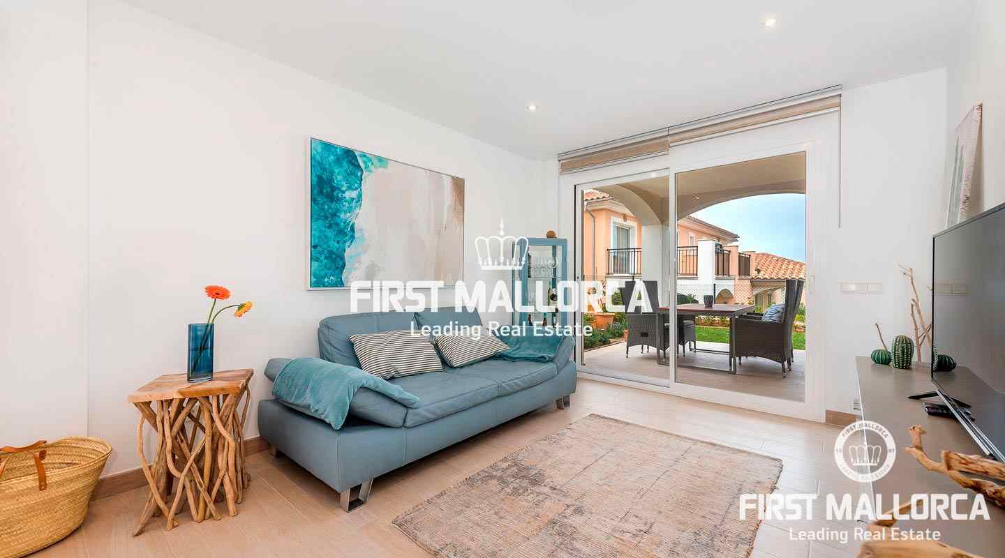 Este moderno apartamento bañado en luz se encuentra en la planta baja de una nueva comunidad bien cuidada en Colònia de Sant Pere, en la costa norte de Mallorca.