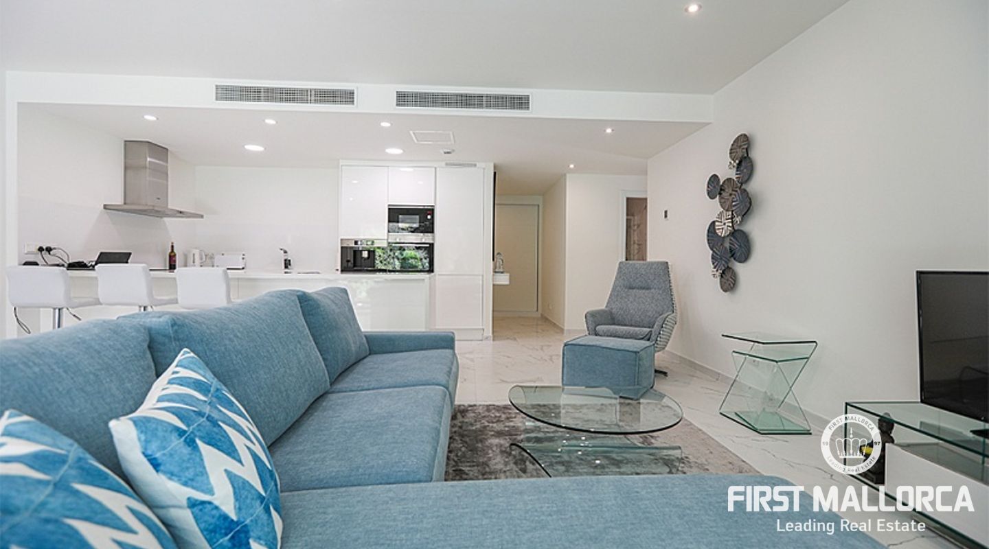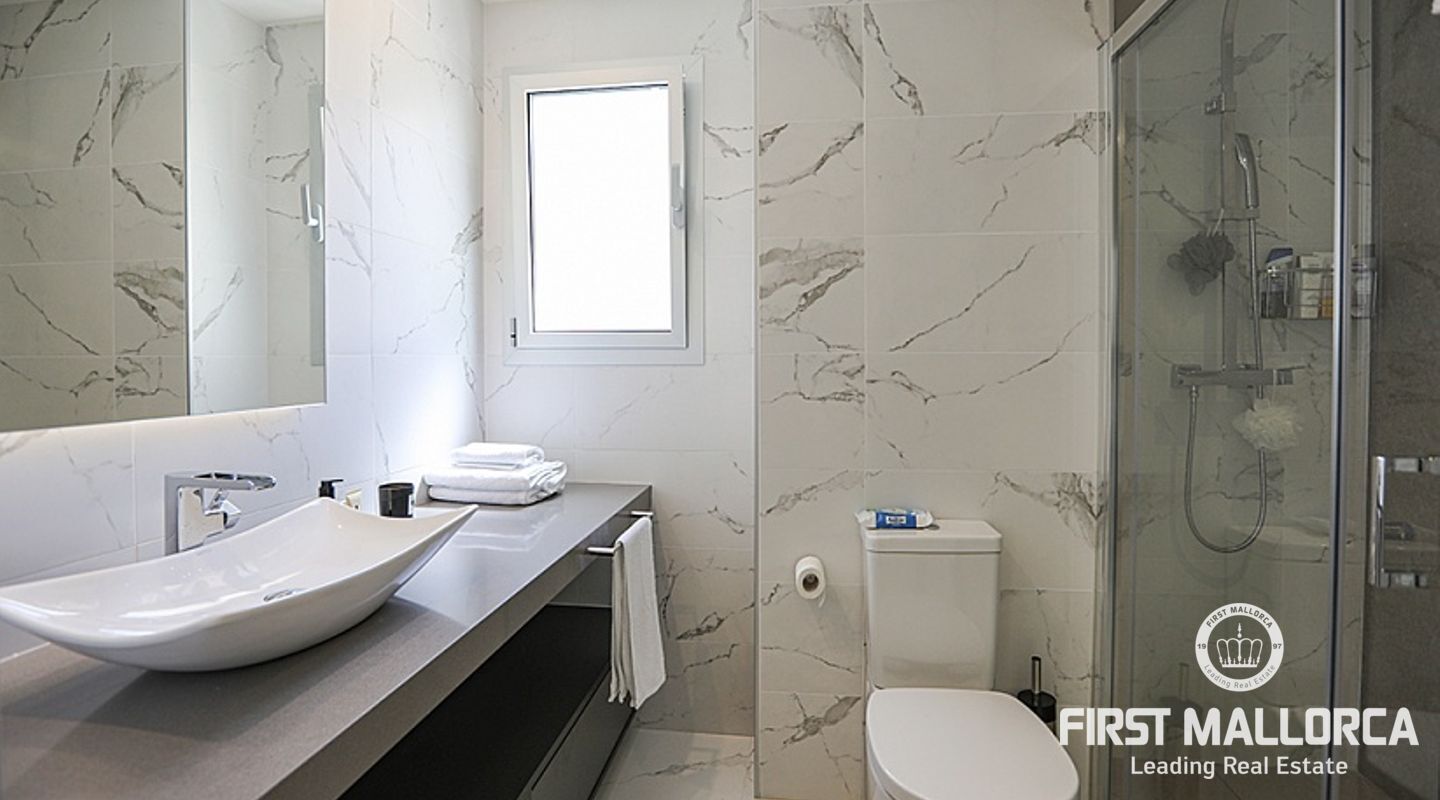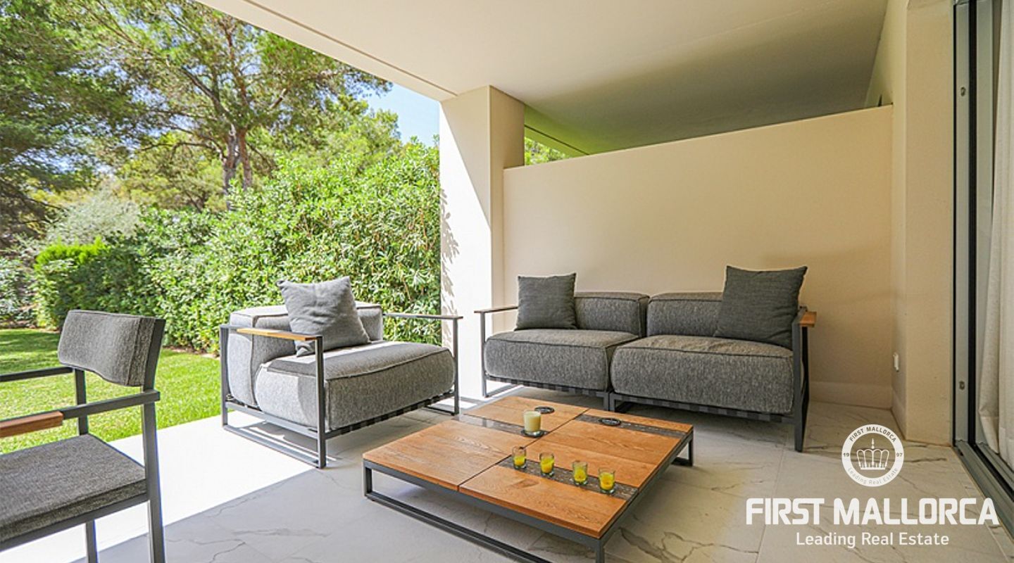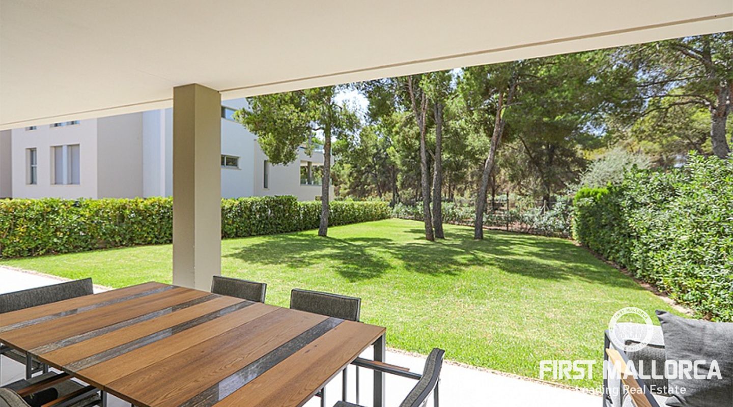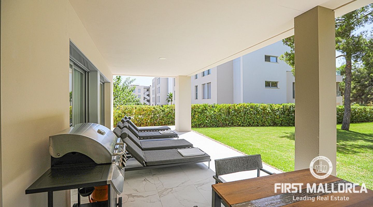 Esta planta baja moderna ofrece todas las comodidades gracias a sus líneas claras y minimalistas y la ubicación privilegiada a poca distancia del exclusivo puerto deportivo Port Adriano. La propiedad con 3 dormitorios y 2 baños impresiona por su excelente calidad y excelente relación calidad-precio. Una distribución óptima de la habitación y un interior lleno de luz crean un ambiente de vida maravilloso. Hermosos jardines y una maravillosa piscina comunitaria le invitan a disfrutar del buen tiempo de Mallorca al aire libre.