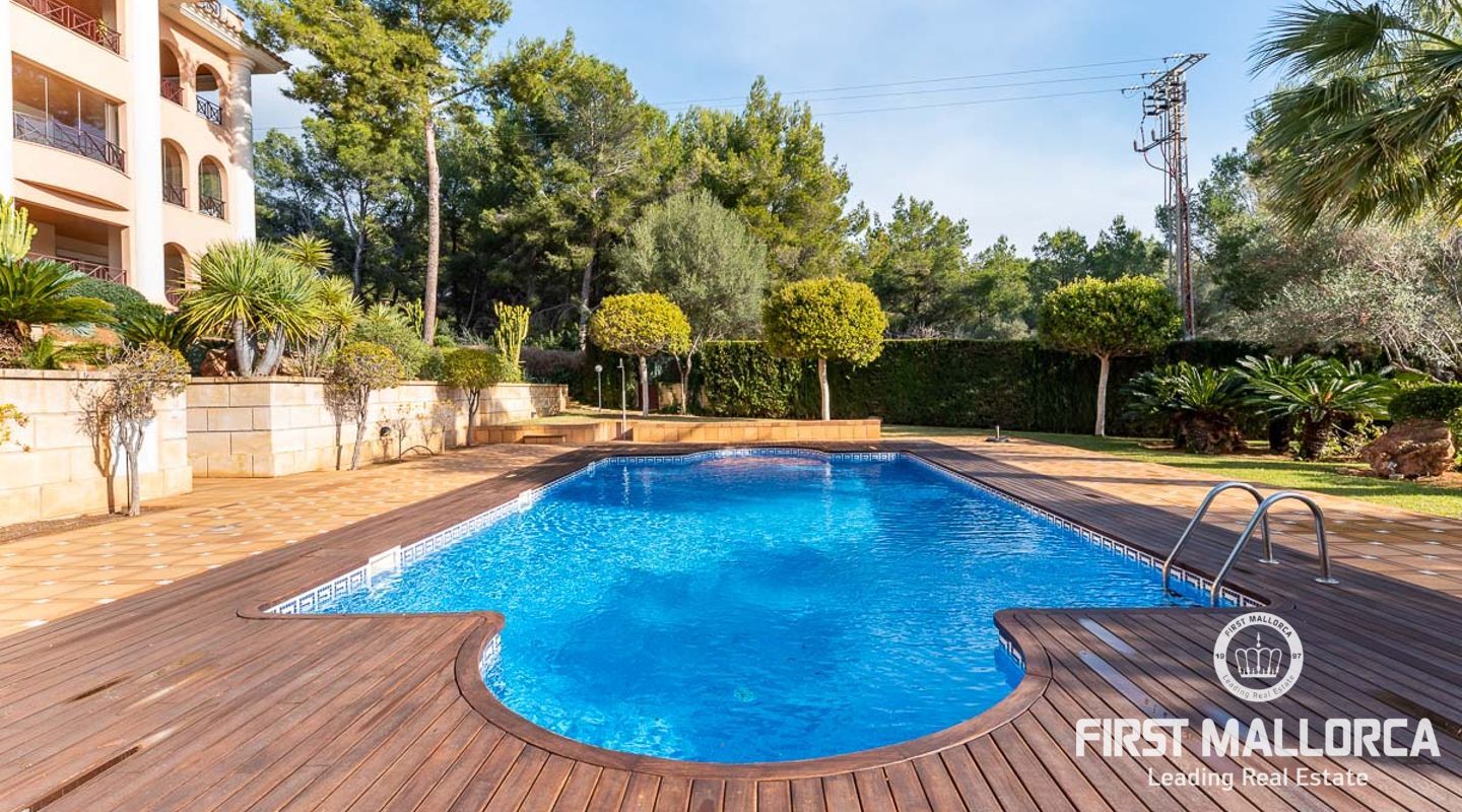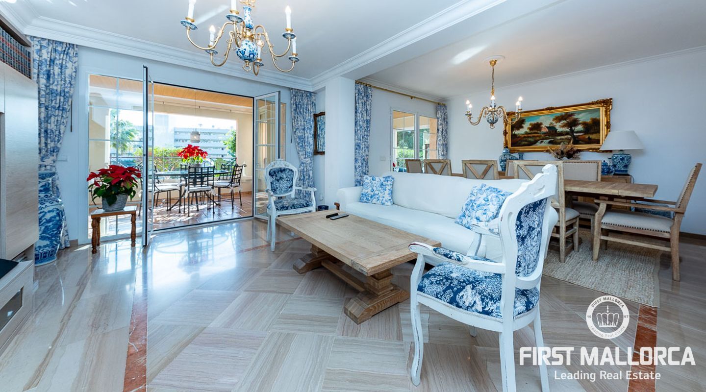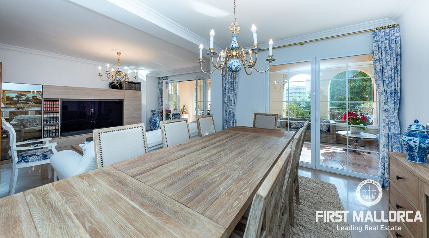 Una atractiva planta baja situado en una pequeña comunidad con jardín comunitaria bien cuidada en una ubicación privilegiada a sólo unos minutos a pie del elegante puerto deportivo de Puerto Portals. Hay 3 amplios dormitorios y 3 baños de los cuales 2 son en suite. El salón se abre a la gran terraza cubierta y al lado está la cocina totalmente equipada. La pequeña comunidad de sólo 7 propietarios cuenta con una piscina comunitaria y un bonito jardín. El apartamento se ofrece con dos plazas de aparcamiento exterior y un trastero. Puerto Portals es uno de los puertos deportivos más exclusivos de todo el Mediterráneo y ofrece hoy en día una amplia selección de restaurantes de alto nivel, cafeterías y boutiques de lujo. En las inmediaciones también hay dos hermosas playas de arena que se encuentran a menos de 10 minutos a pie del apartamento. El colegio privado internacional Ágora está a 5 minutos, así como el encantador pueblo de Portals Nous.