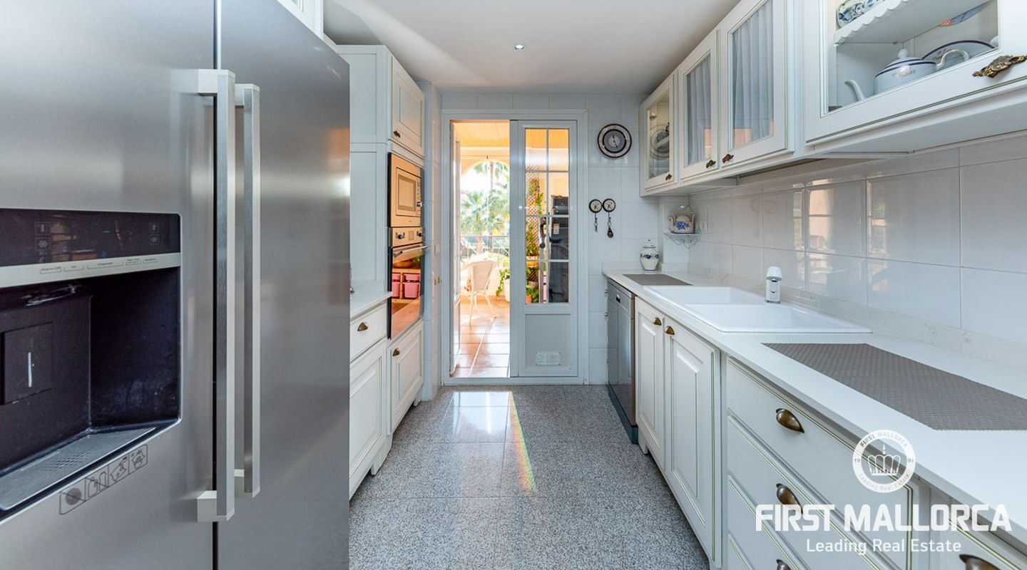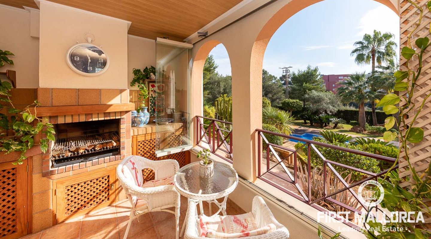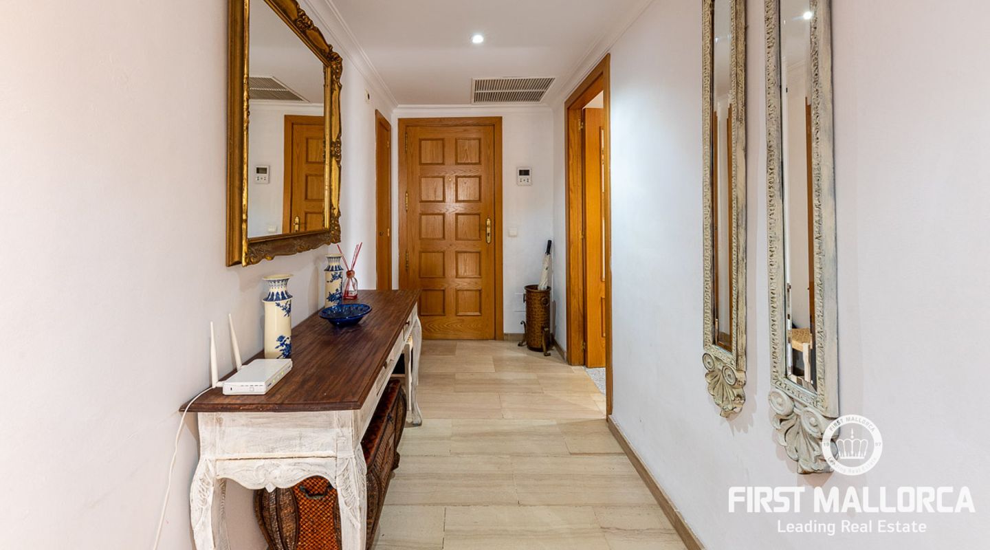 Una atractiva planta baja situado en una pequeña comunidad con jardín comunitaria bien cuidada en una ubicación privilegiada a sólo unos minutos a pie del elegante puerto deportivo de Puerto Portals. Hay 3 amplios dormitorios y 3 baños de los cuales 2 son en suite. El salón se abre a la gran terraza cubierta y al lado está la cocina totalmente equipada. La pequeña comunidad de sólo 7 propietarios cuenta con una piscina comunitaria y un bonito jardín. El apartamento se ofrece con dos plazas de aparcamiento exterior y un trastero. Puerto Portals es uno de los puertos deportivos más exclusivos de todo el Mediterráneo y ofrece hoy en día una amplia selección de restaurantes de alto nivel, cafeterías y boutiques de lujo. En las inmediaciones también hay dos hermosas playas de arena que se encuentran a menos de 10 minutos a pie del apartamento. El colegio privado internacional Ágora está a 5 minutos, así como el encantador pueblo de Portals Nous.