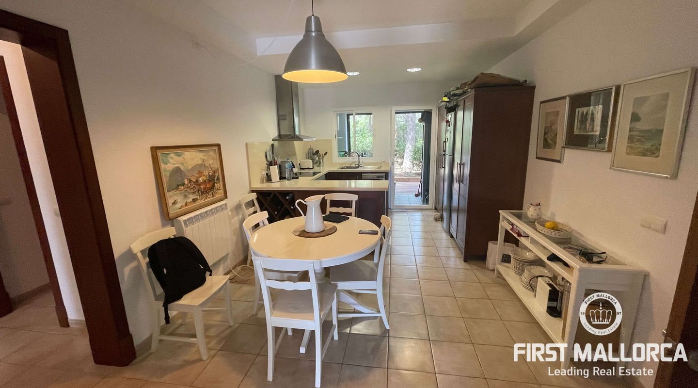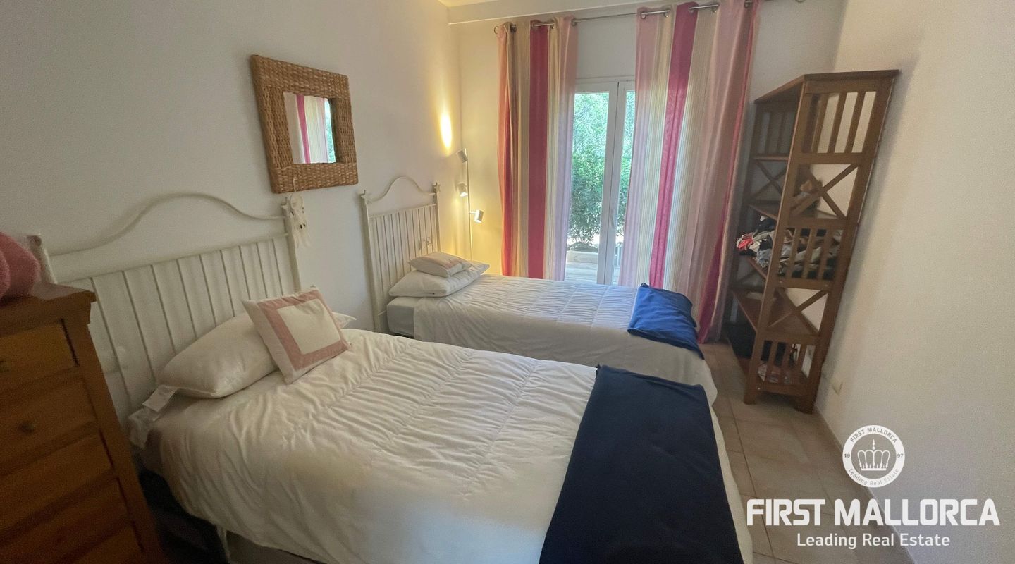 Este apartamento elegante y bien cuidado con jardín situado en el mágico Sant Elm ofrece todo lo que necesita. En una pequeña comunidad moderna y tranquila con piscina comunitaria a sólo 2 minutos a pie del mar. Con 2 dormitorios y 2 baños, 1 en suite, cocina abierta y comedor dispone de abundante espacio de terraza y jardín privado que rodea el apartamento con zonas de sol y sombra para comer y relajarse. Garaje subterráneo y amplio trastero. Radiadores eléctricos en toda la vivienda. Preinstalación de aire acondicionado si se requiere, pero no es necesario en este apartamento bien construido y aislado. Lavadero.